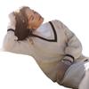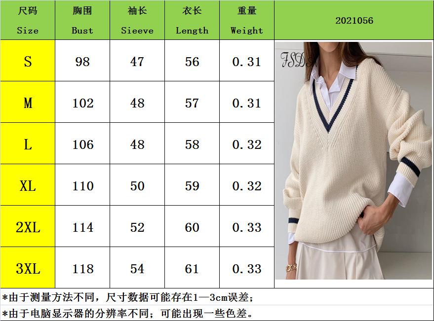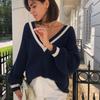 Suéter de punto de manga larga con cuello en V holgado y costuras informales en contraste de color para otoño e invierno de Amazon 2023