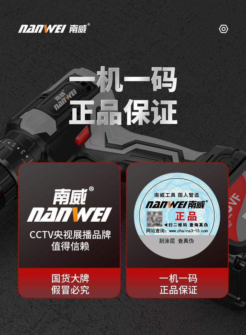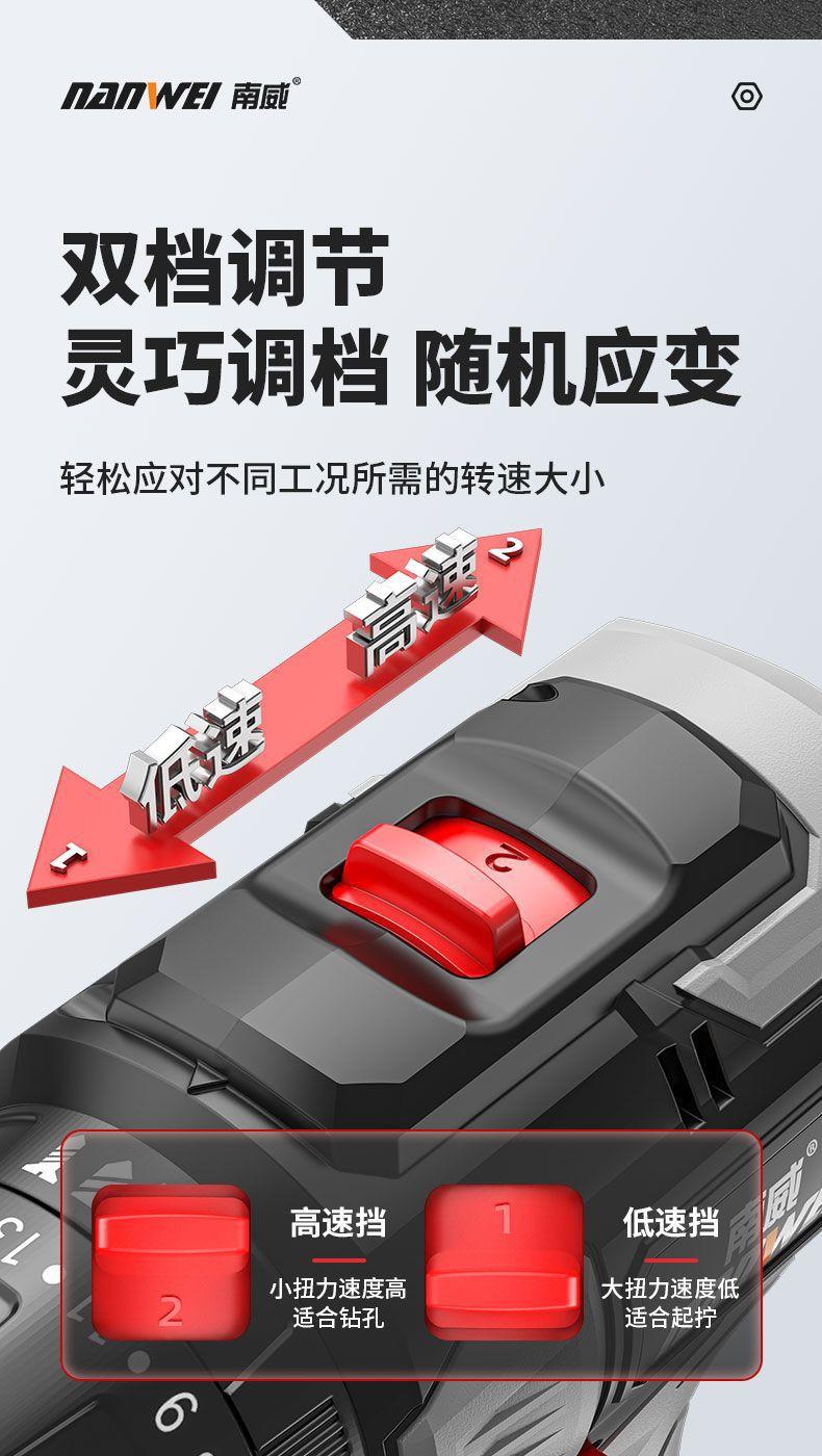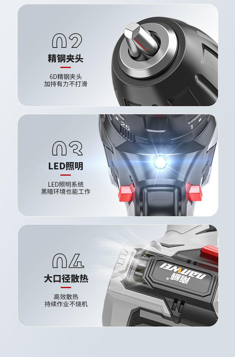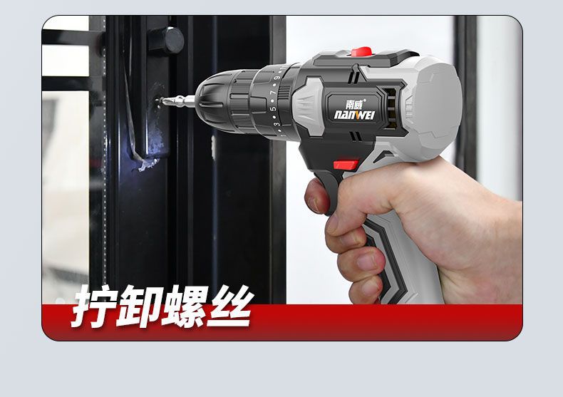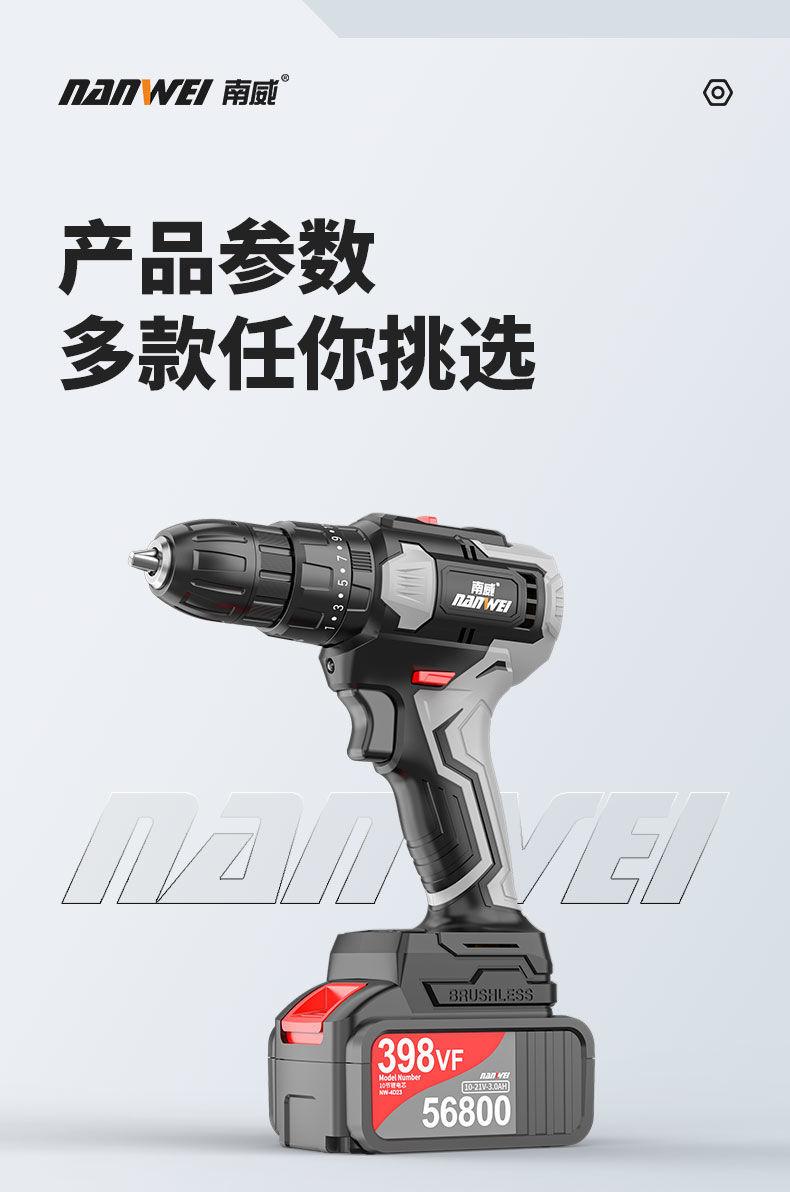 Taladro eléctrico de litio sin escobillas Nanwei Taladro eléctrico de litio multifuncional Taladro recargable de alta potencia Taladro de pistola Destornillador eléctrico Taladro de impacto
