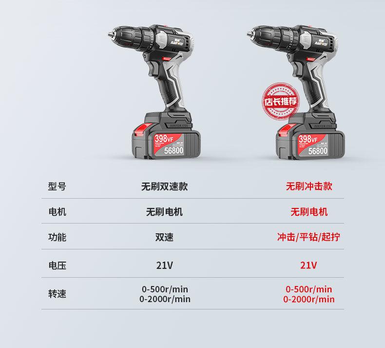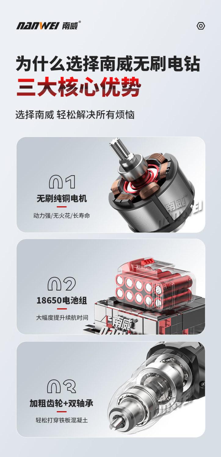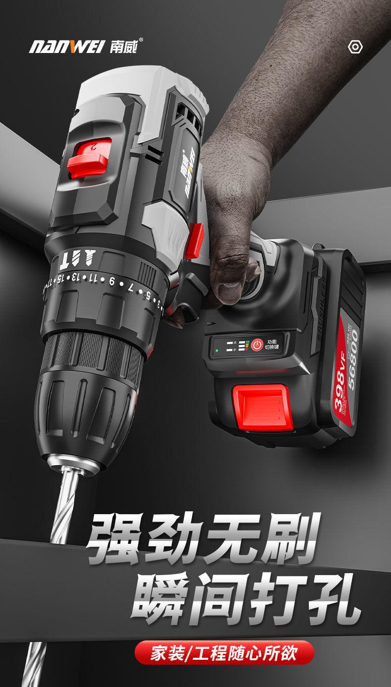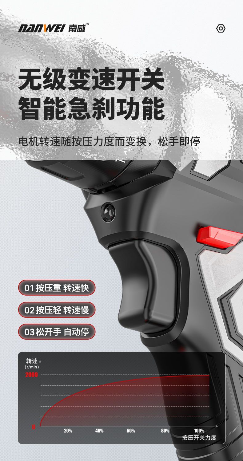 Taladro eléctrico de litio sin escobillas Nanwei Taladro eléctrico de litio multifuncional Taladro recargable de alta potencia Taladro de pistola Destornillador eléctrico Taladro de impacto