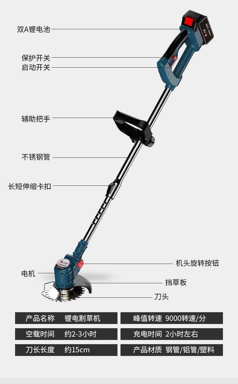Cortadora de césped eléctrica Maiyue con batería de litio, pequeña, multifuncional, para uso doméstico y agrícola.