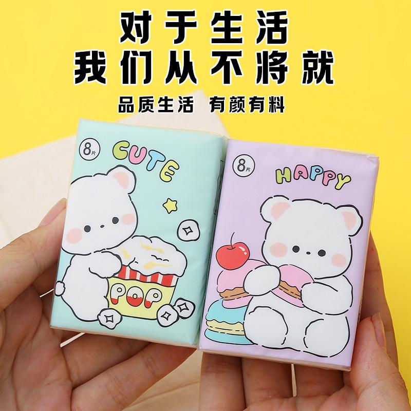 Pañuelo de papel Sen Kiss con diseño de oso codicioso, bolsa pequeña, pañuelo portátil, toalla de papel, papel de bolsillo, pañuelo facial