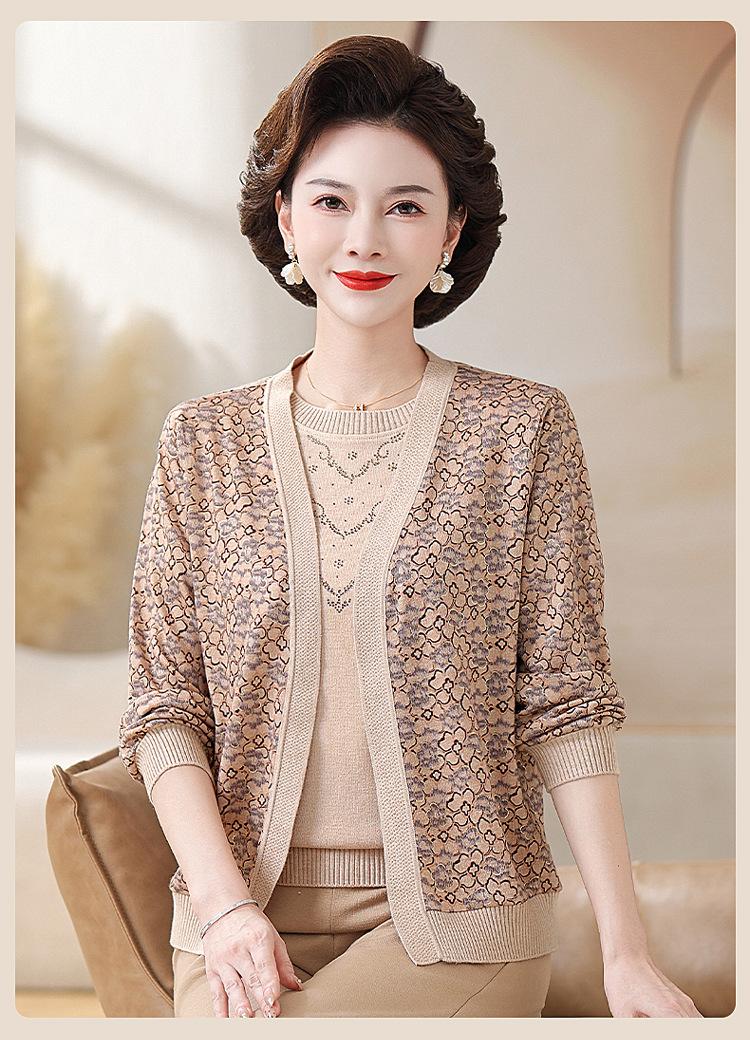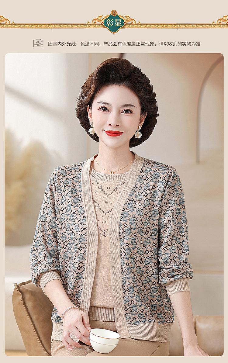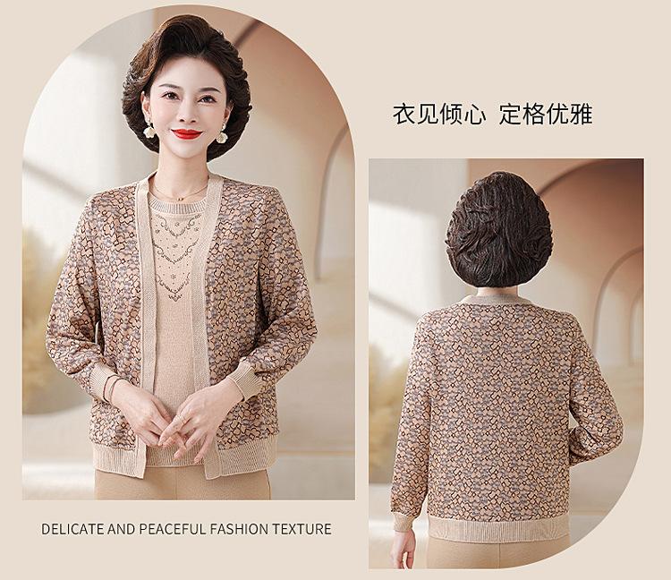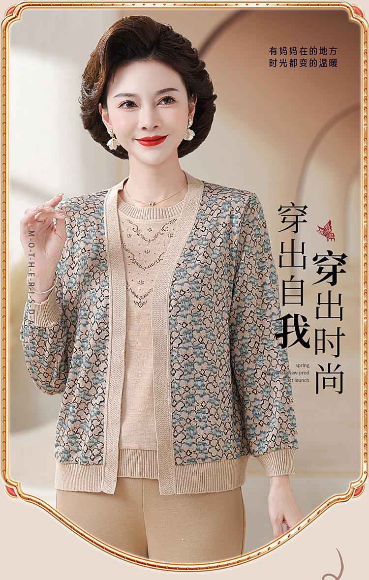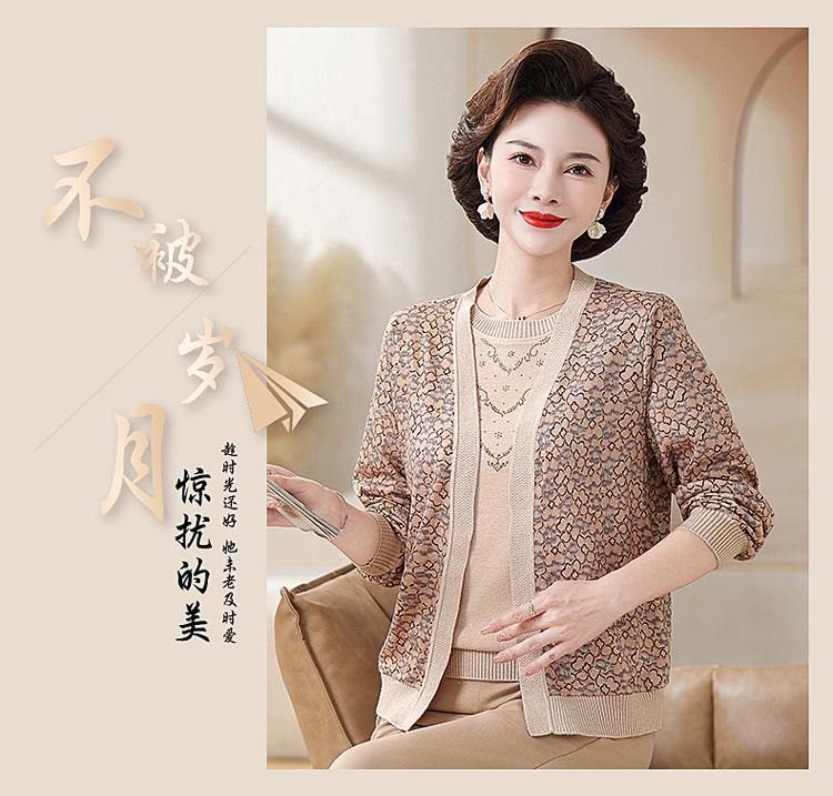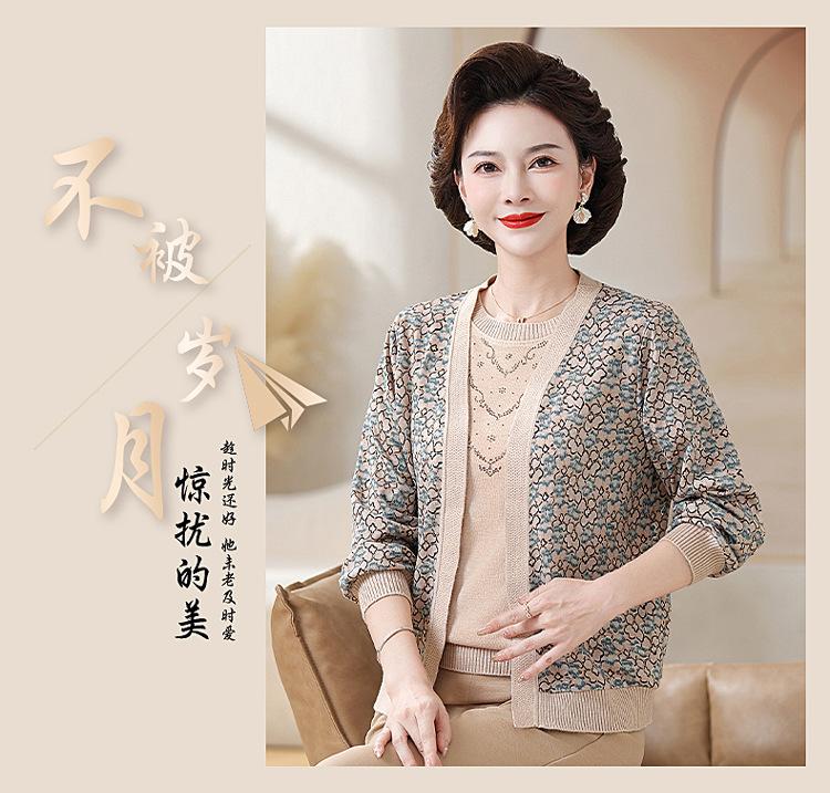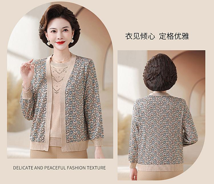 2025 Nueva Mamá Principios de Otoño Estilo Occidental Tops de Dos Piezas para Mujeres de Mediana Edad y Mayores Moda de Primavera y Otoño Tops Cárdigan Delgados