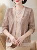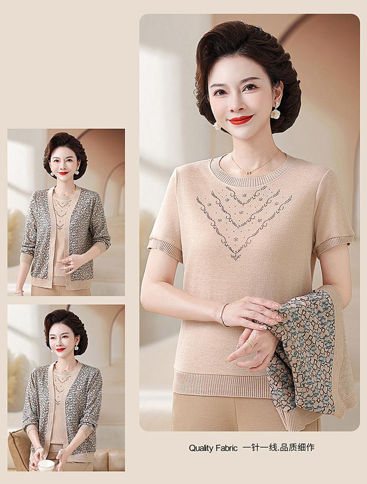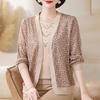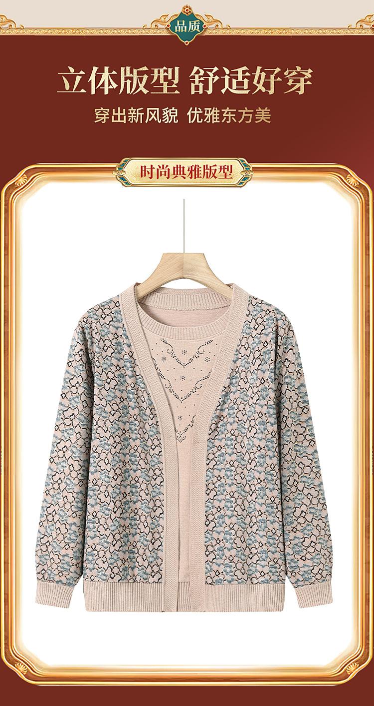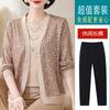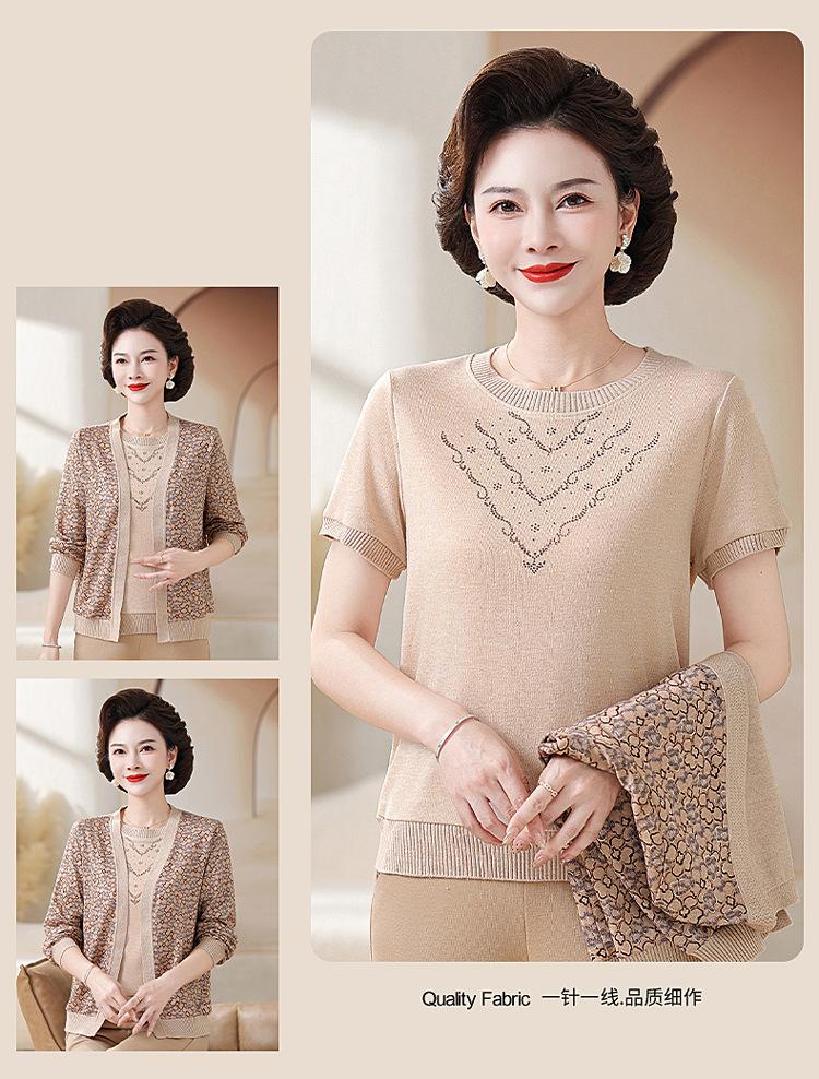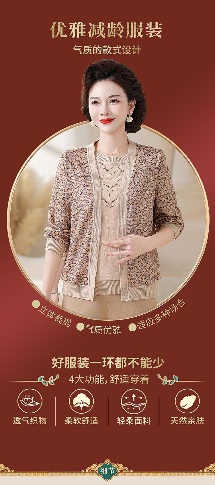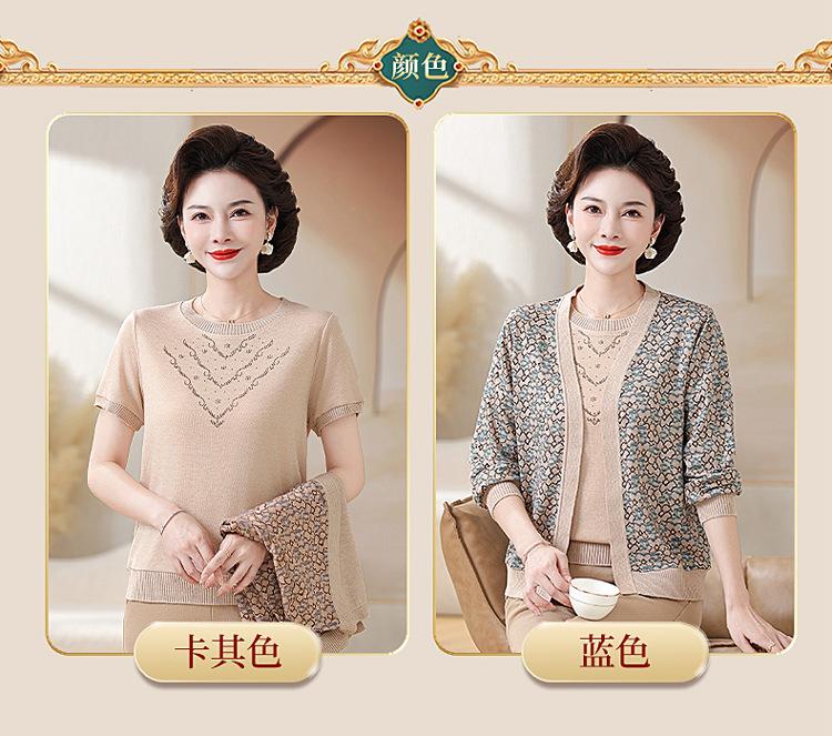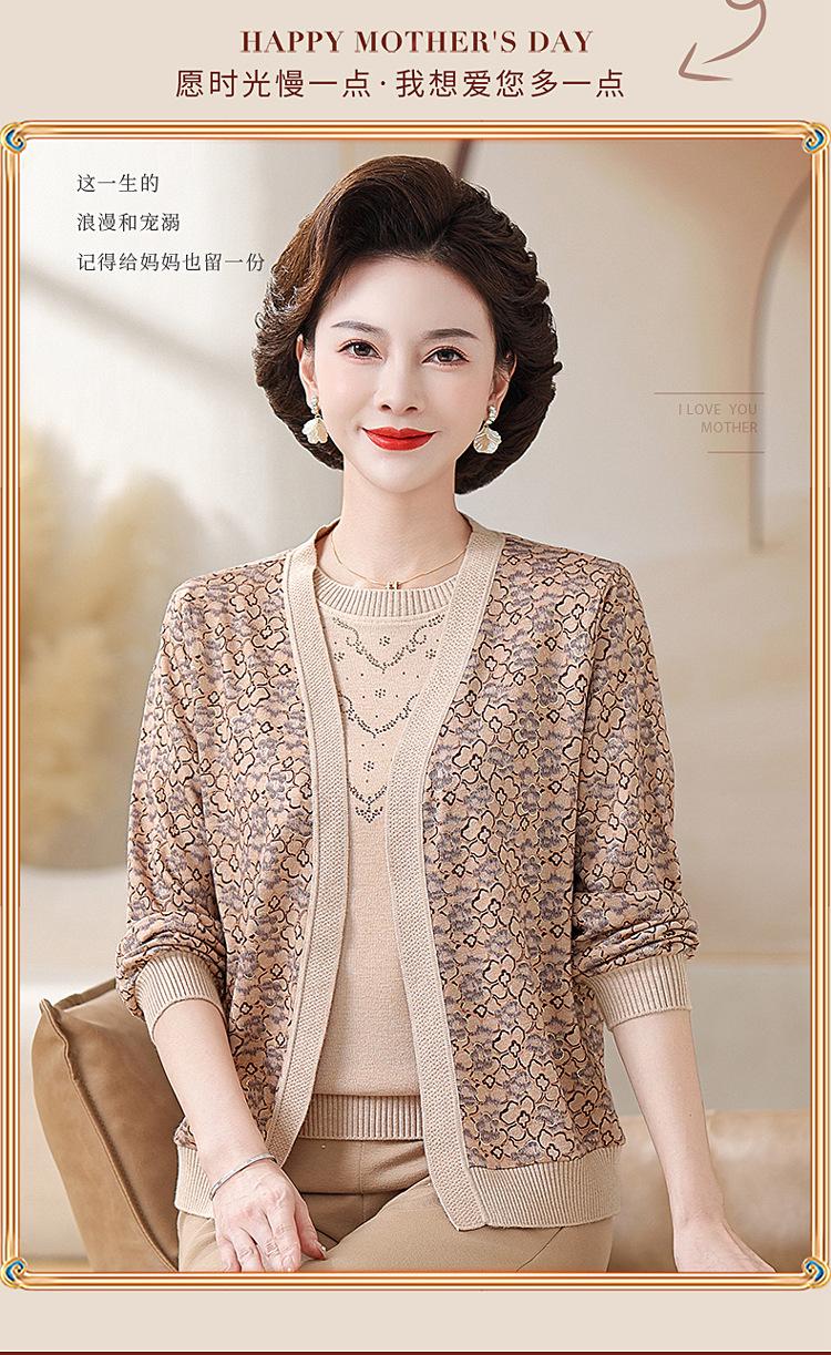 2025 Nueva Mamá Principios de Otoño Estilo Occidental Tops de Dos Piezas para Mujeres de Mediana Edad y Mayores Moda de Primavera y Otoño Tops Cárdigan Delgados