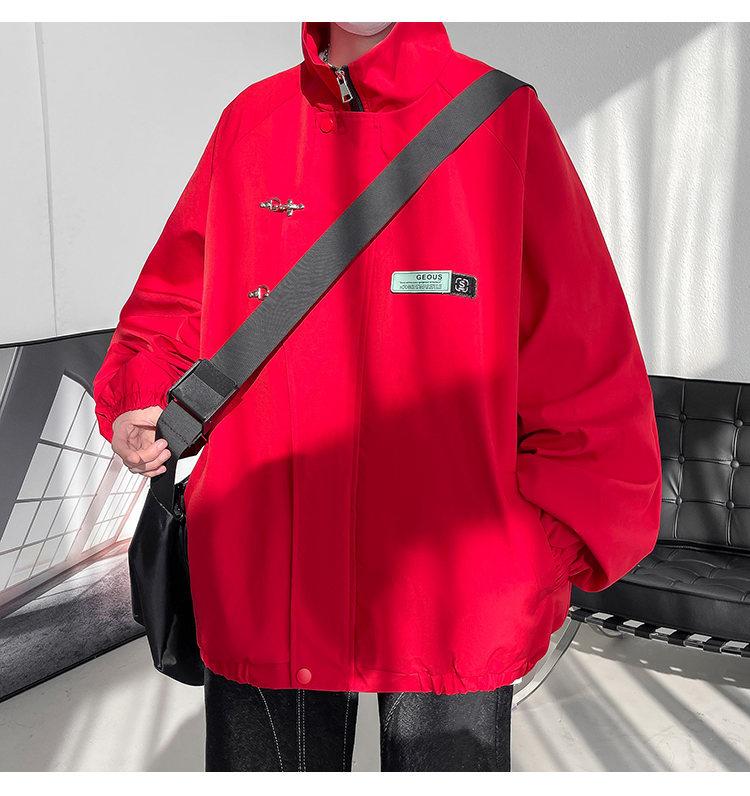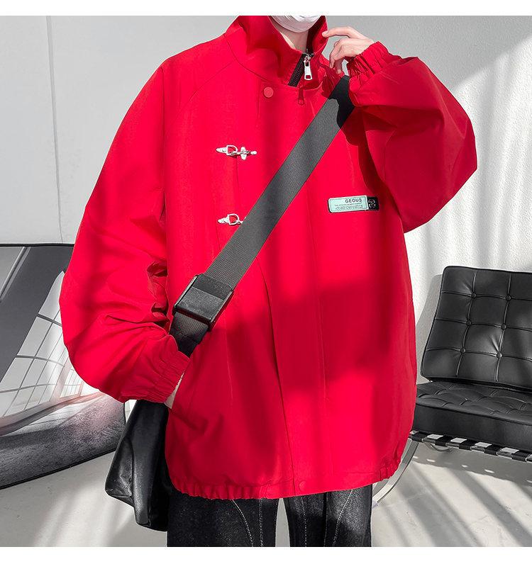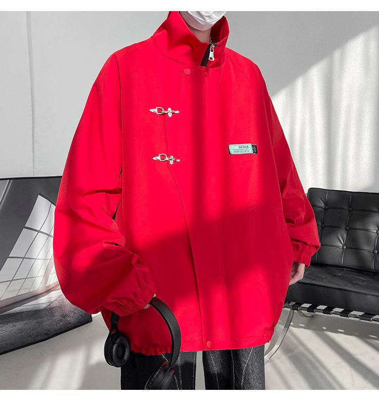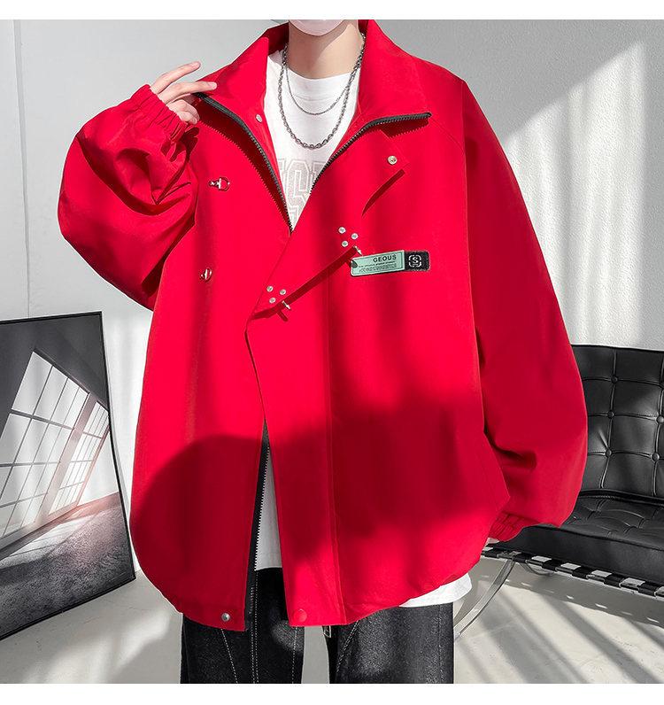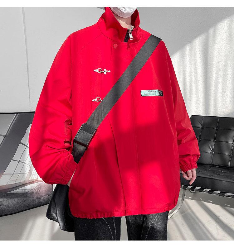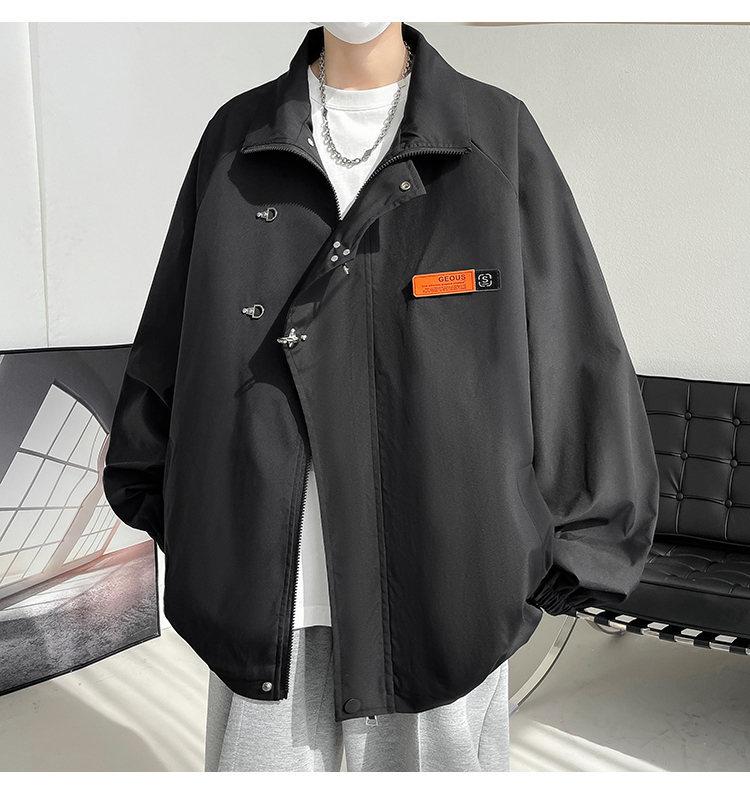 Chaqueta impermeable con hebilla de metal para hombre, diseño nuevo, disponible en primavera, talla grande, holgada.