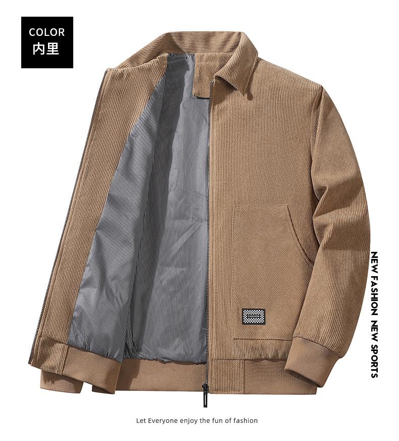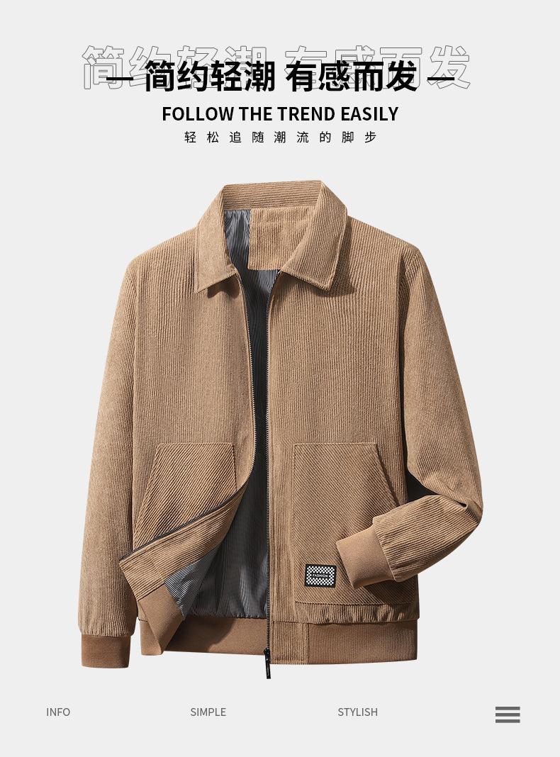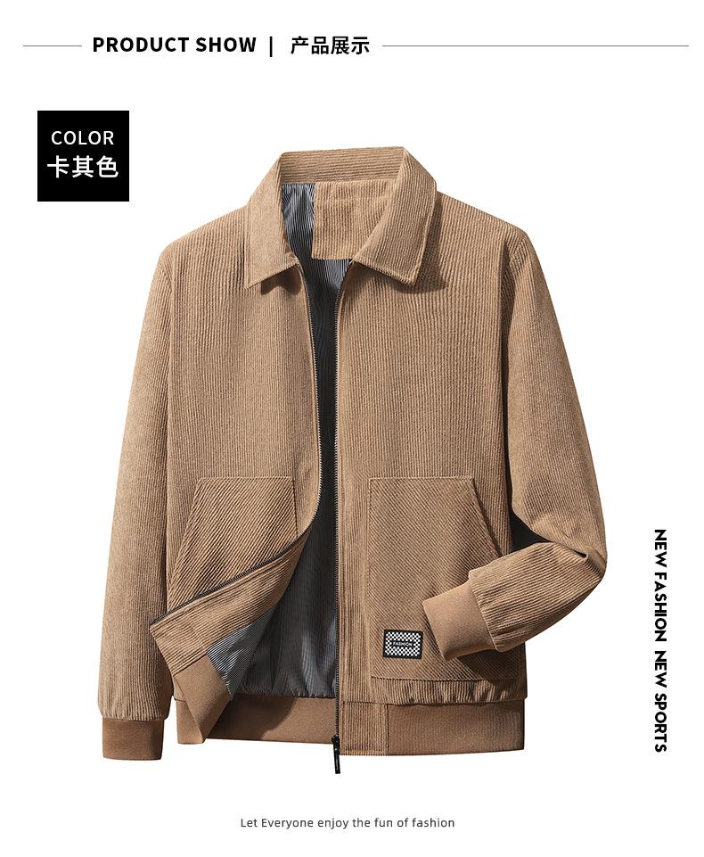 Otoño 2024 Nueva Chaqueta de Pana para Hombre Solapa Casual Abrigo para Papá Mediana Edad y Ancianos Hombres de Negocios Combinación Total