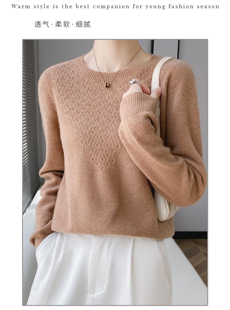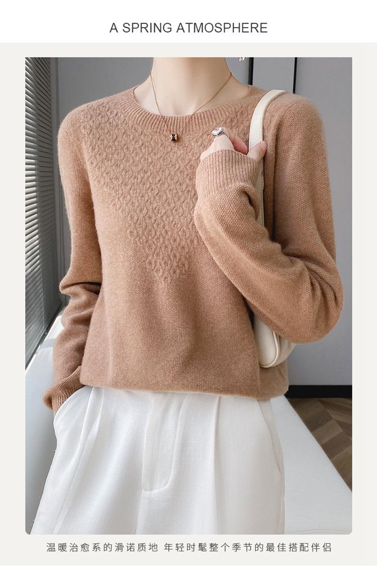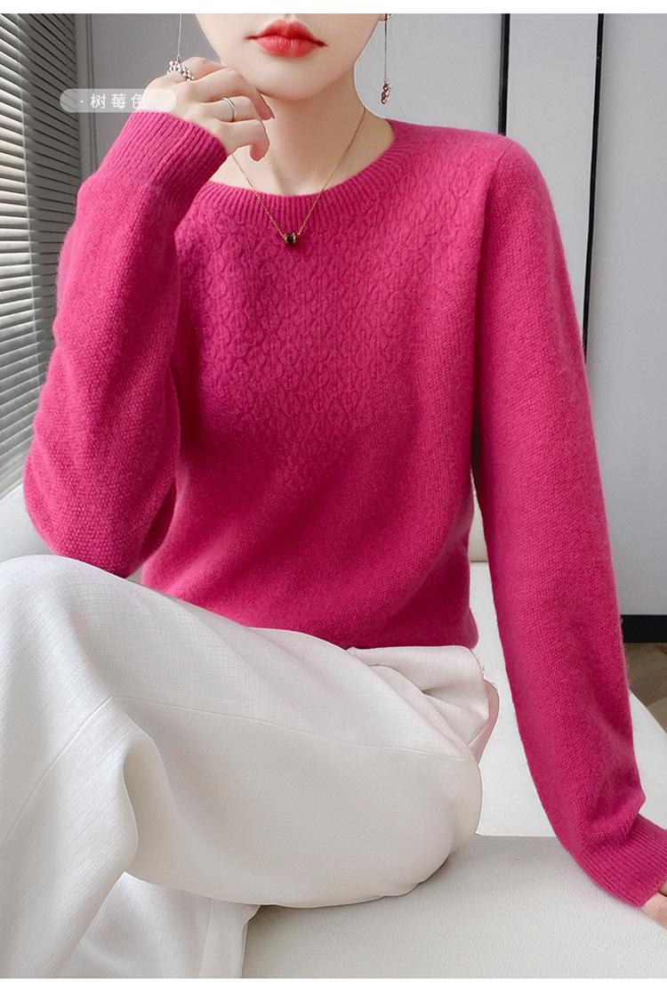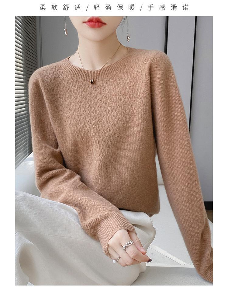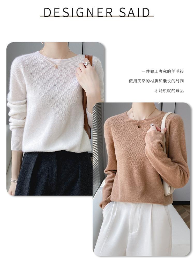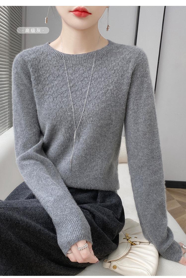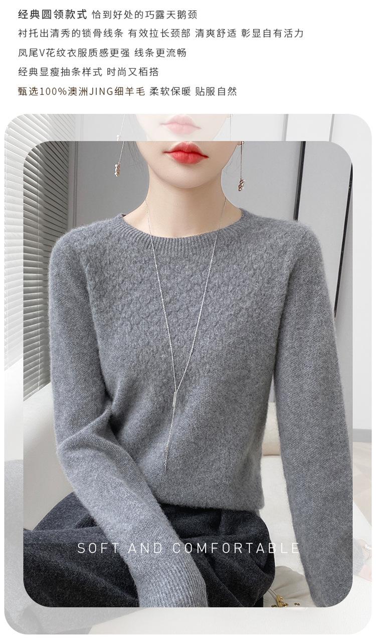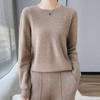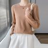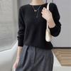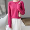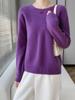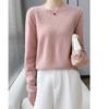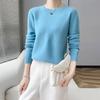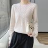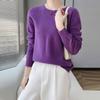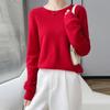 Ropa de primera línea cuello redondo suéter de lana pura para mujer otoño e invierno Nuevo estilo suave suéter de manga larga camisa de fondo de punto