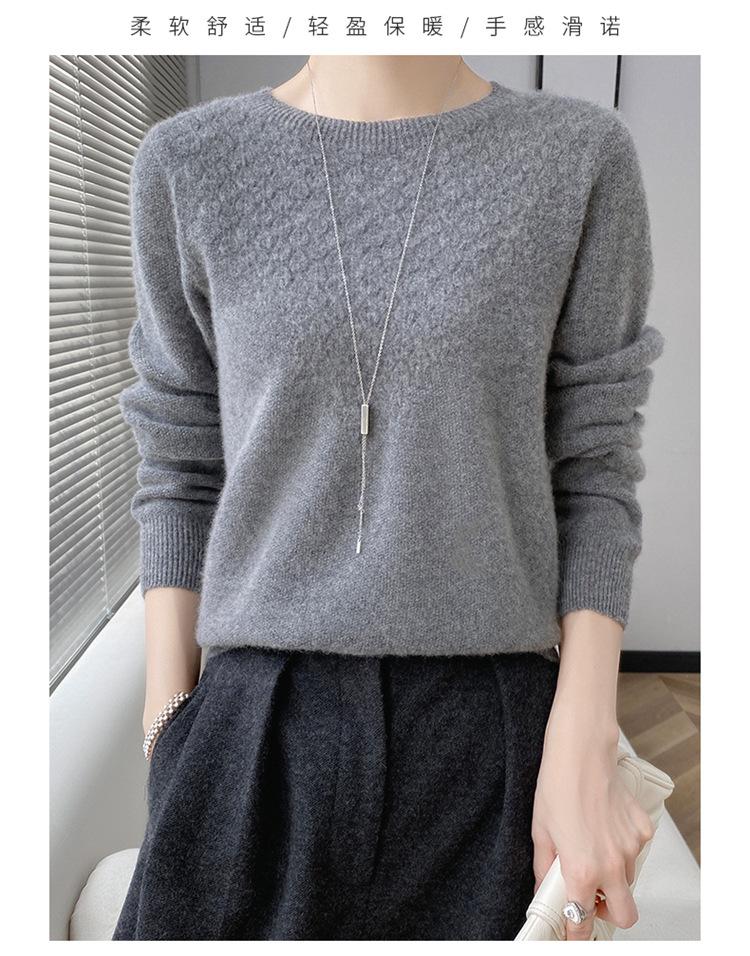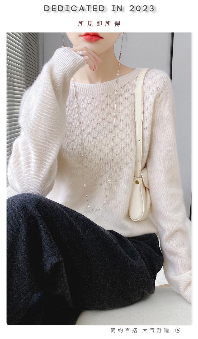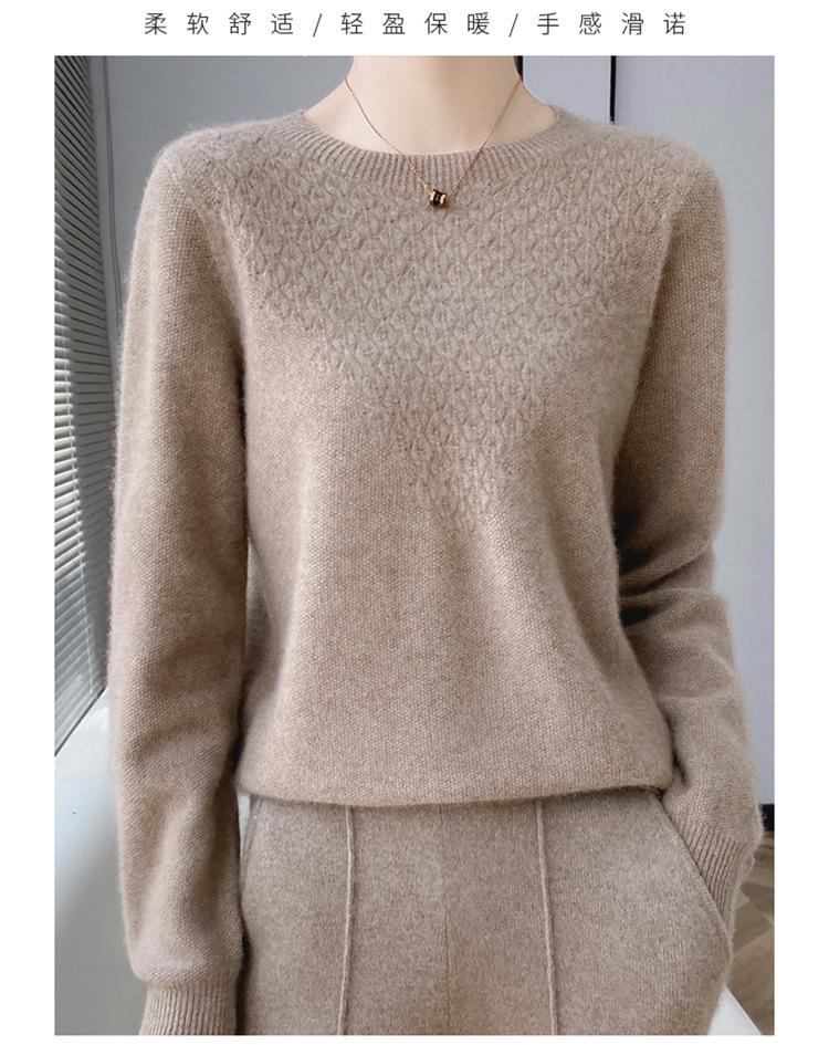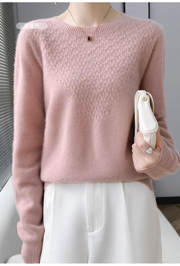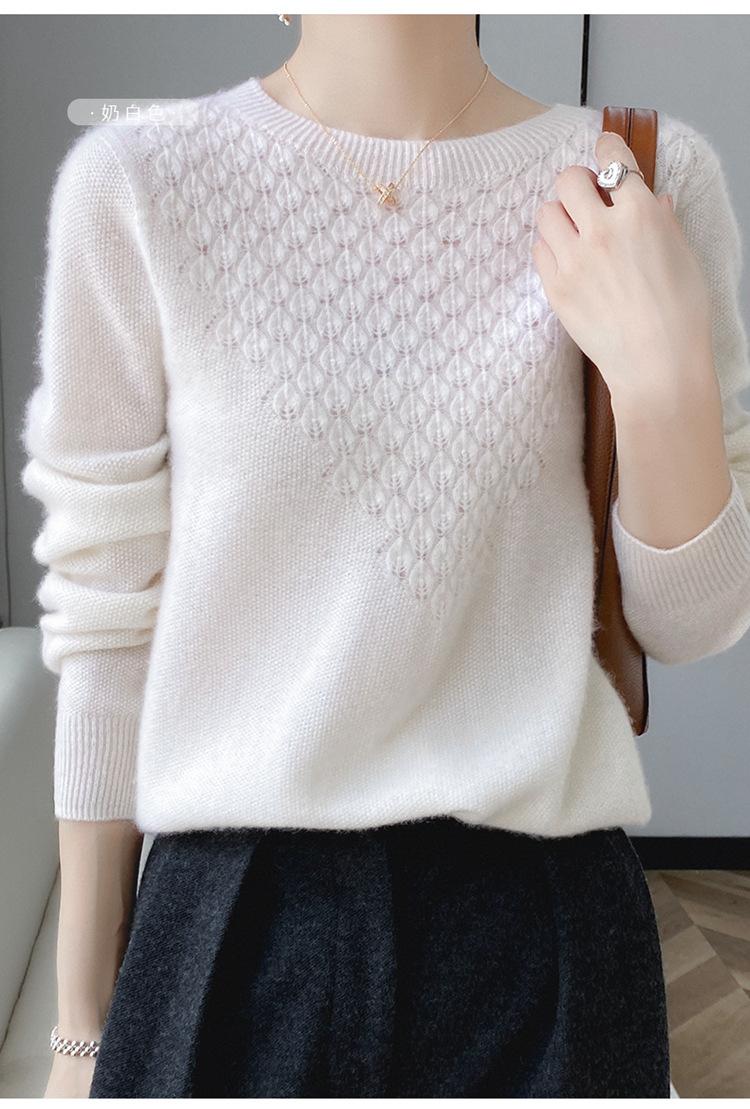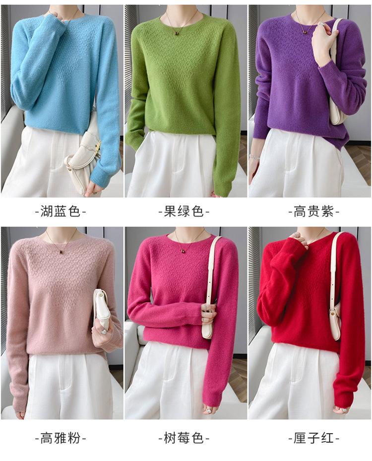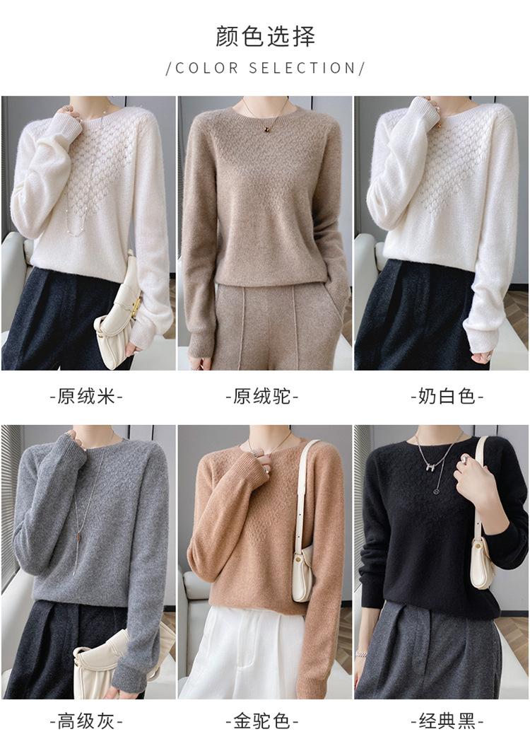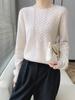 Ropa de primera línea cuello redondo suéter de lana pura para mujer otoño e invierno Nuevo estilo suave suéter de manga larga camisa de fondo de punto