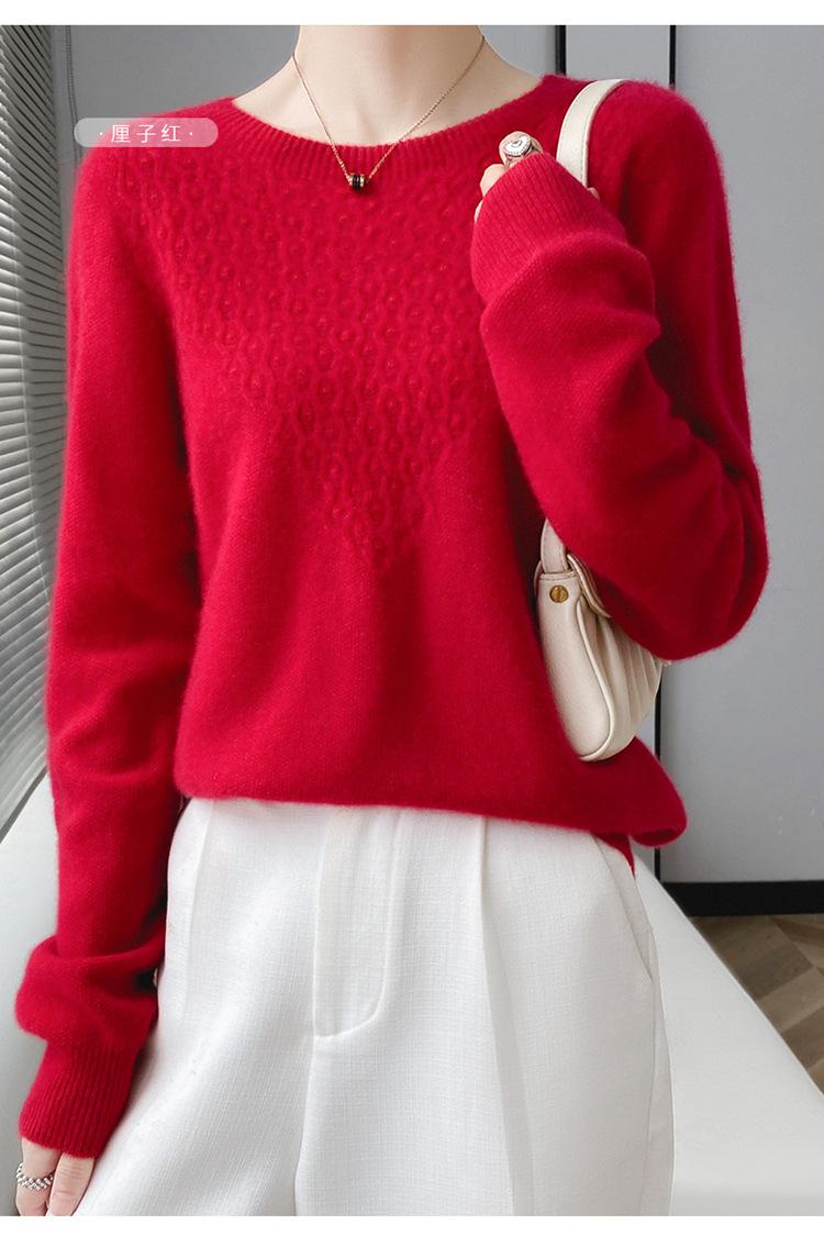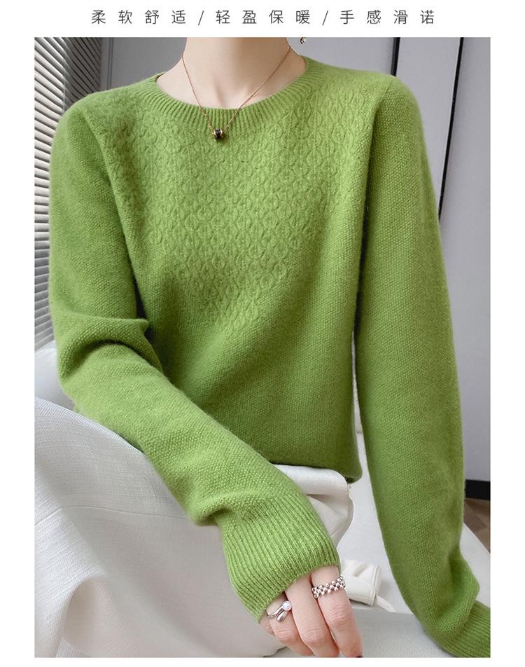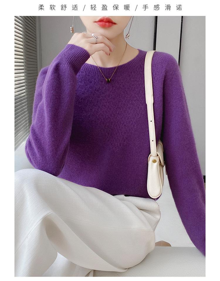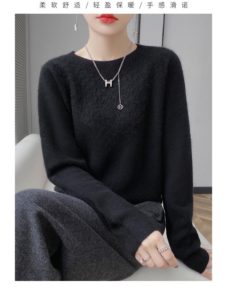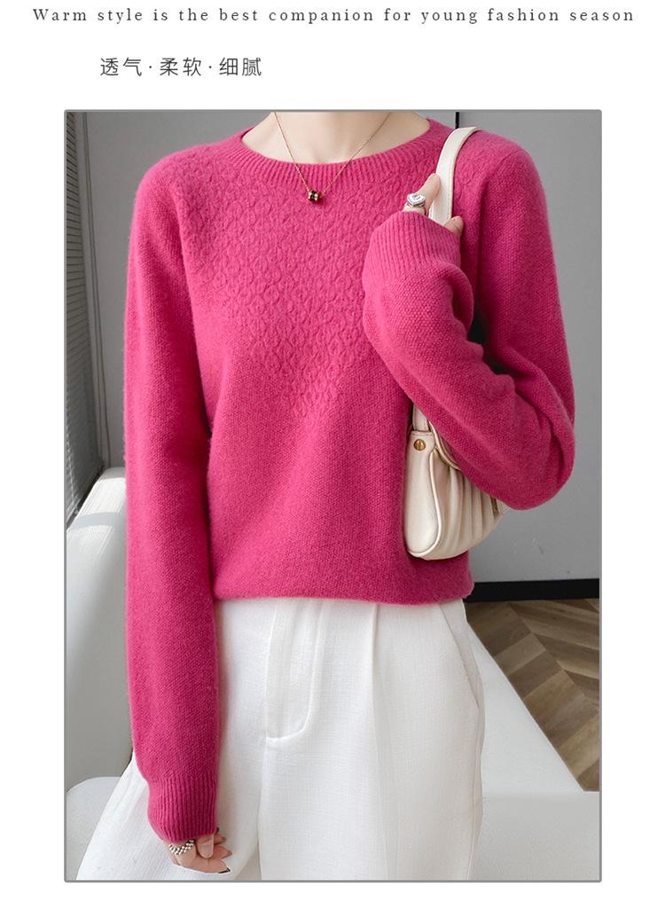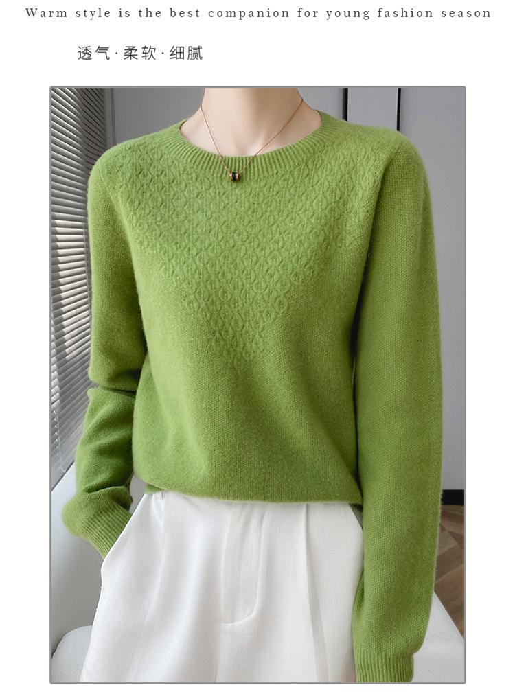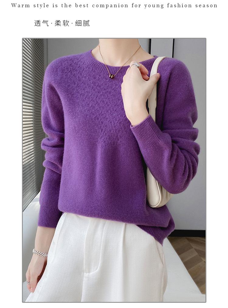 Ropa de primera línea cuello redondo suéter de lana pura para mujer otoño e invierno Nuevo estilo suave suéter de manga larga camisa de fondo de punto