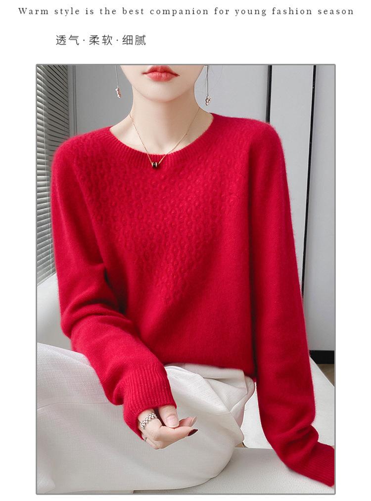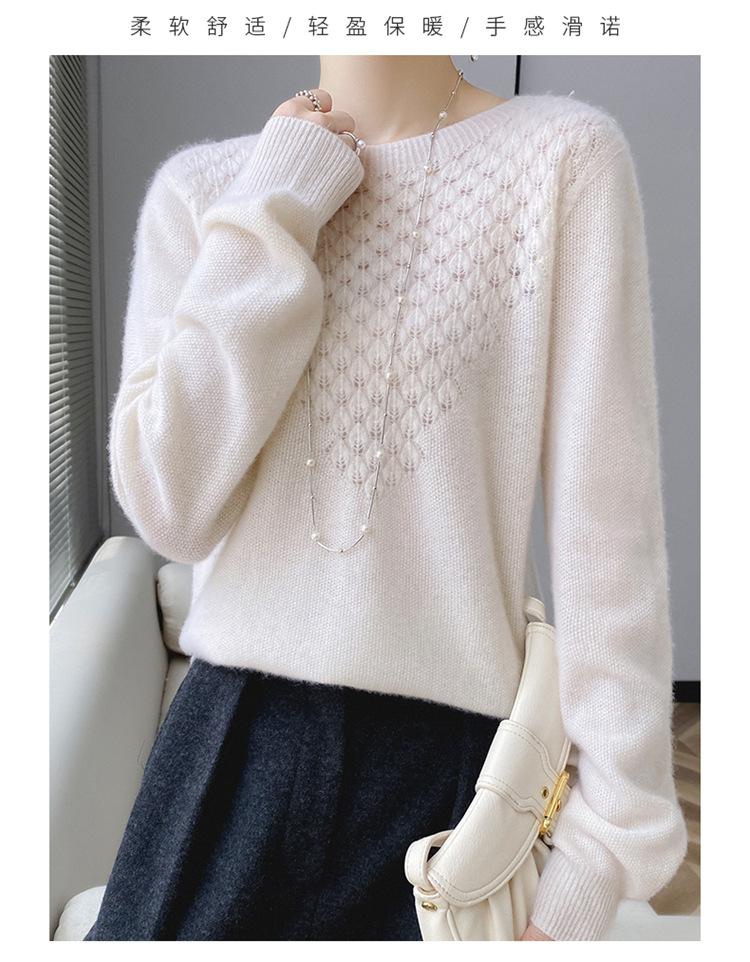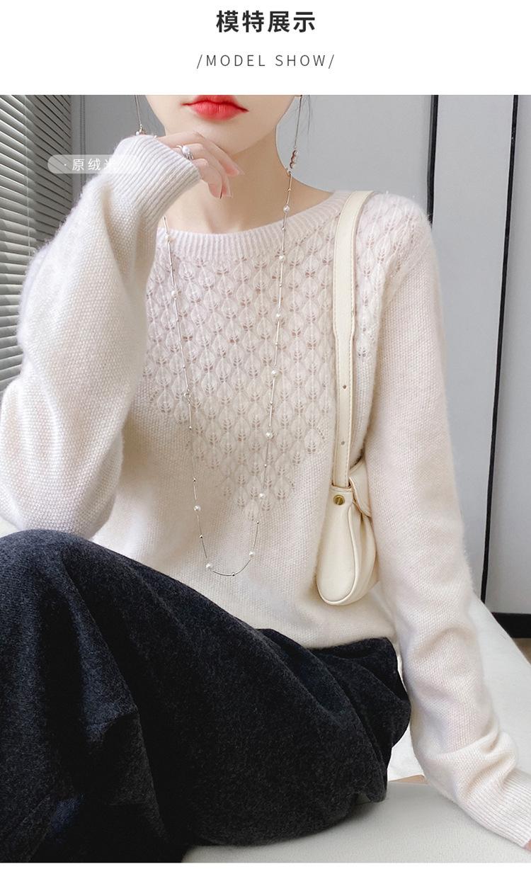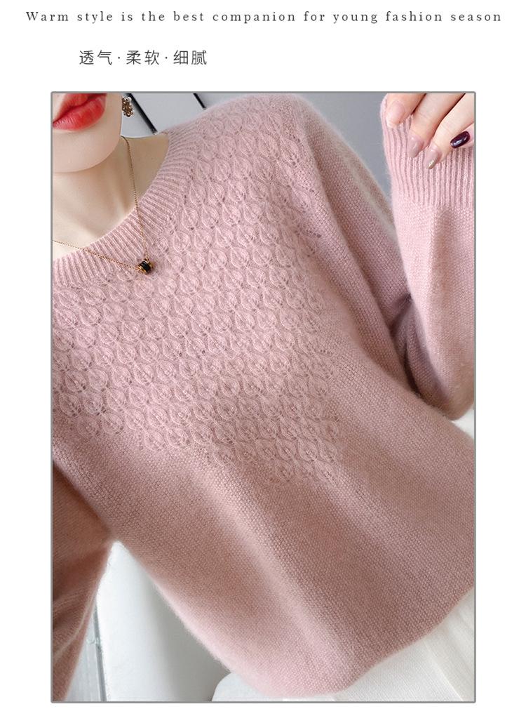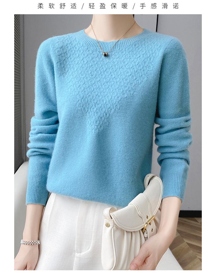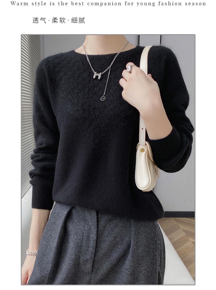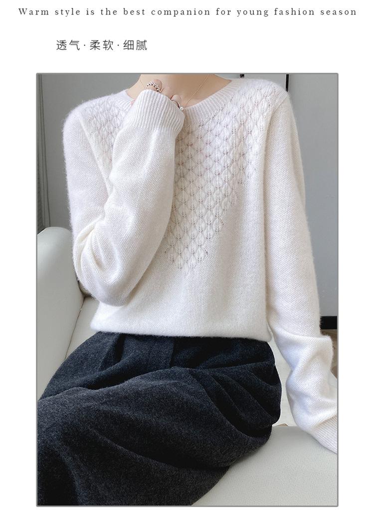 Ropa de primera línea cuello redondo suéter de lana pura para mujer otoño e invierno Nuevo estilo suave suéter de manga larga camisa de fondo de punto
