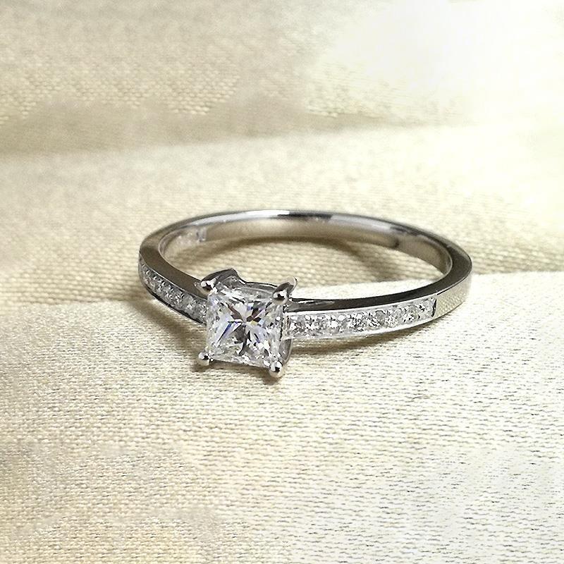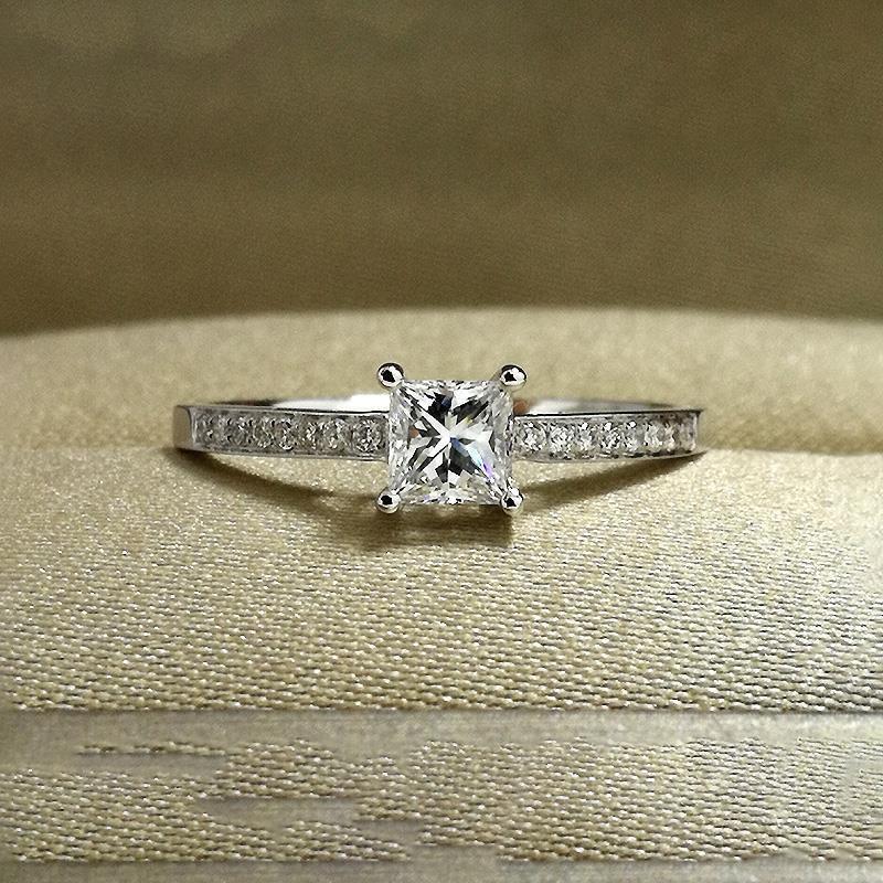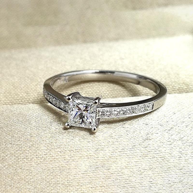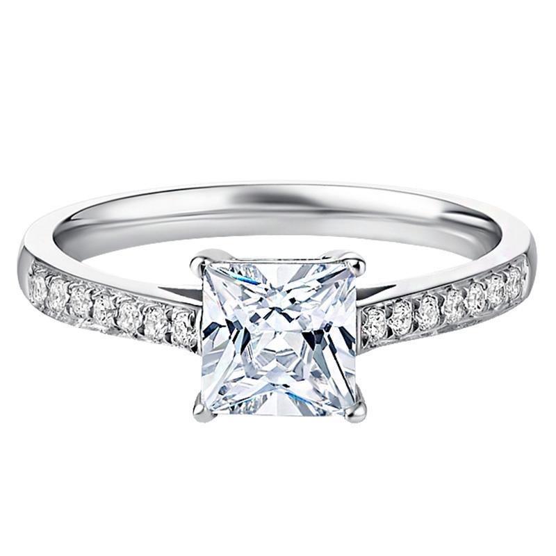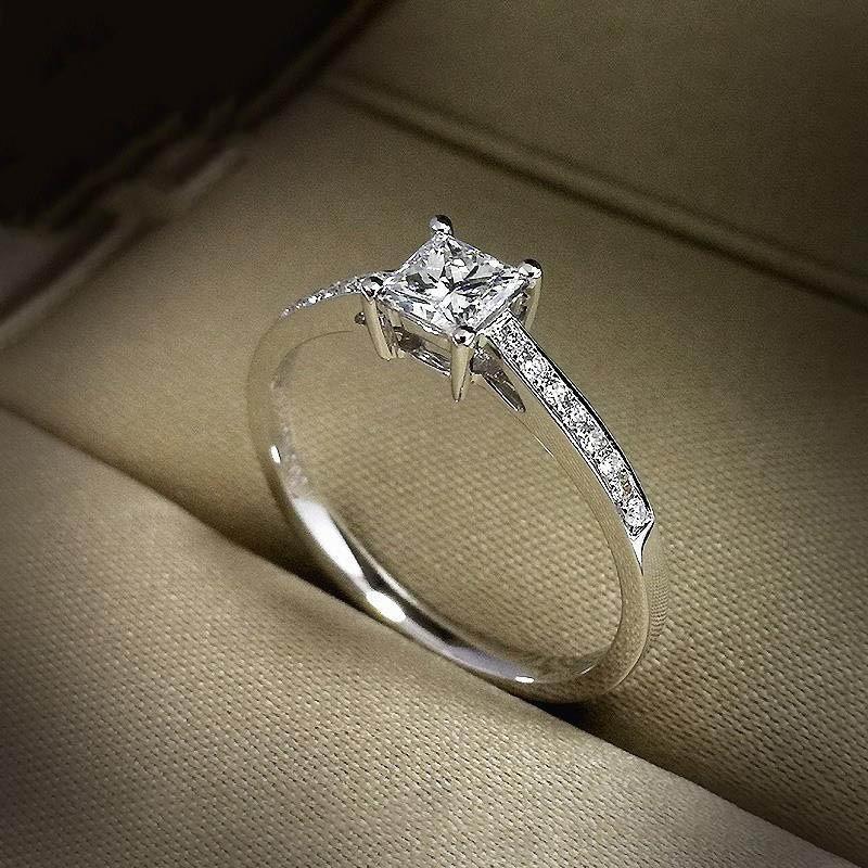 Anillo de Diamante Simulado de Corte Princesa de Cuatro Garras para Mujer Ebay Más Vendido Joyería de Mano Anillo de Diamante de Propuesta Europeo y Americano Anillo de Compromiso Personalizado