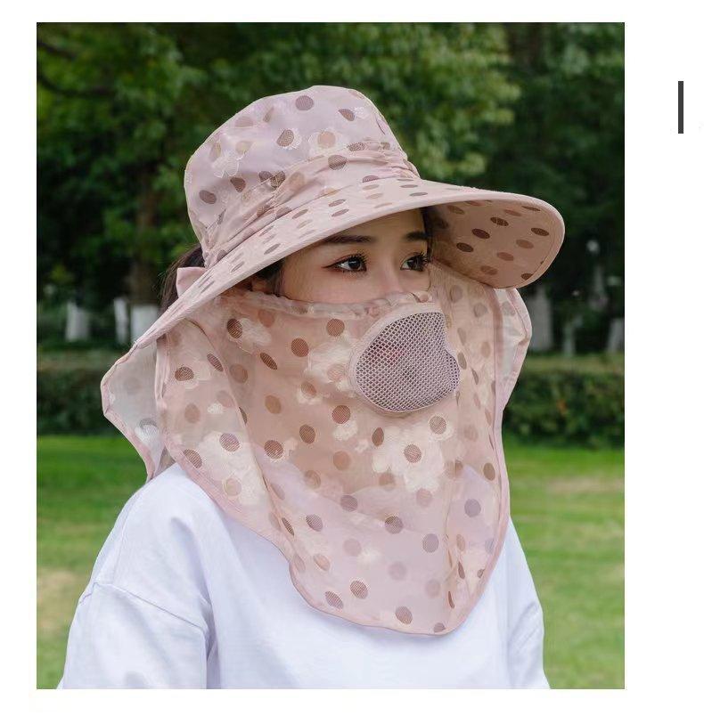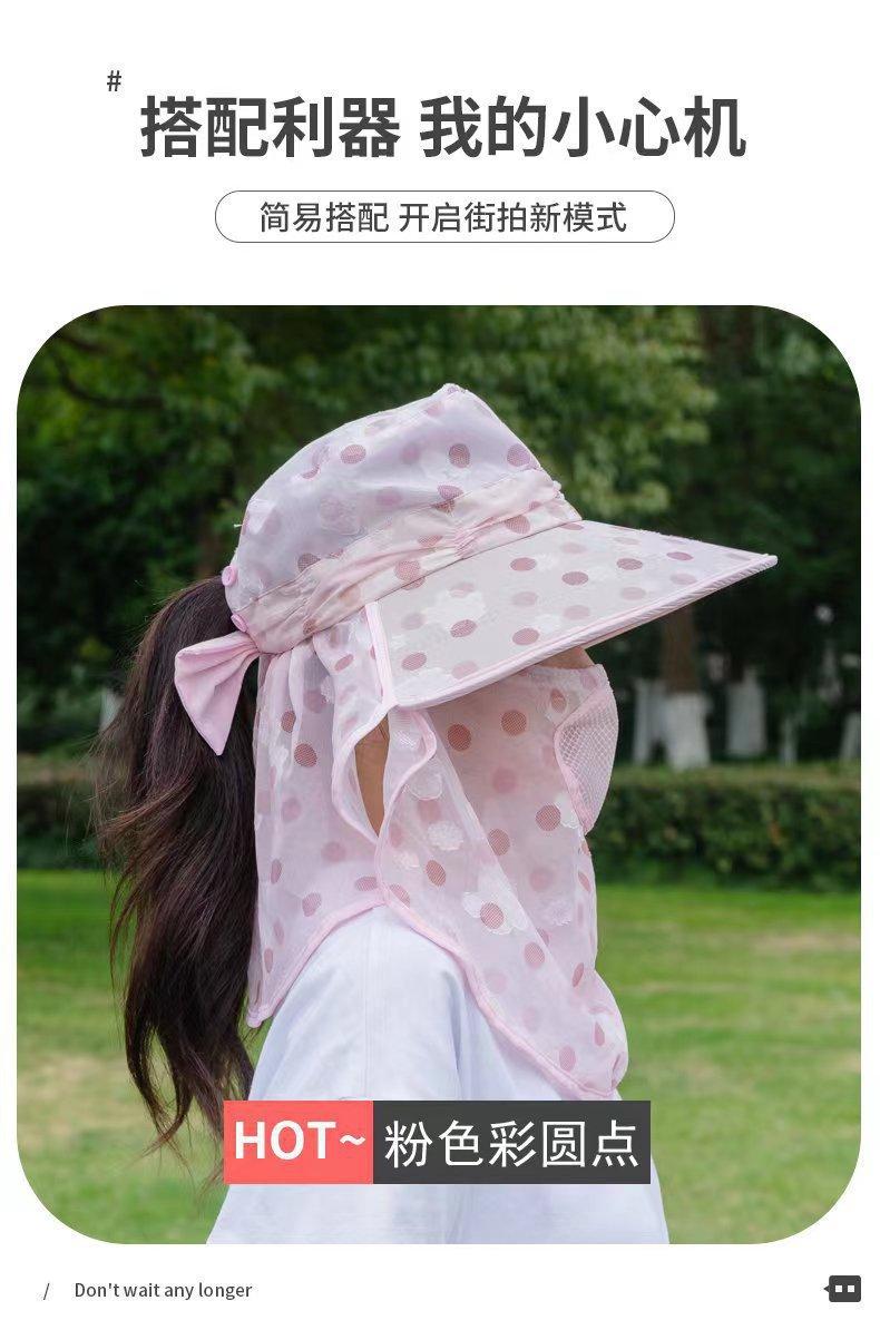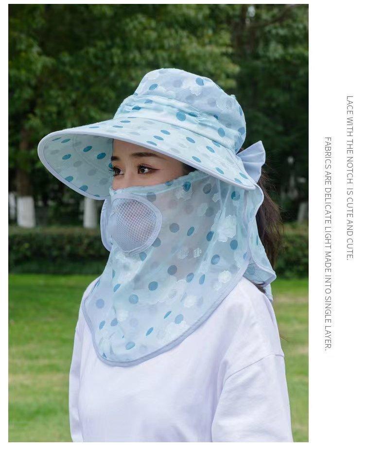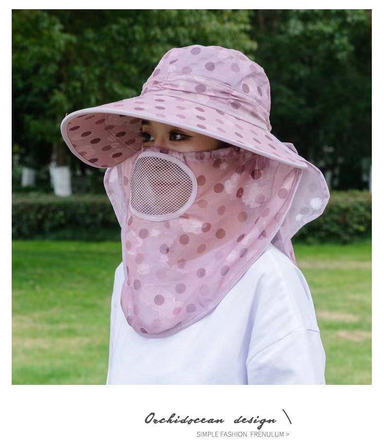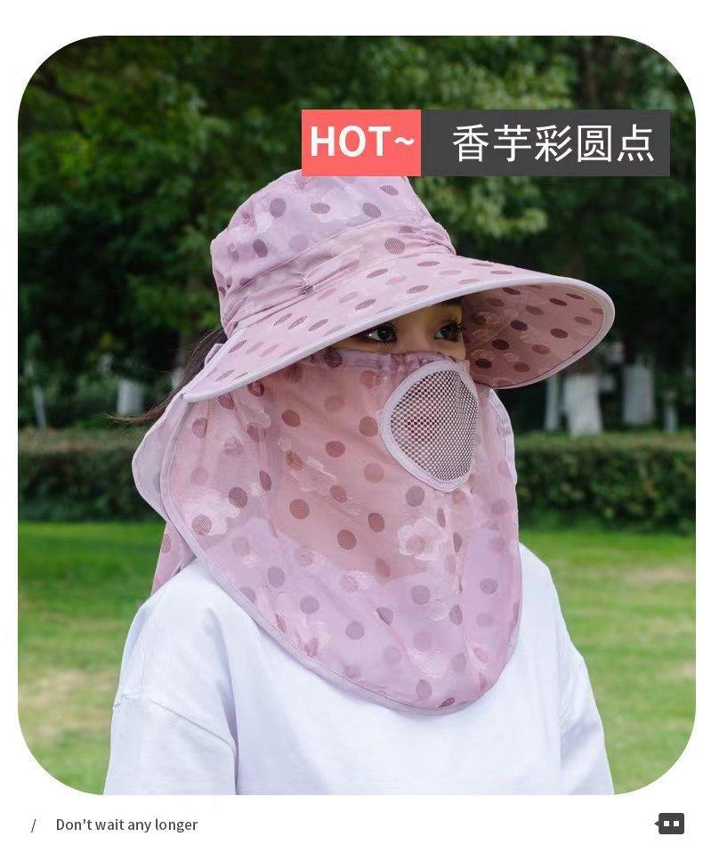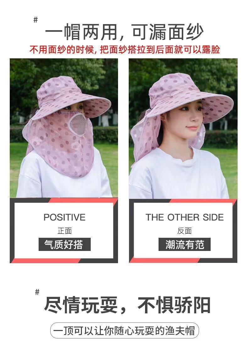 Verano nuevo sombrero de sol para damas ala grande máscara desmontable sombrero para el sol para salir a montar sombrero para el sol para la cara al por mayor
