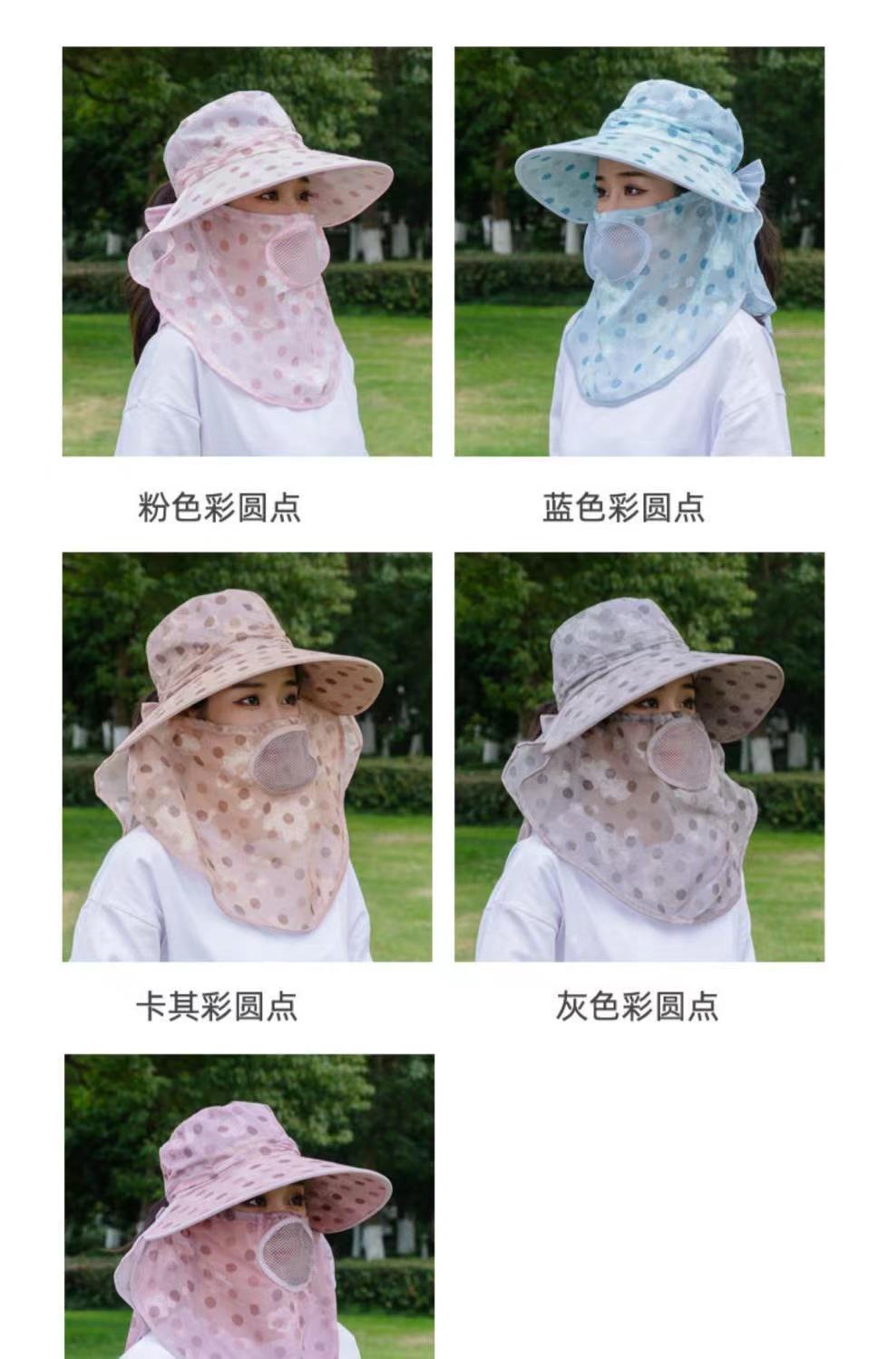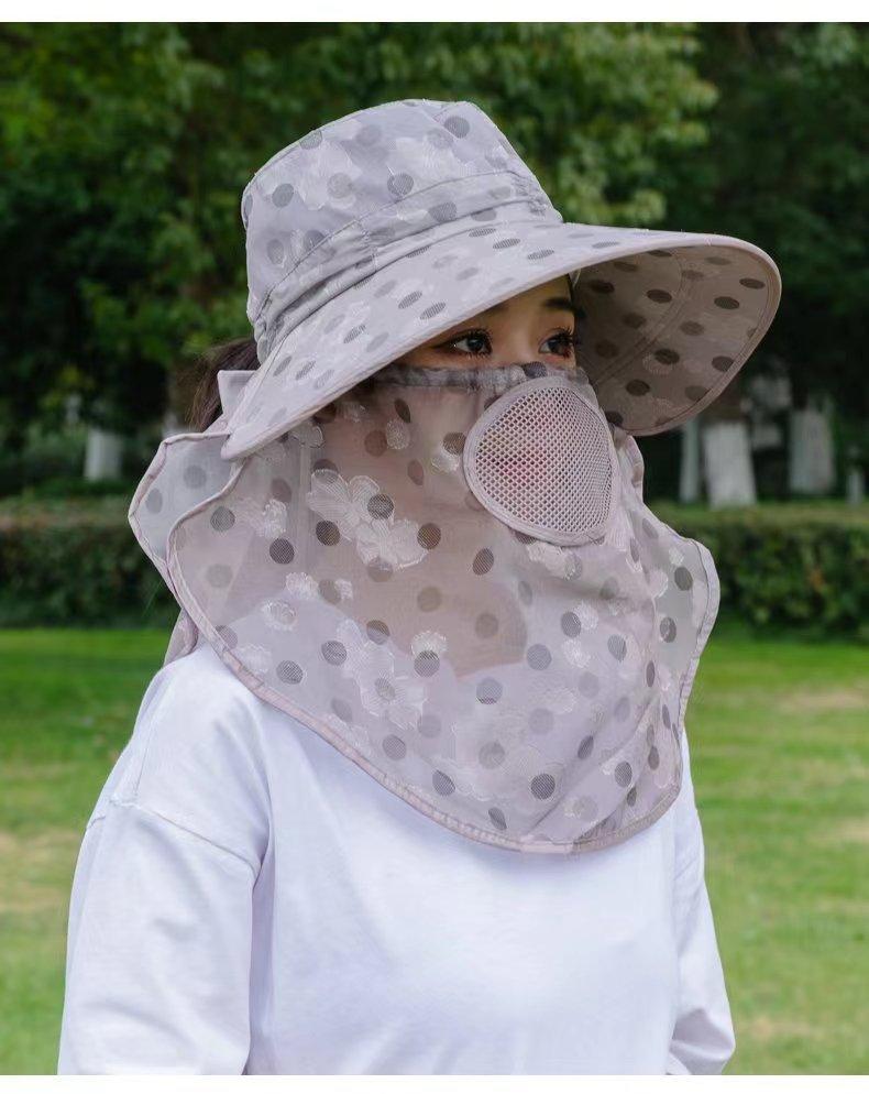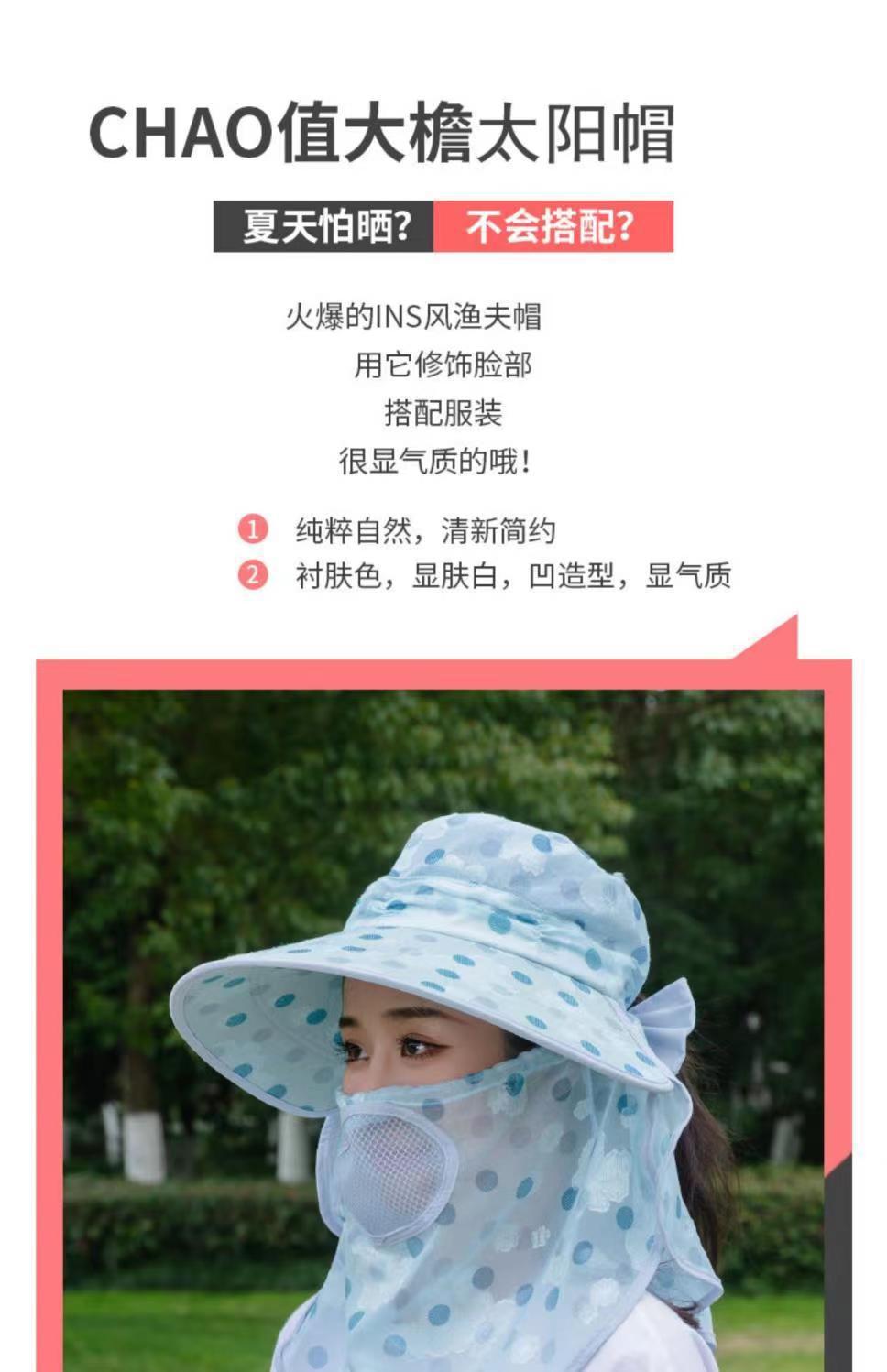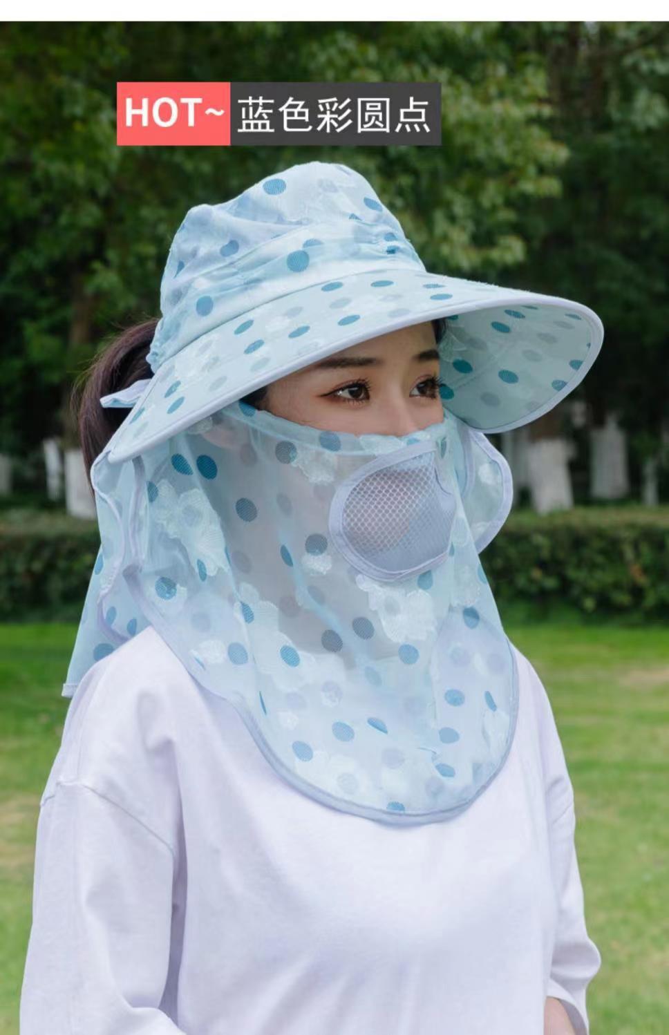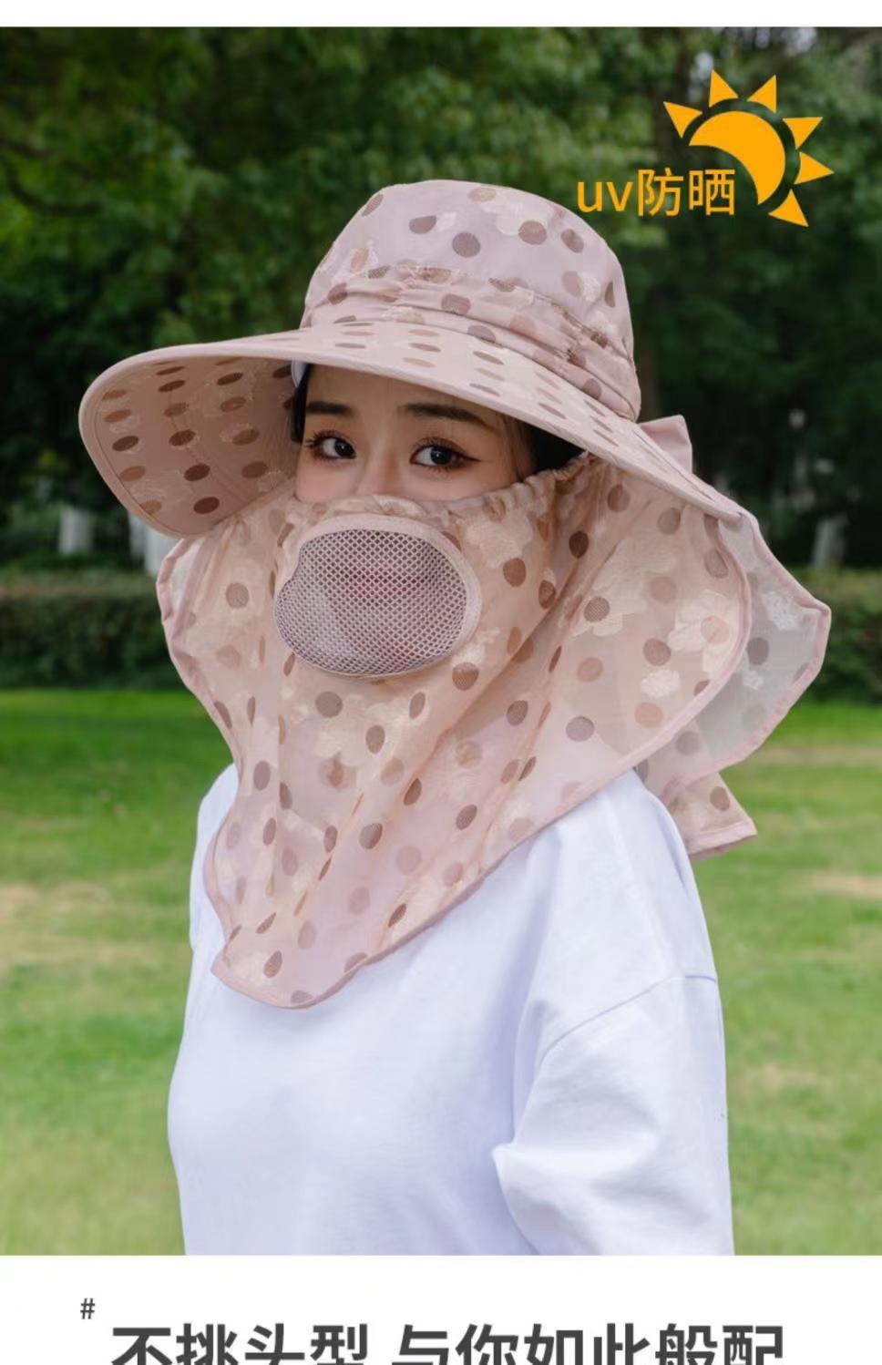 Verano nuevo sombrero de sol para damas ala grande máscara desmontable sombrero para el sol para salir a montar sombrero para el sol para la cara al por mayor