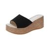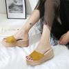 Pantuflas de una línea con suela gruesa para mujer en verano, estilo coreano, zapatos de plataforma de gamuza, tacones de cuña, tacones altos, casual