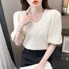 Camisa de gasa plisada con cuello en V para mujer, blusa elegante, holgada y adelgazante, estilo occidental, primavera 2023