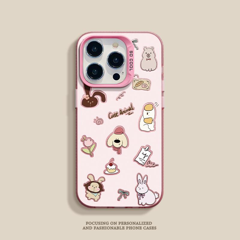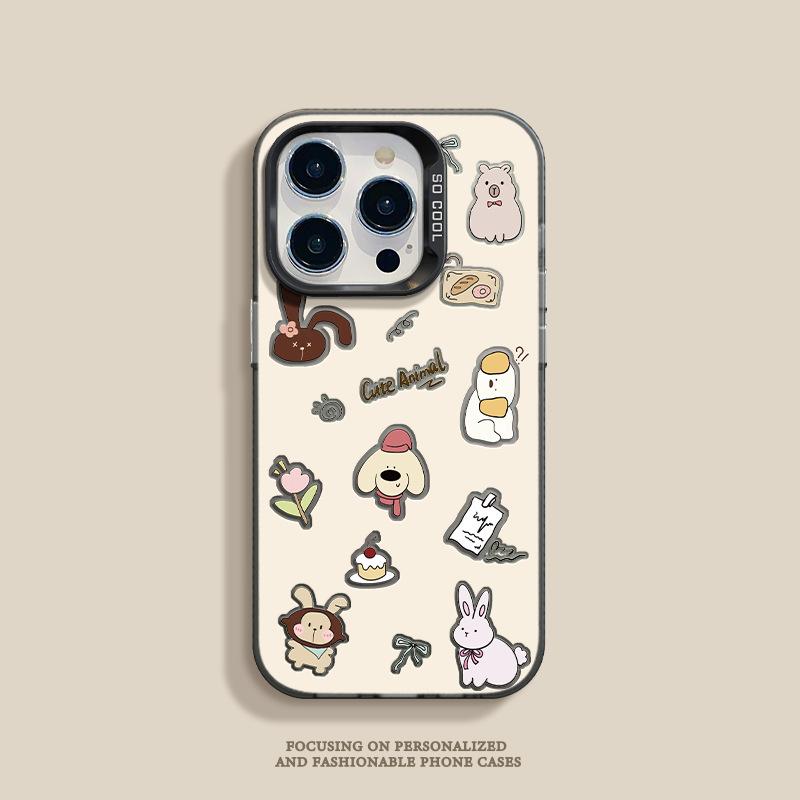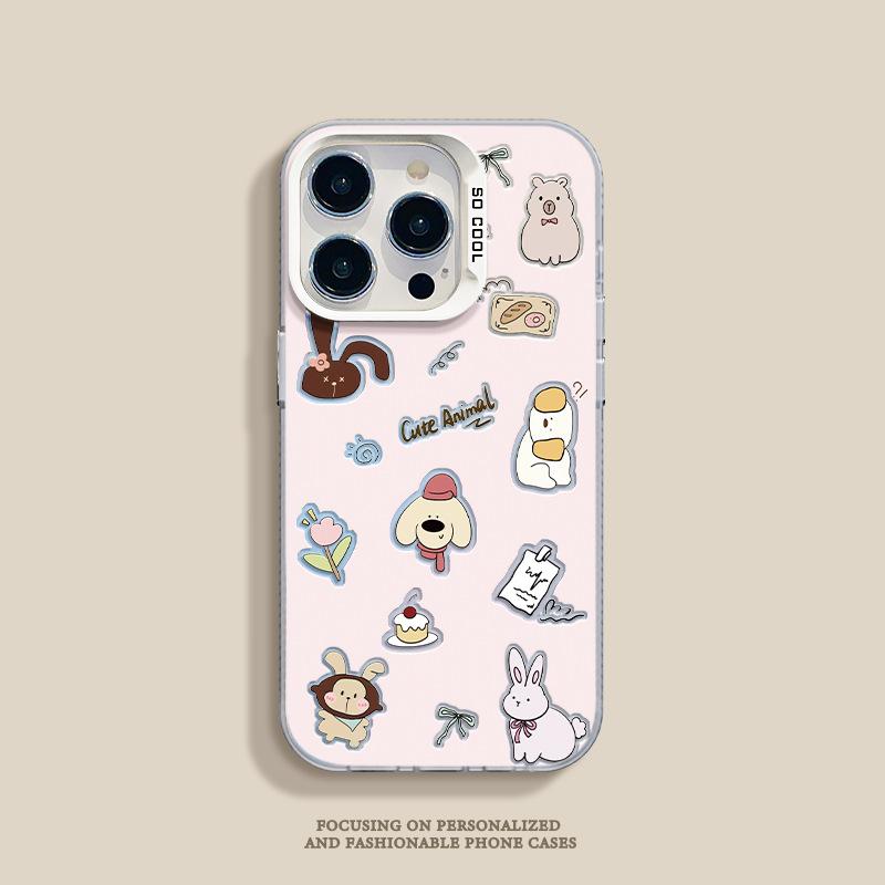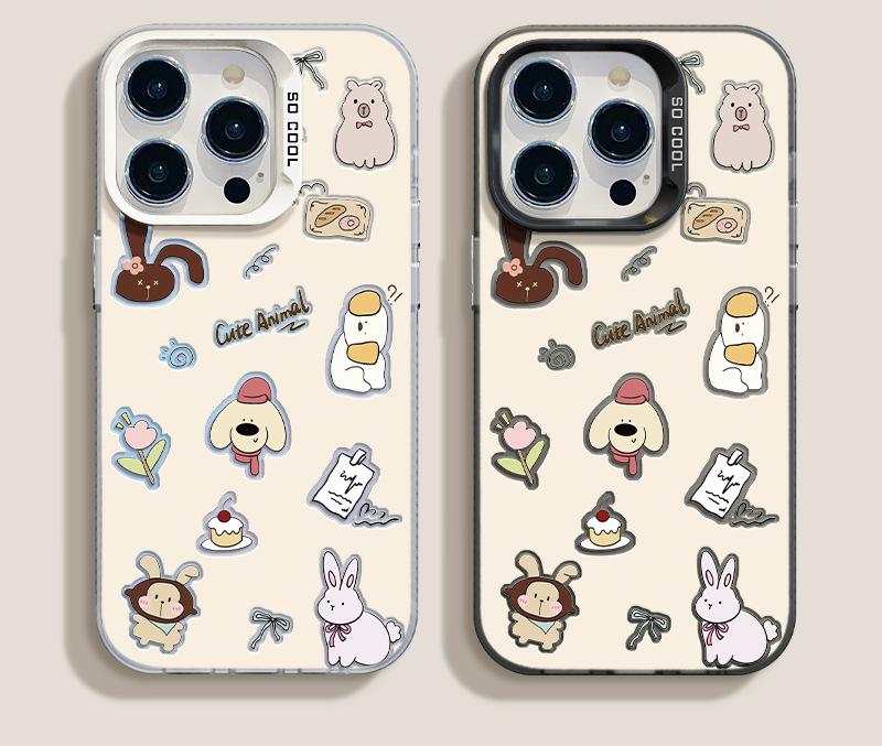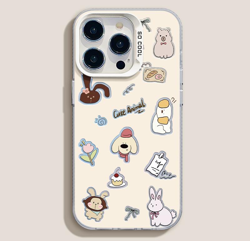 Funda para teléfono Apple 16/15pro con dibujos animados para iPhone 14, color plateado, 13pro, Huawei, diseño de animales lindos.