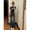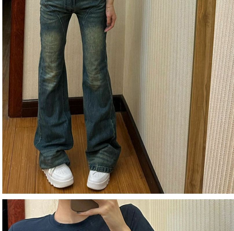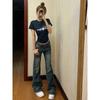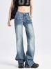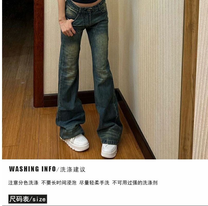 Pantalones vaqueros ajustados con diseño de cintura baja y costuras lavadas retro para mujer, pantalones acampanados de pierna ancha de primavera y verano de High Street a la moda para chica sexy