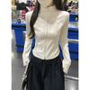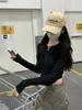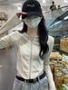 Americano 2025 Principios de Otoño Estilo Coreano Delgado Cárdigan con Cremallera Espiga Diseño Delgado Camiseta de Manga Larga Top de Moda para Mujer