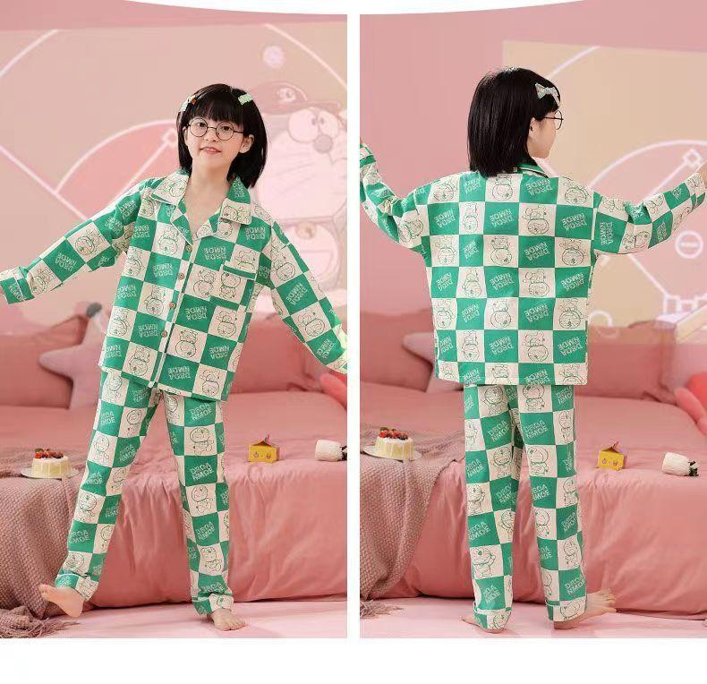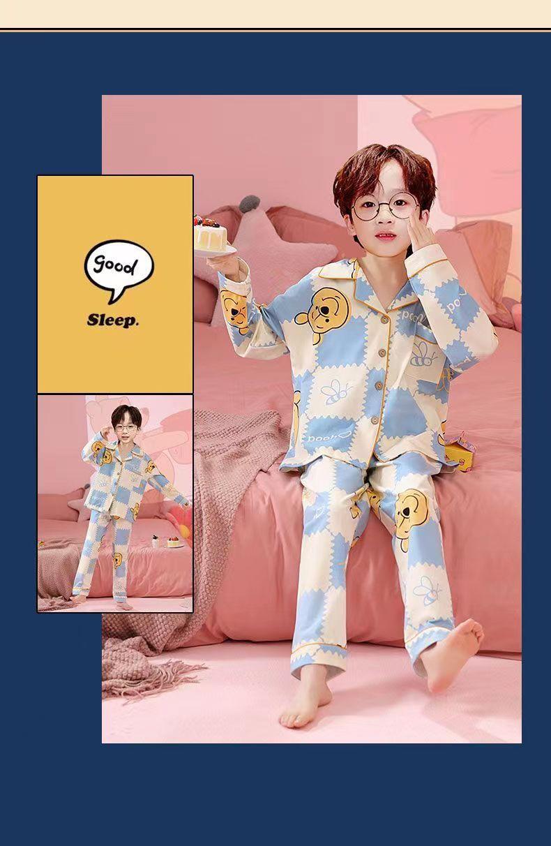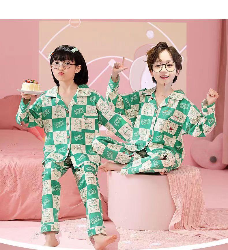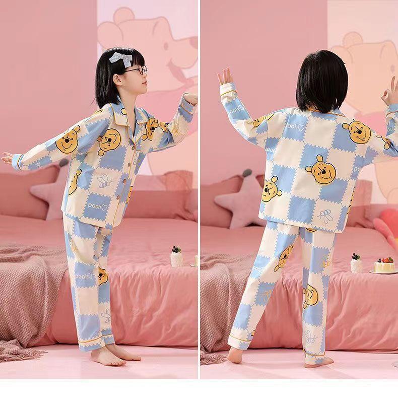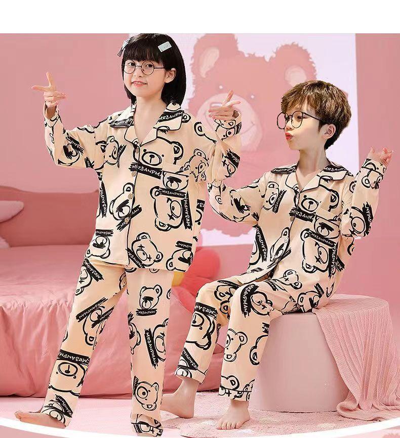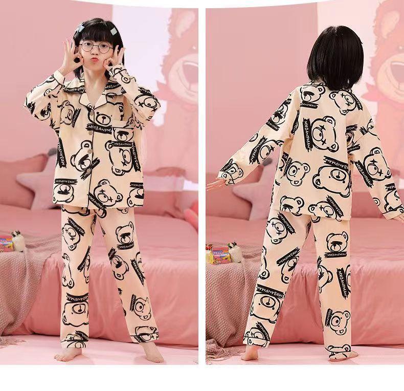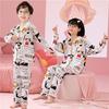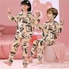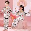 Pijama tipo cárdigan de algodón artificial para padres e hijos, traje de manga larga con dibujos animados para niños y niñas, ropa de casa fina para niños medianos y grandes, otoño e invierno, nuevo