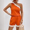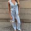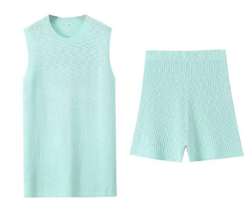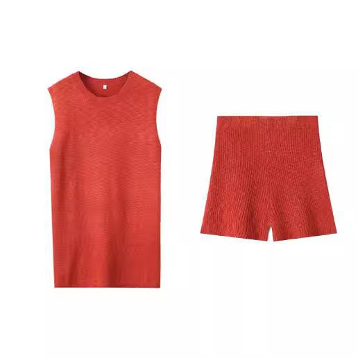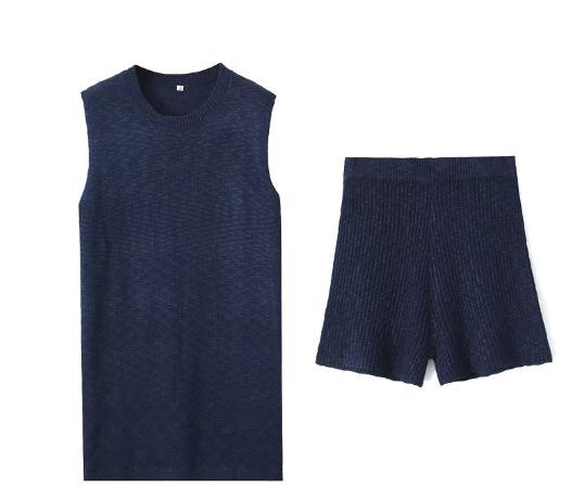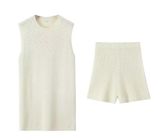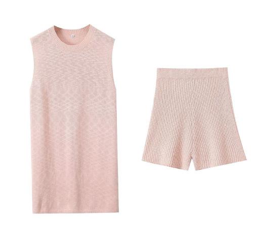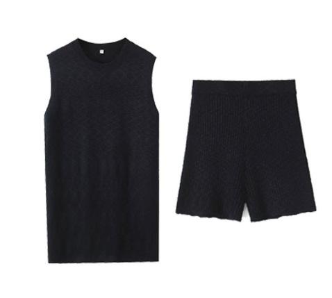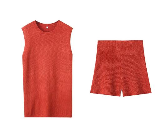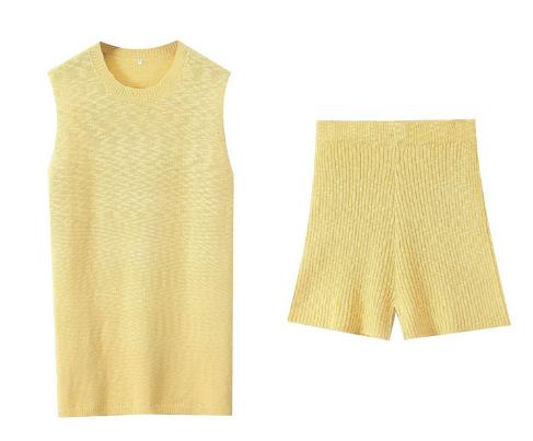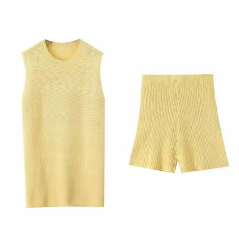 Europa y Estados Unidos para mujer principios de otoño tejido punto cuello redondo chaleco ajustado shorts traje casual S20915