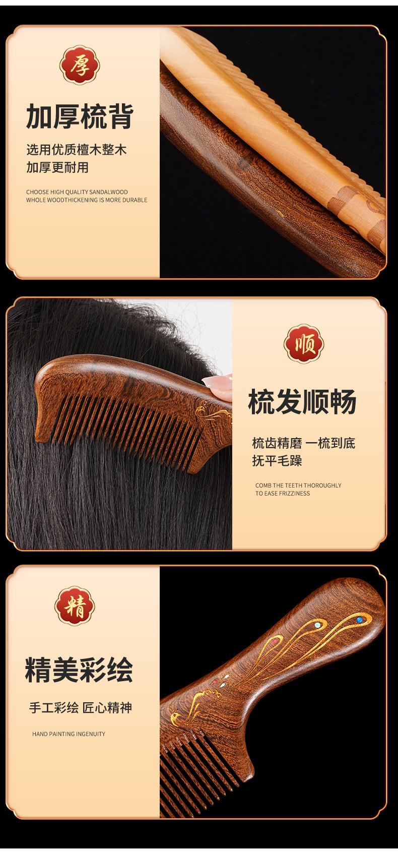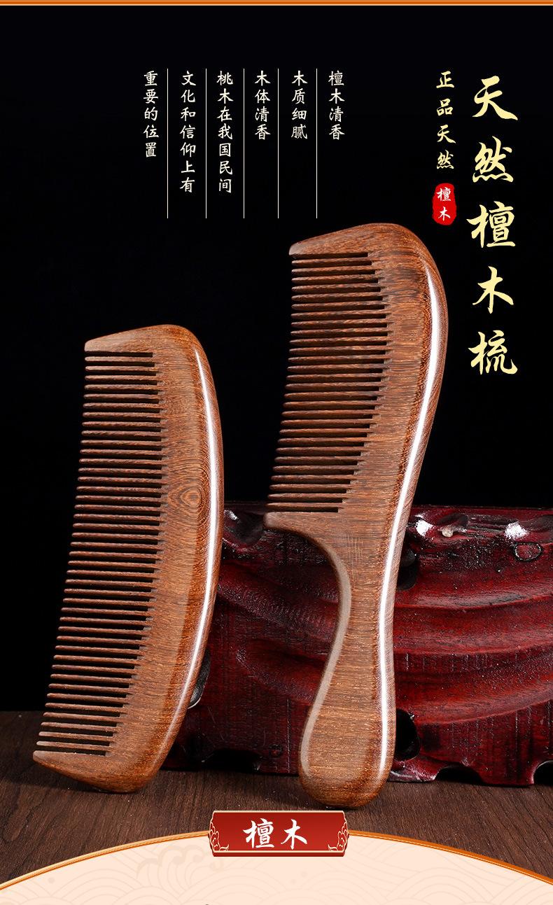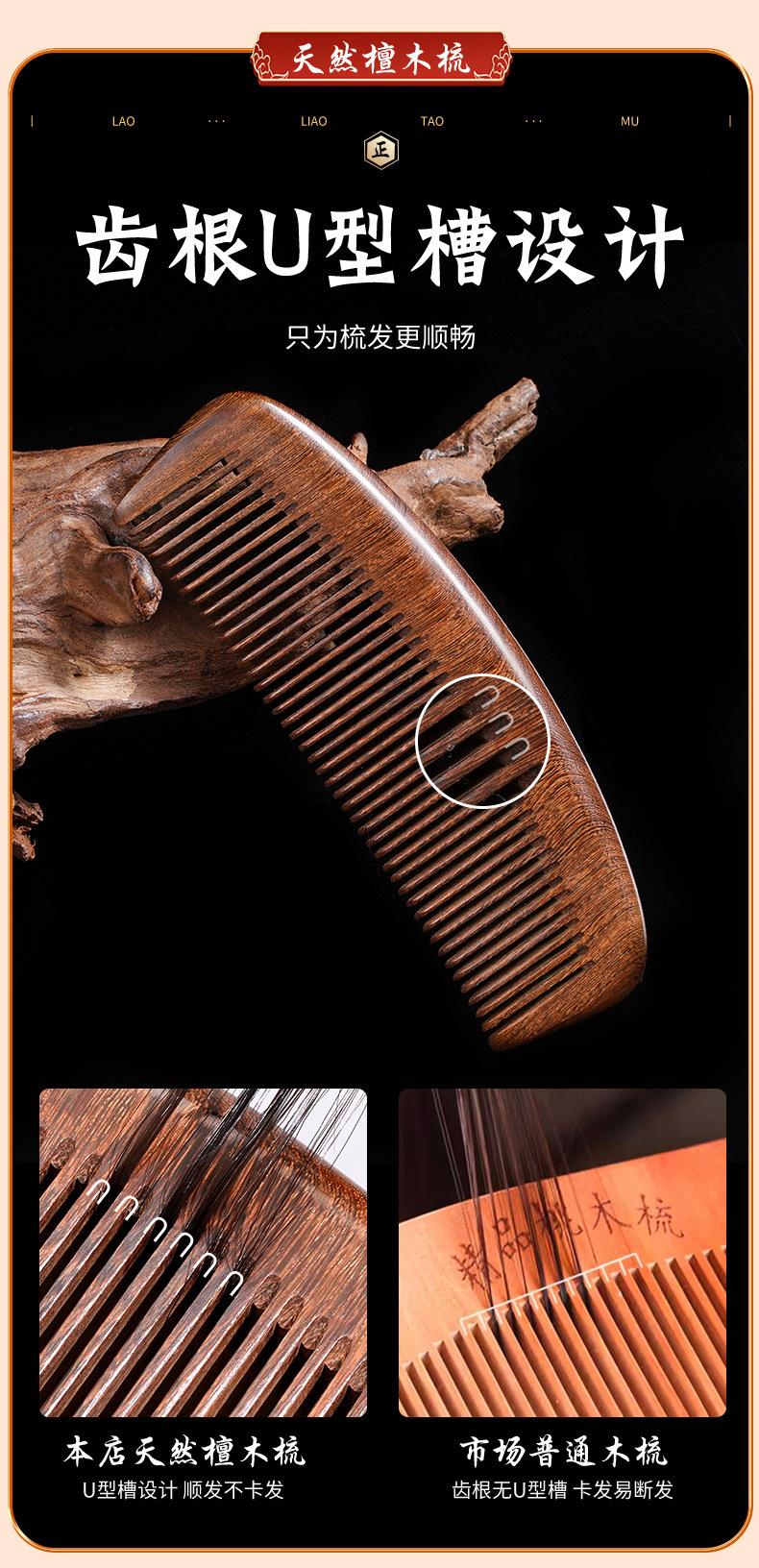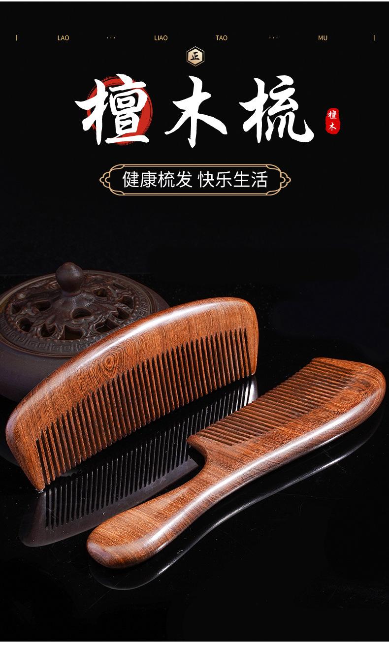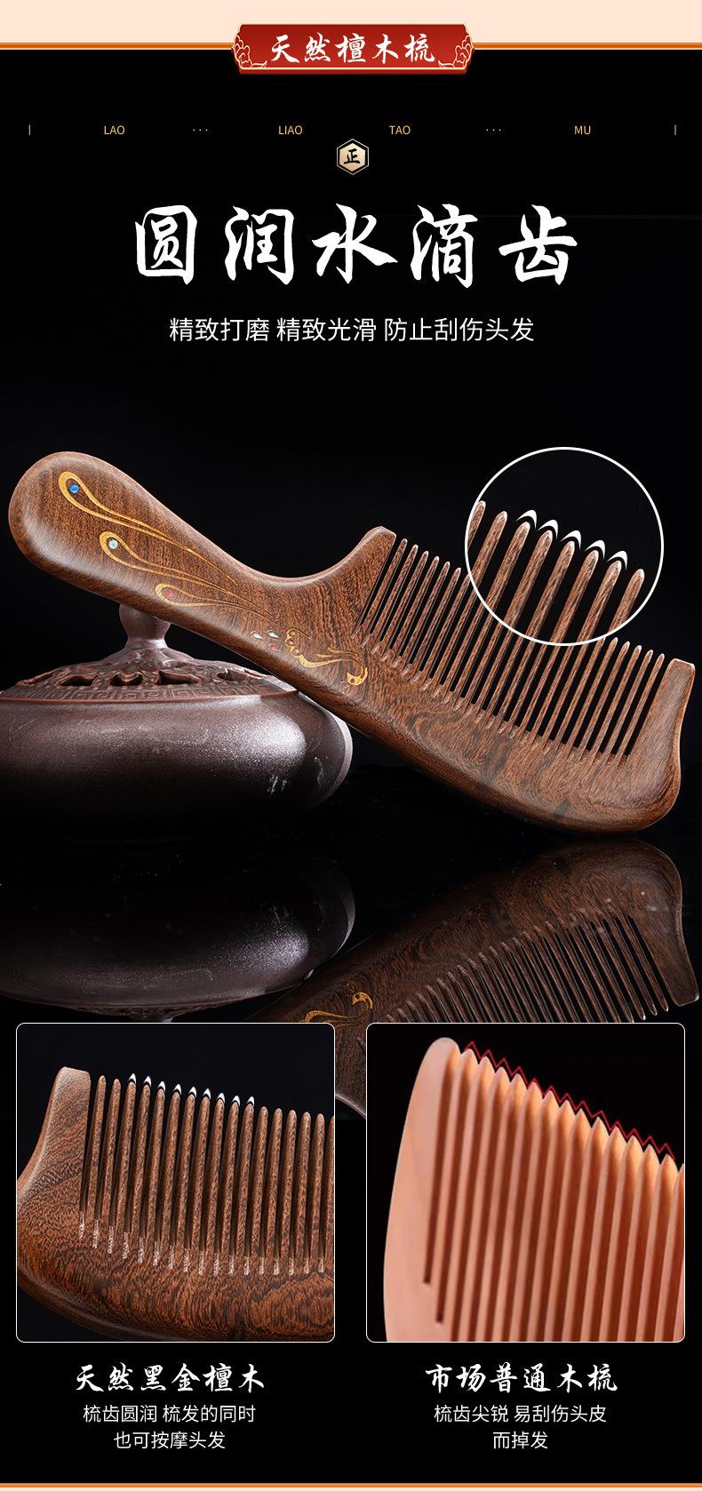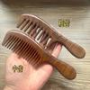 Peine de cabeza de sándalo negro dorado natural, venta al por mayor, peine de madera con mango largo y letras, peine de sándalo, masaje de cabeza, peine portátil de dientes anchos.