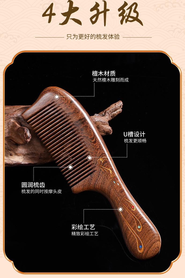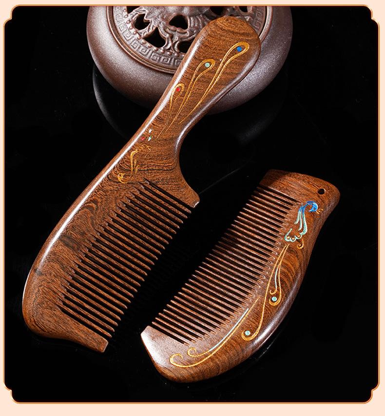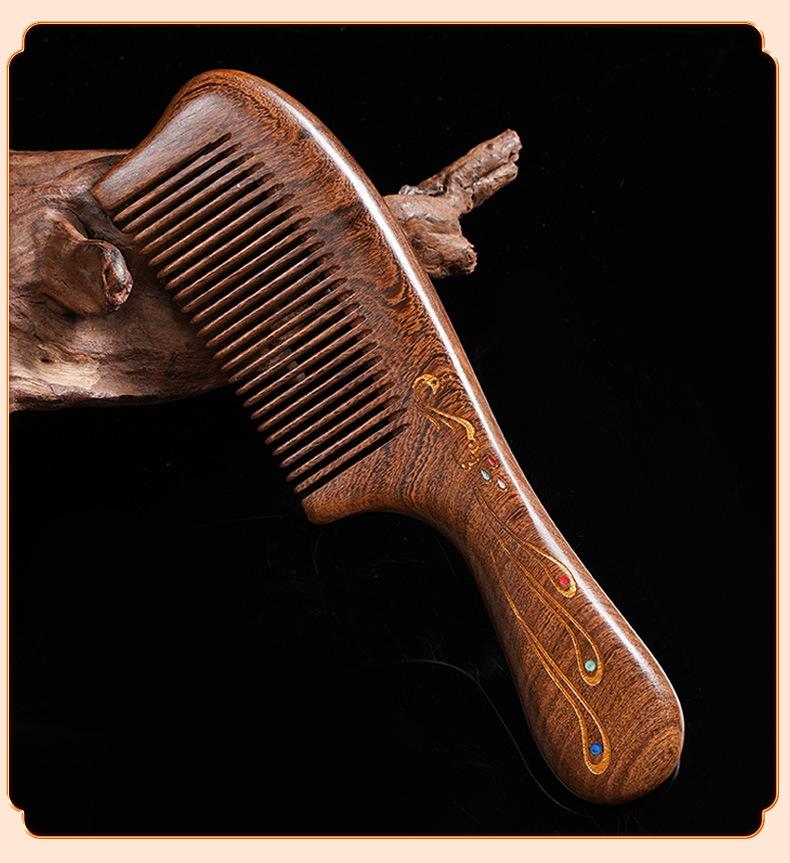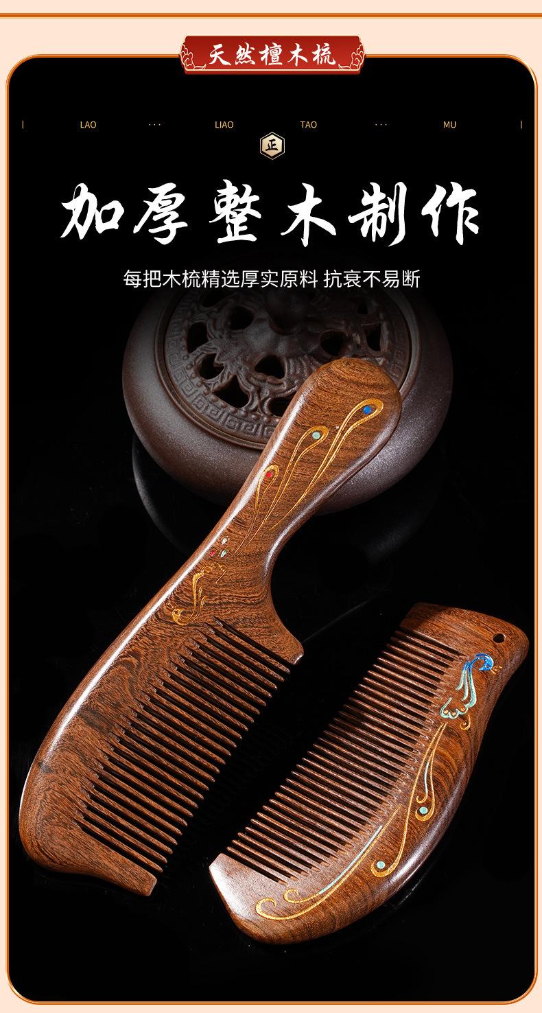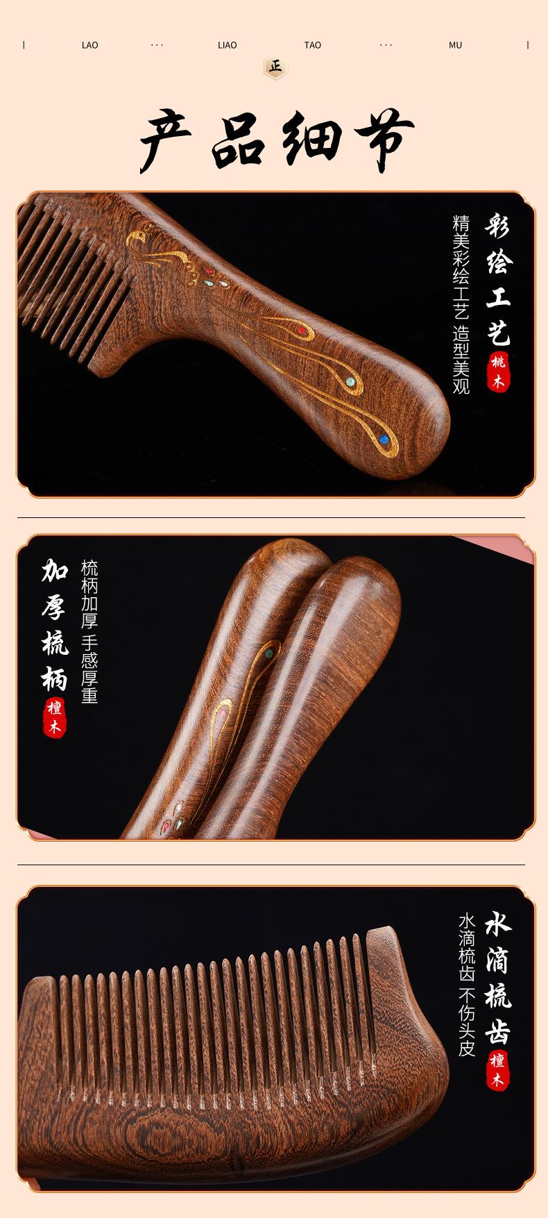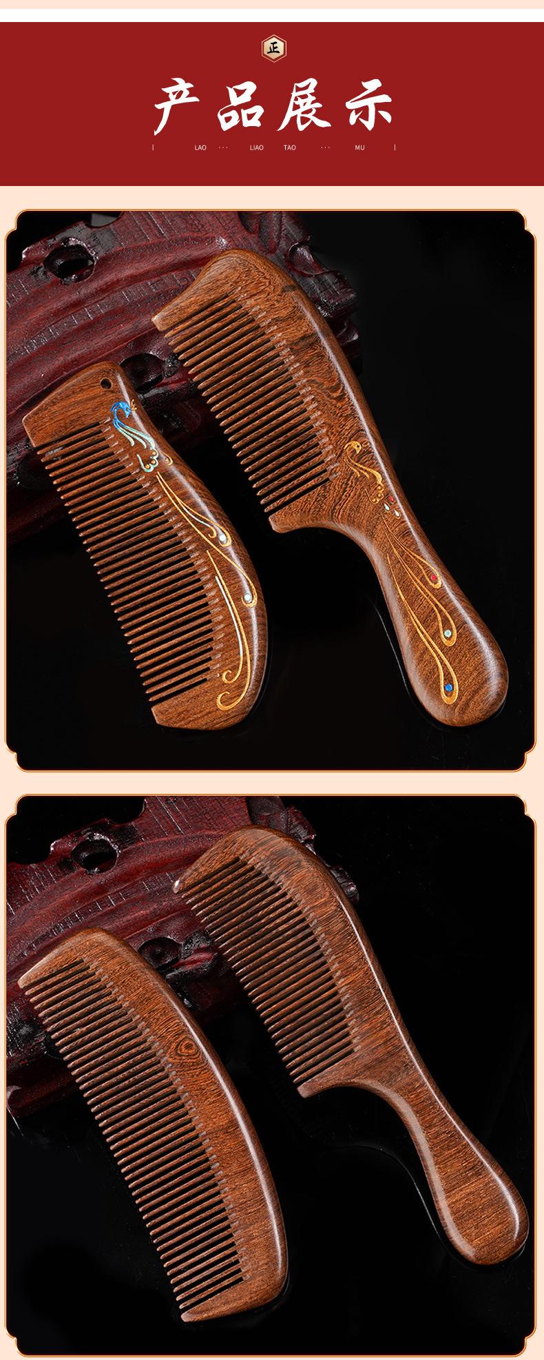 Peine de cabeza de sándalo negro dorado natural, venta al por mayor, peine de madera con mango largo y letras, peine de sándalo, masaje de cabeza, peine portátil de dientes anchos.