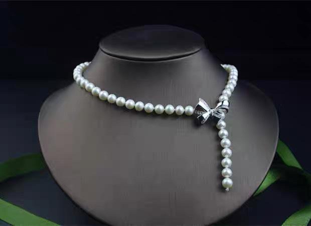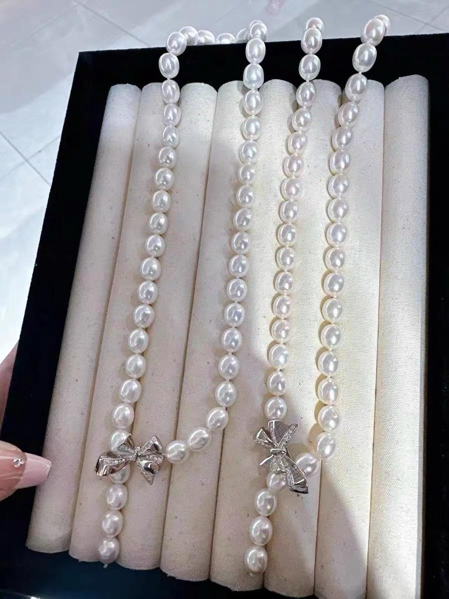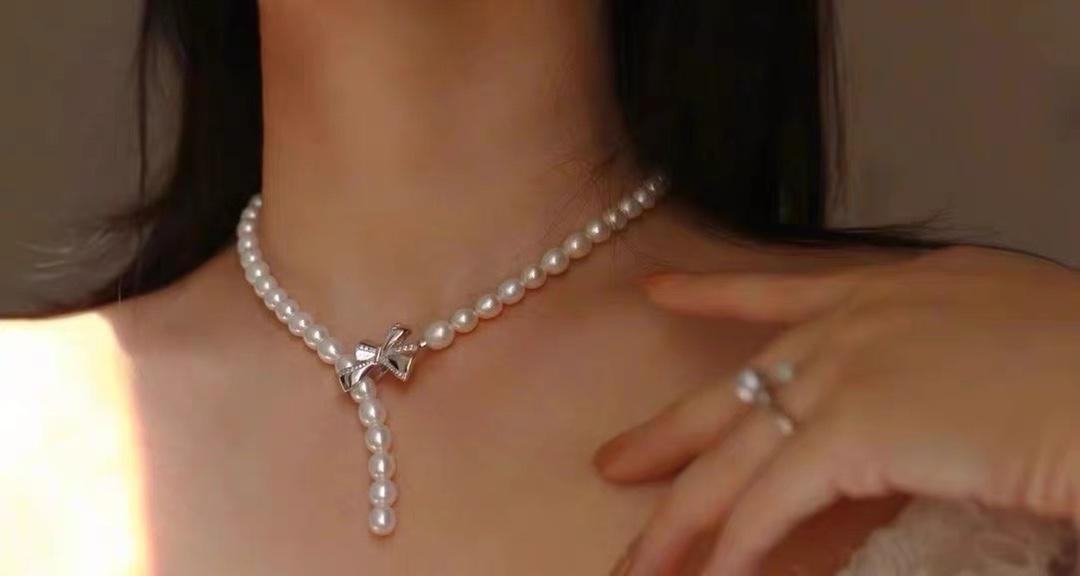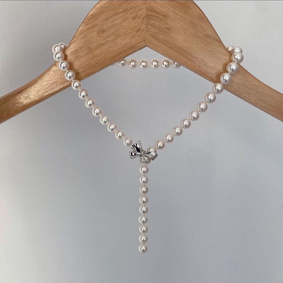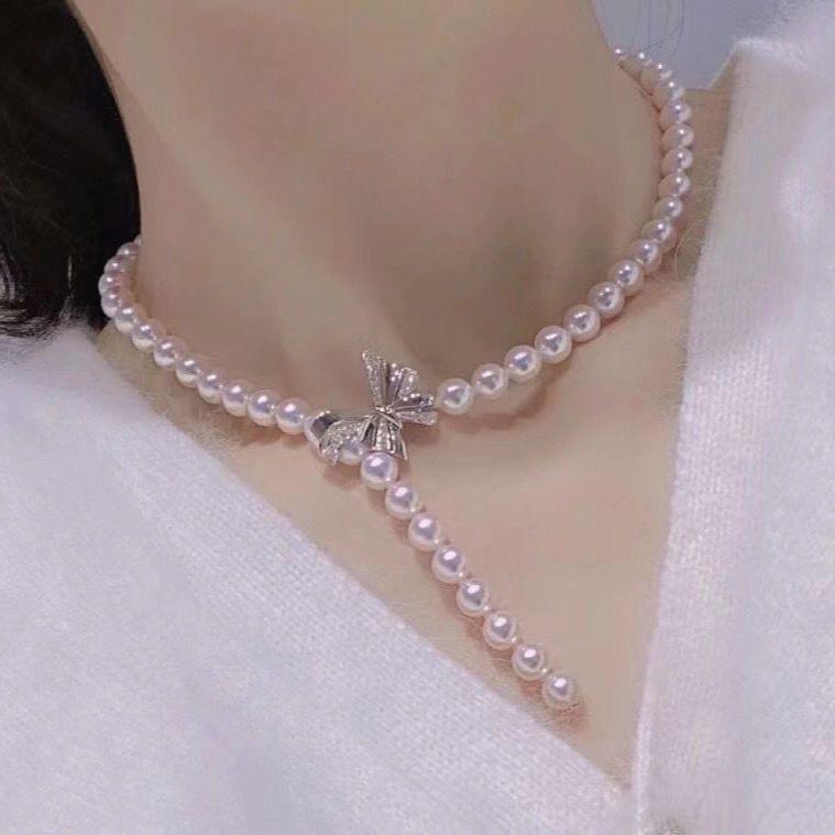 Collar de perlas naturales de agua dulce, cadena de clavícula para mujer, productos genuinos, traje para enviar a mamá, collar de lazo vintage de alta gama, cadena de collar