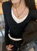 Camiseta cómoda y holgada de estilo coreano con cuello en V, diseño de dos piezas que adelgaza, versátil, para otoño e invierno, nueva camiseta informal tipo jersey.