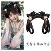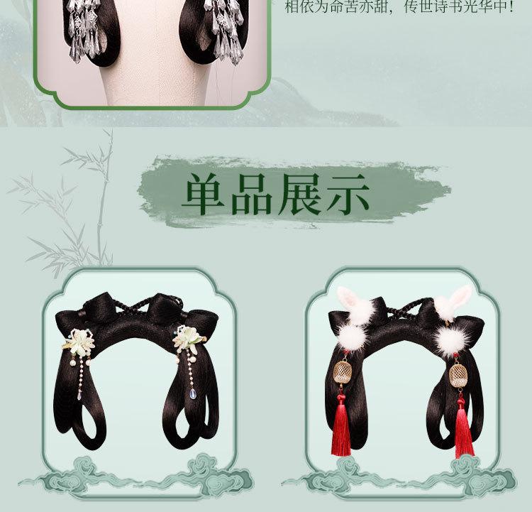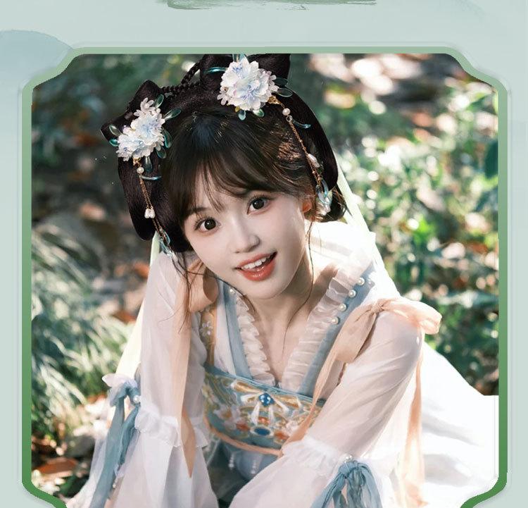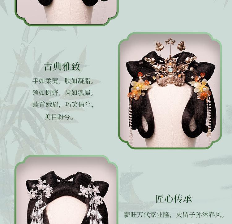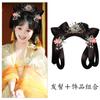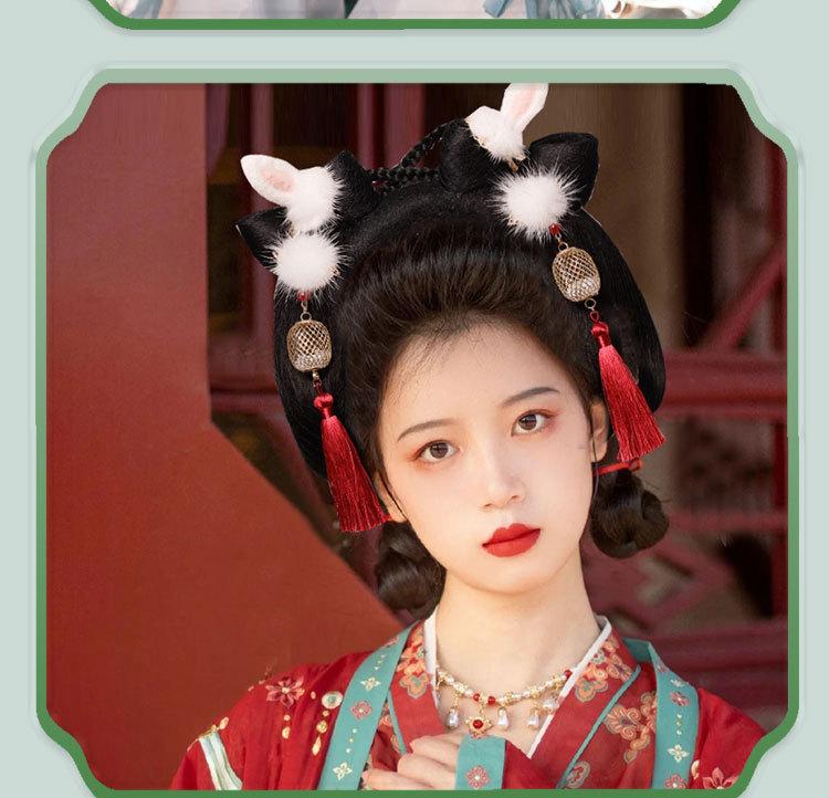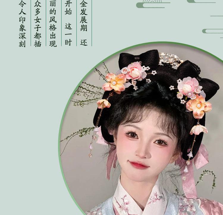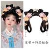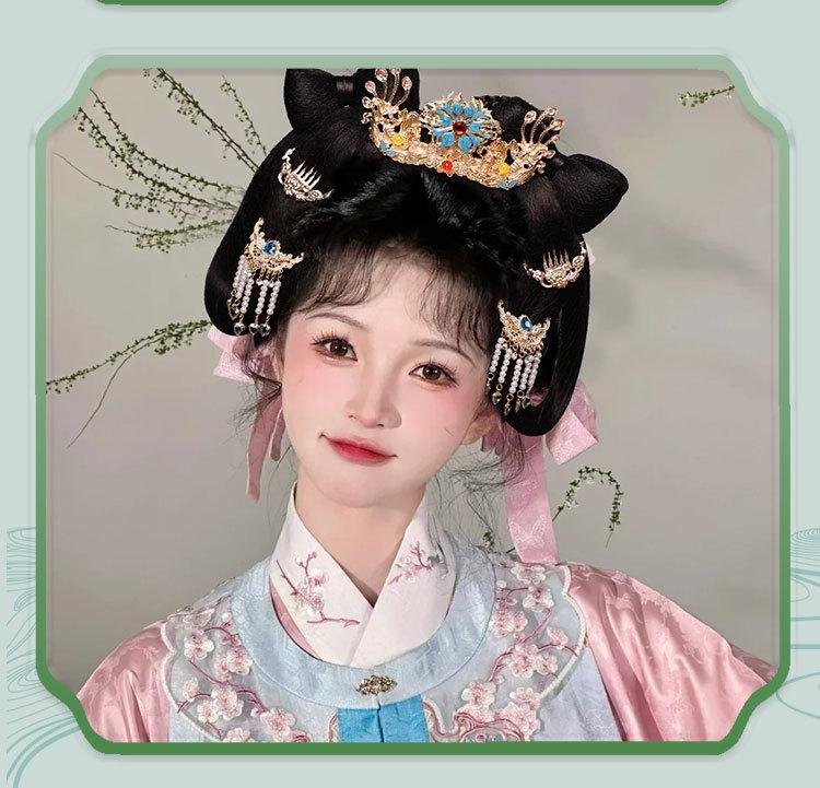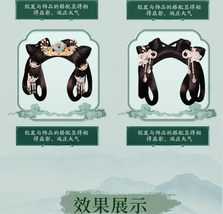 Bolsa de pelo falso Hanfu antigua, traje antiguo, tocado de moño de una pieza, estilo Tang, lazo, conjunto completo, almohadilla, forma de bolsa de pelo