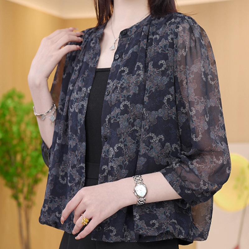 TikTok Hot 2024 Verano Nueva Moda Suelta Adelgazante Manga Larga Cárdigan Francés de Lujo Ligero Camisa Chaqueta Estampada