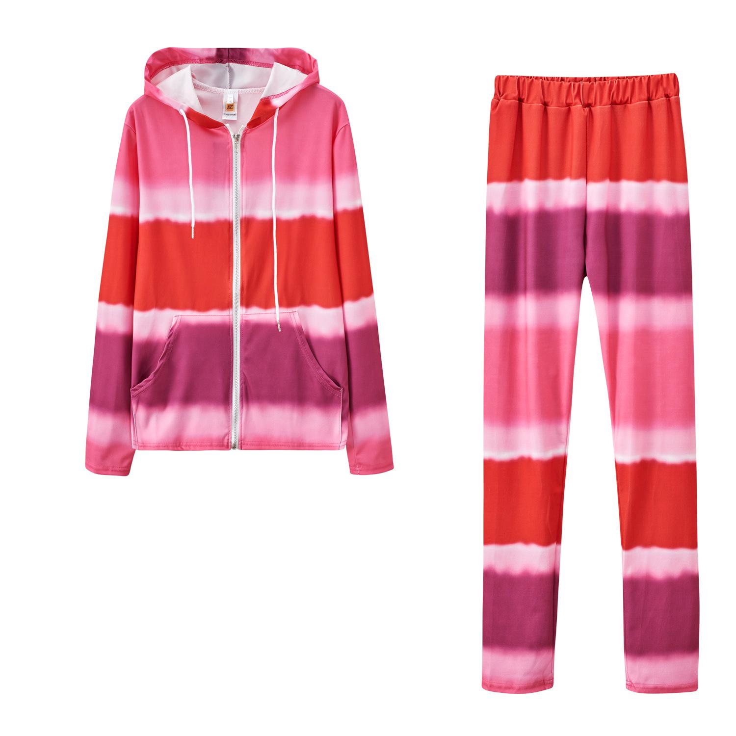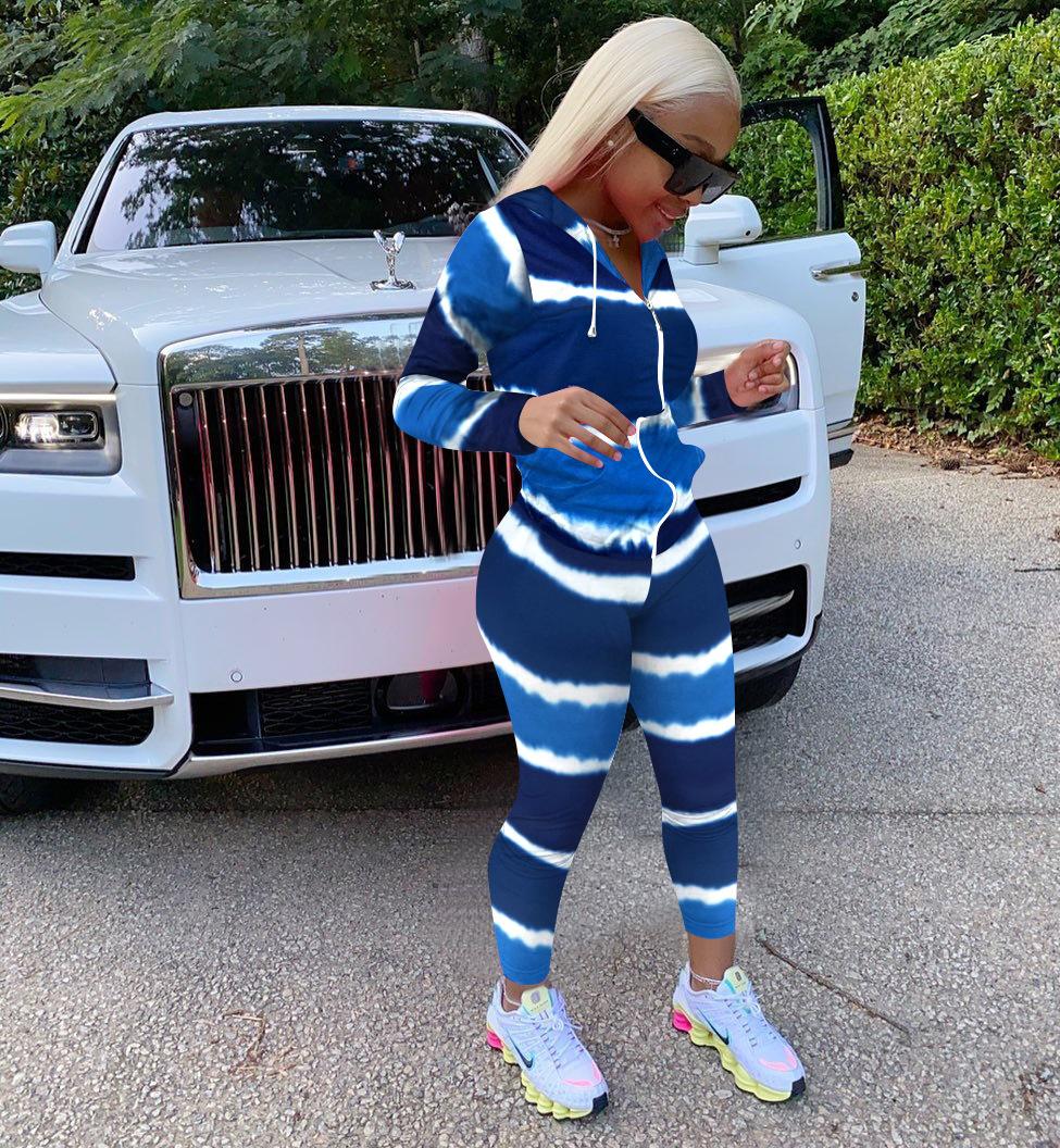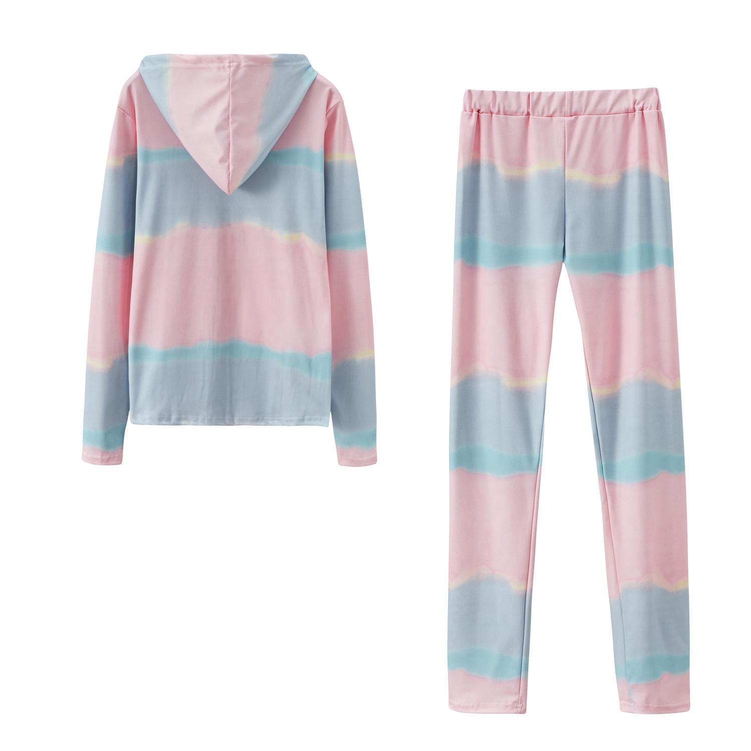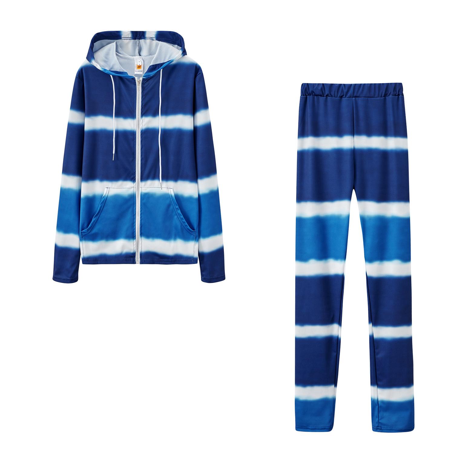 Ropa de mujer europea y americana de primavera y otoño de 2023, la más vendida de Amazon AliExpress, con capucha estampada, manga larga, informal, de dos piezas, azul