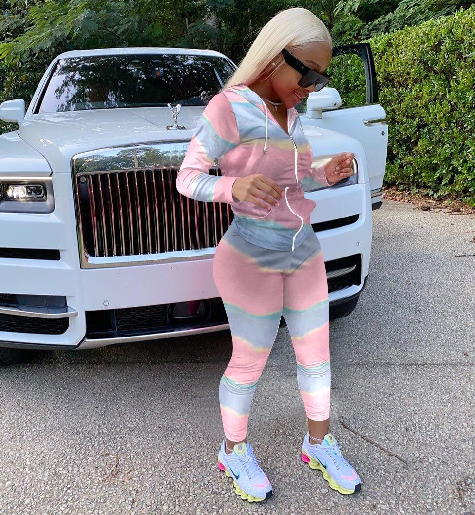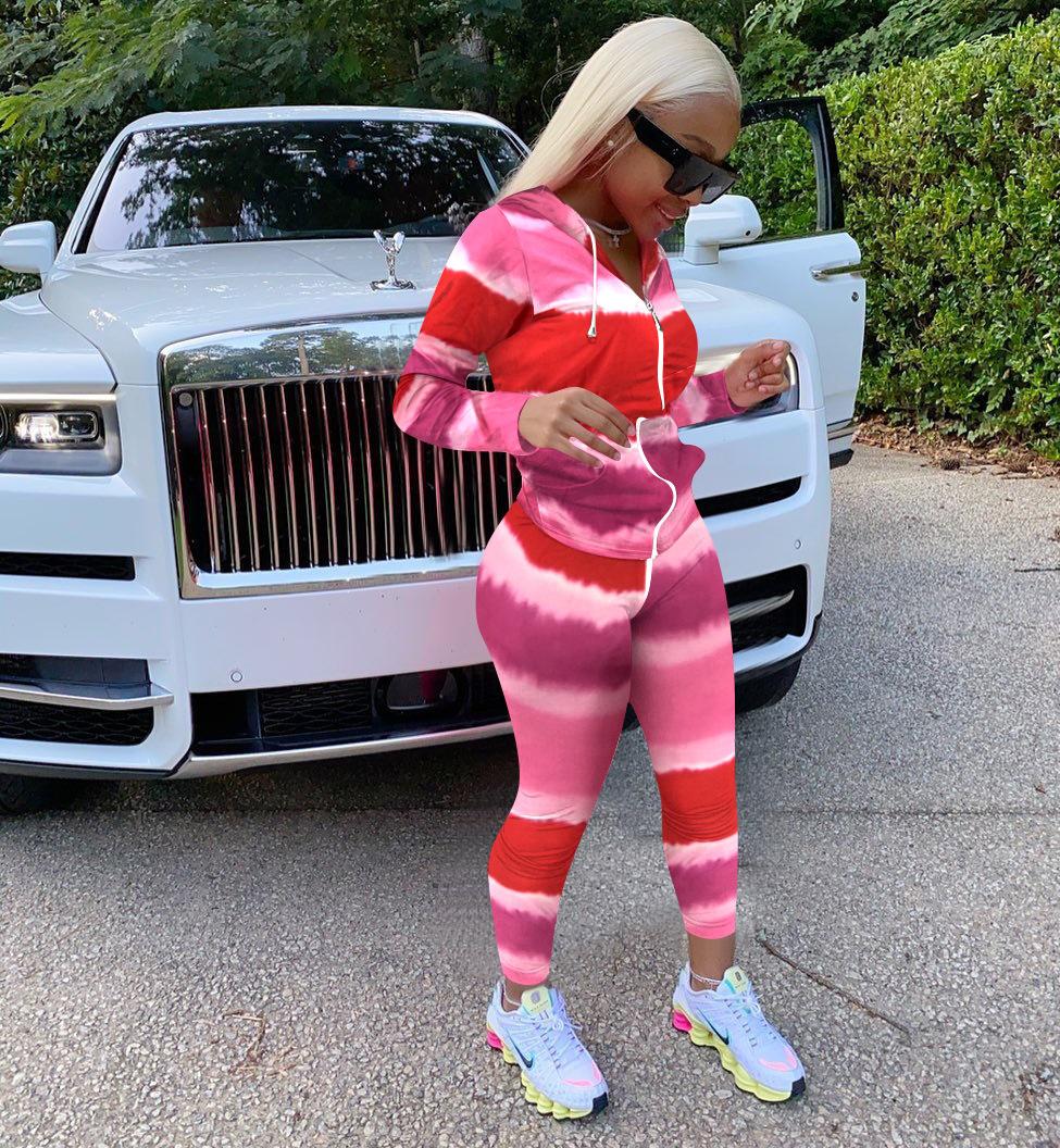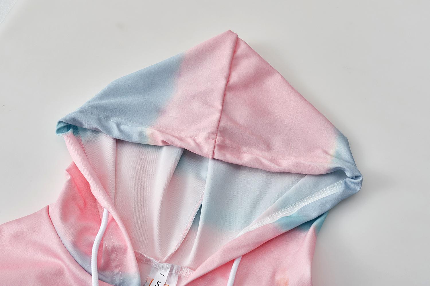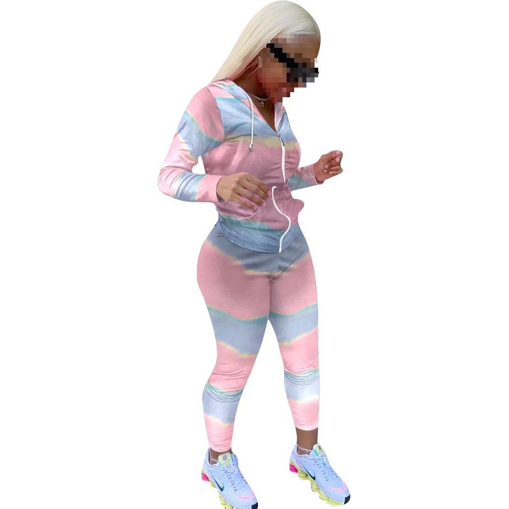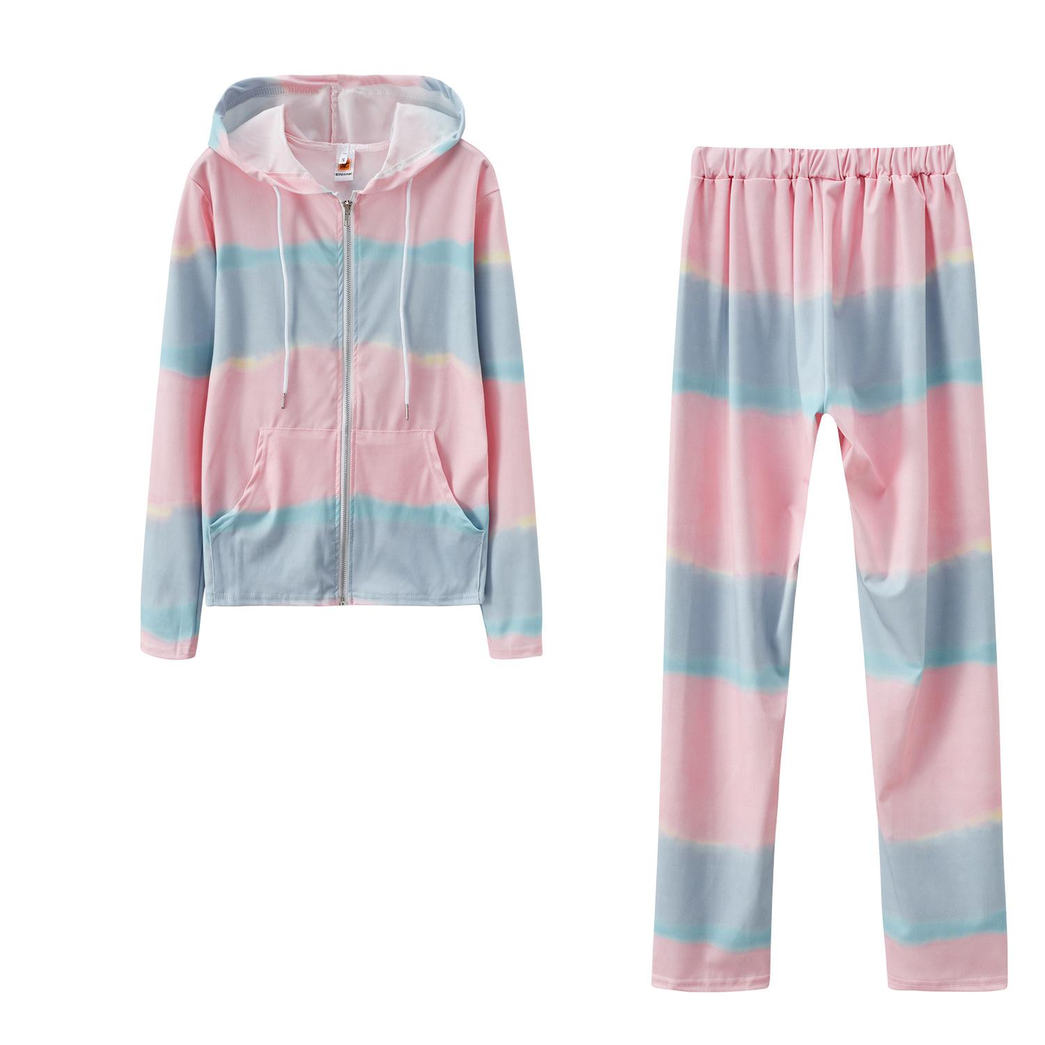 Ropa de mujer europea y americana de primavera y otoño de 2023, la más vendida de Amazon AliExpress, con capucha estampada, manga larga, informal, de dos piezas, azul