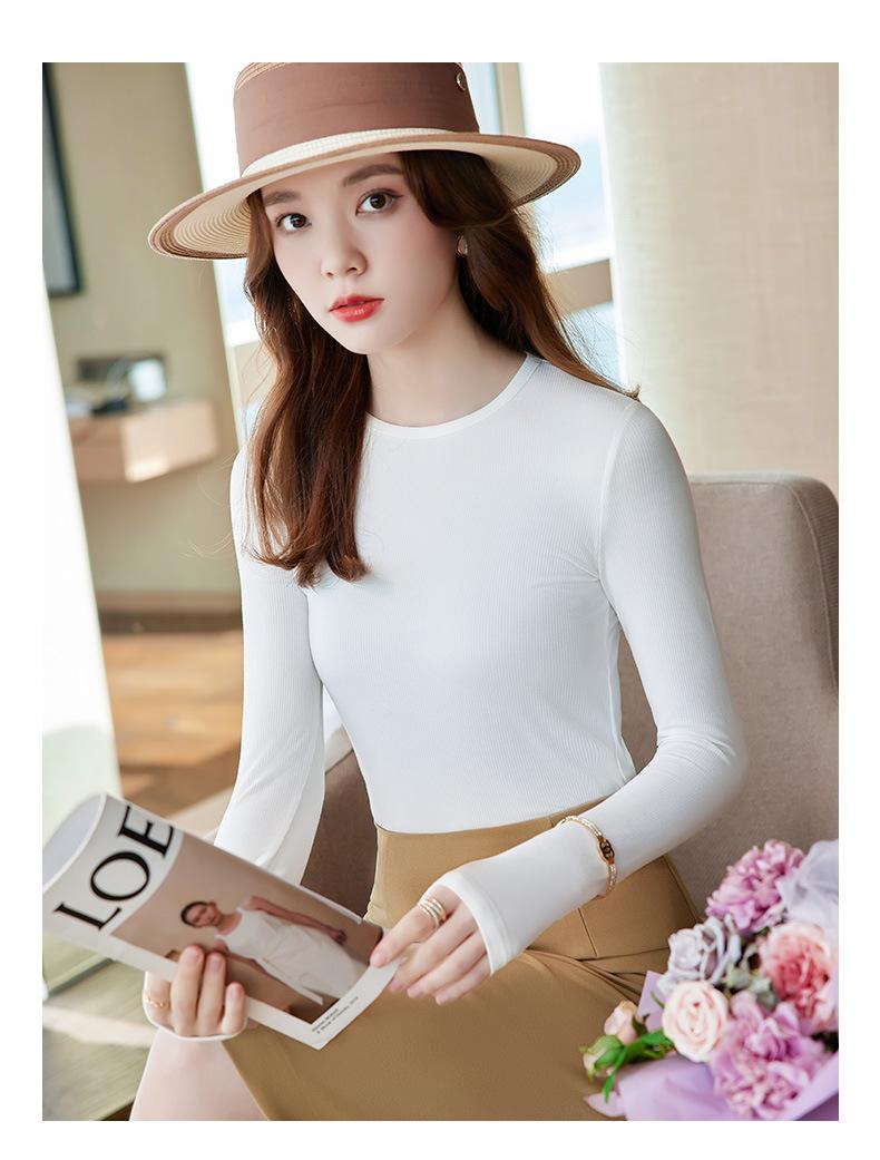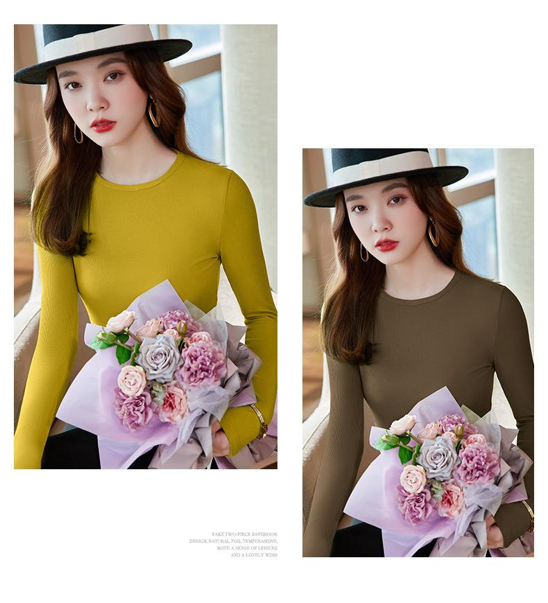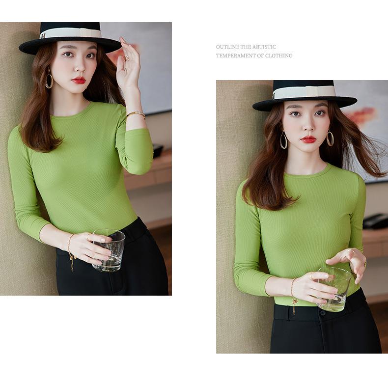 Blusa de manga larga con cuello redondo de punto coreano de principios de otoño para mujer, nueva camisa fina de corte interior profesional de 2023