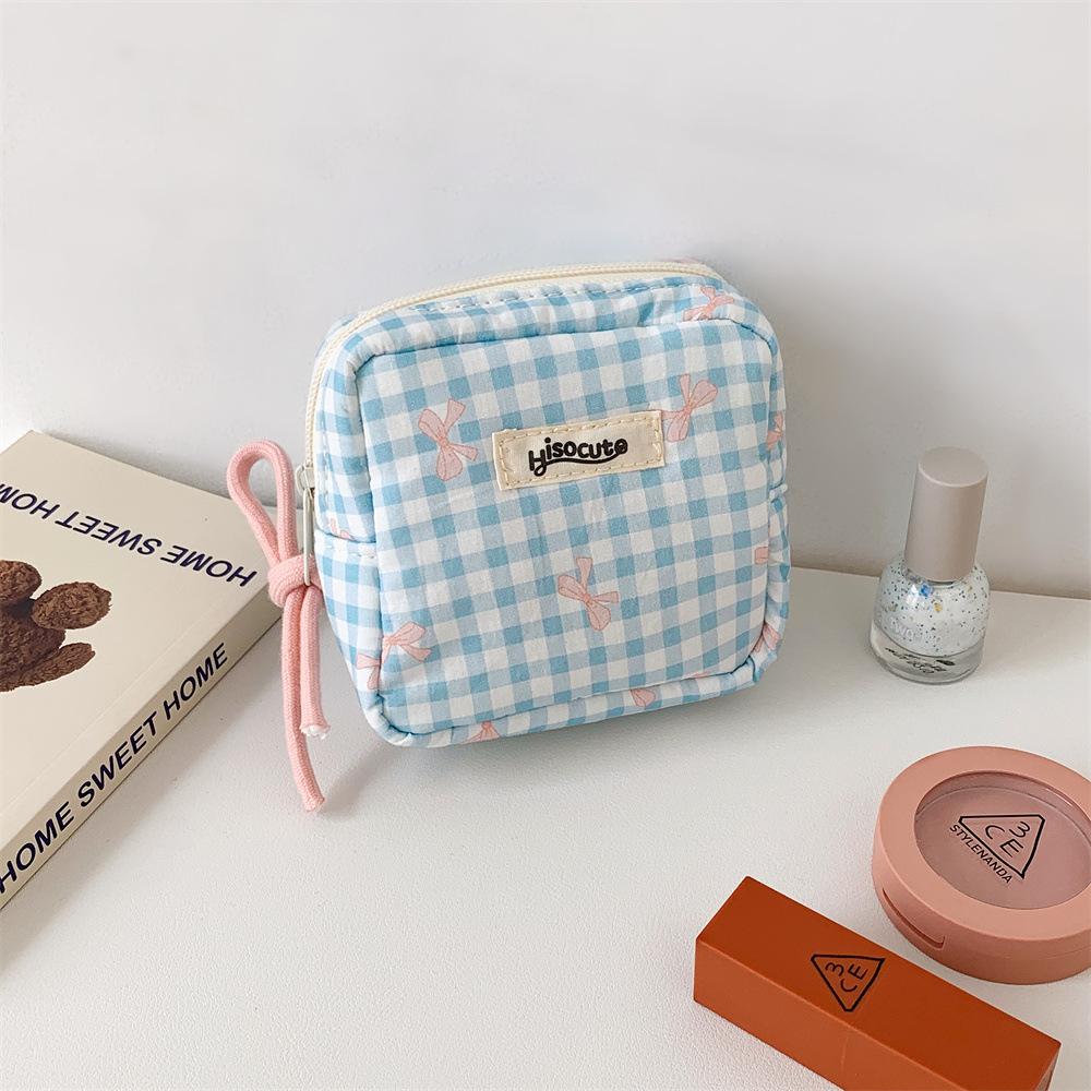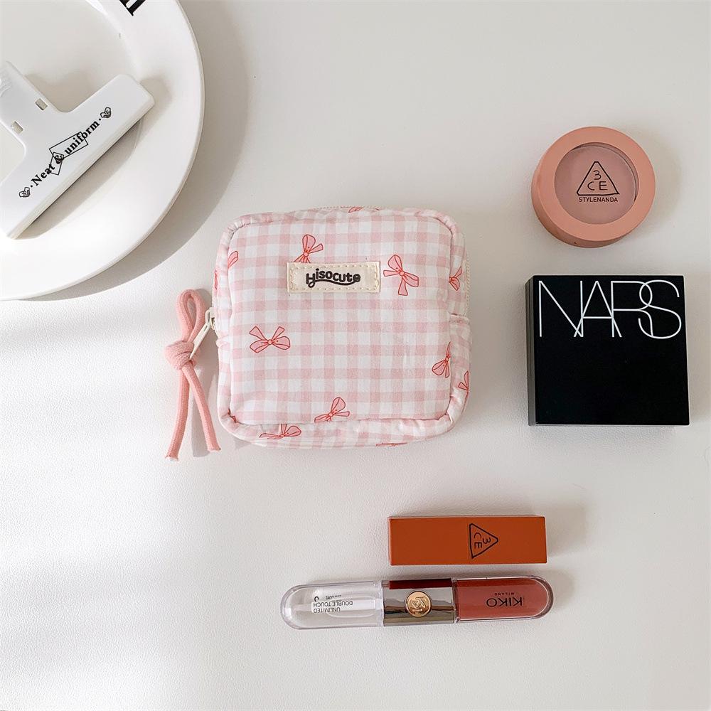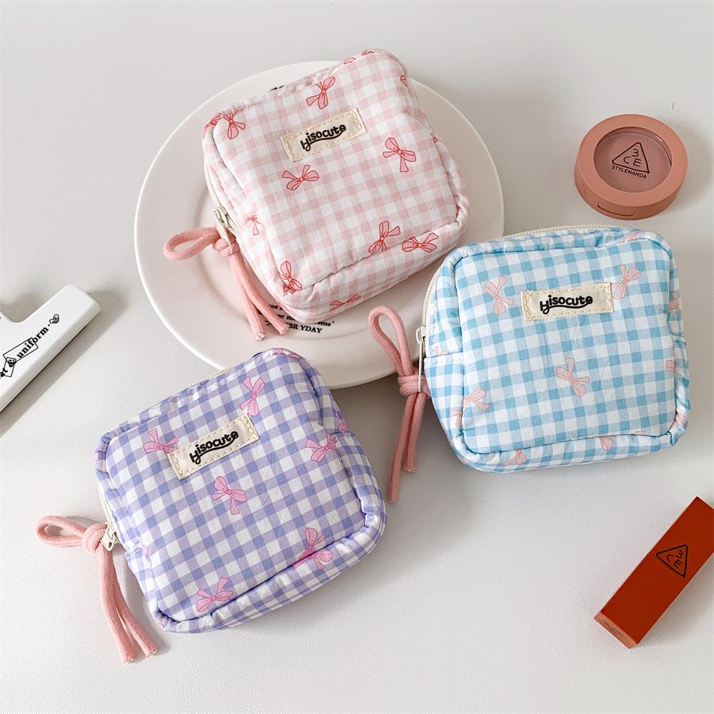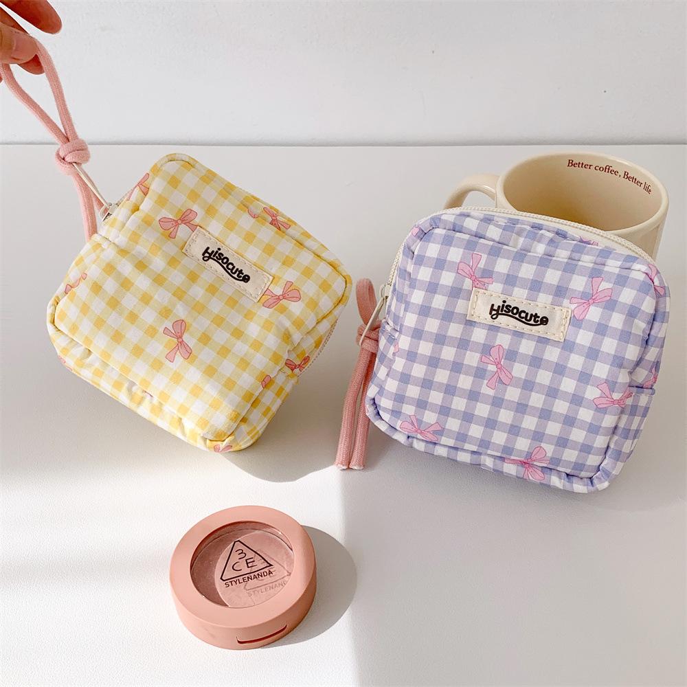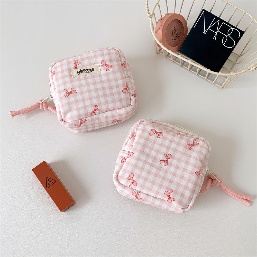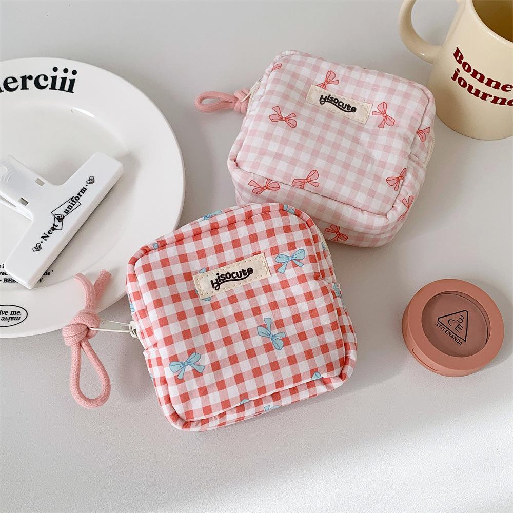 Bolsa Cosmética Cuadrada Simple a Cuadros Estilo Coreano Mariposa Alta Gama Bolsa Roja Bolsa de Almacenamiento Estudiante Portátil Monedero Bolsa