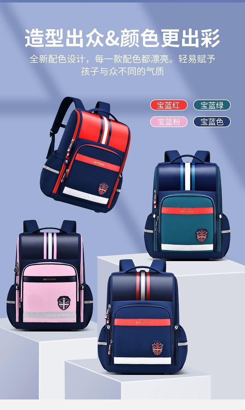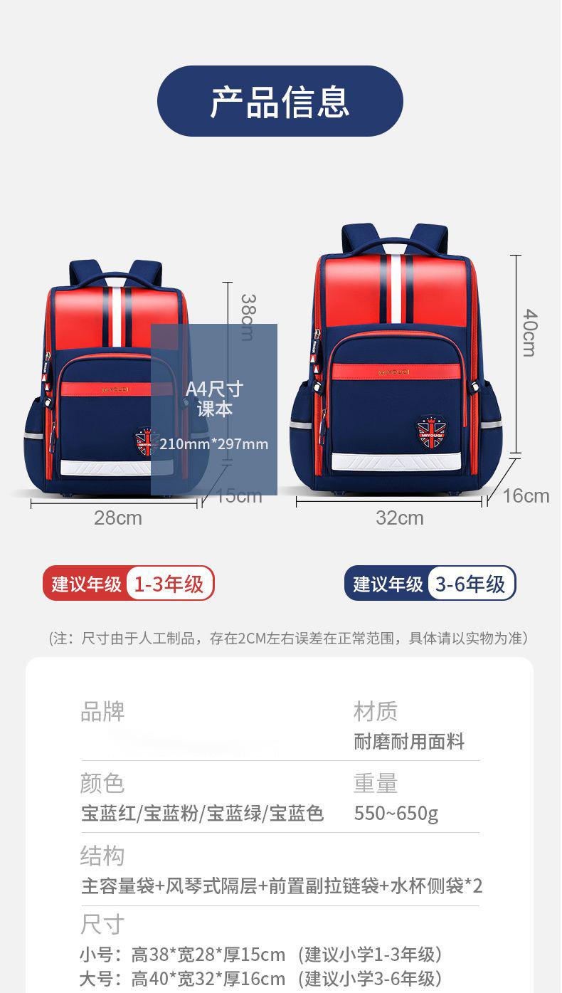 Mochila escolar primaria para niños y niñas, estilo británico, de 3.º a 6.º grado, ligera, impermeable y con protección de cresta.