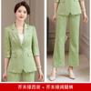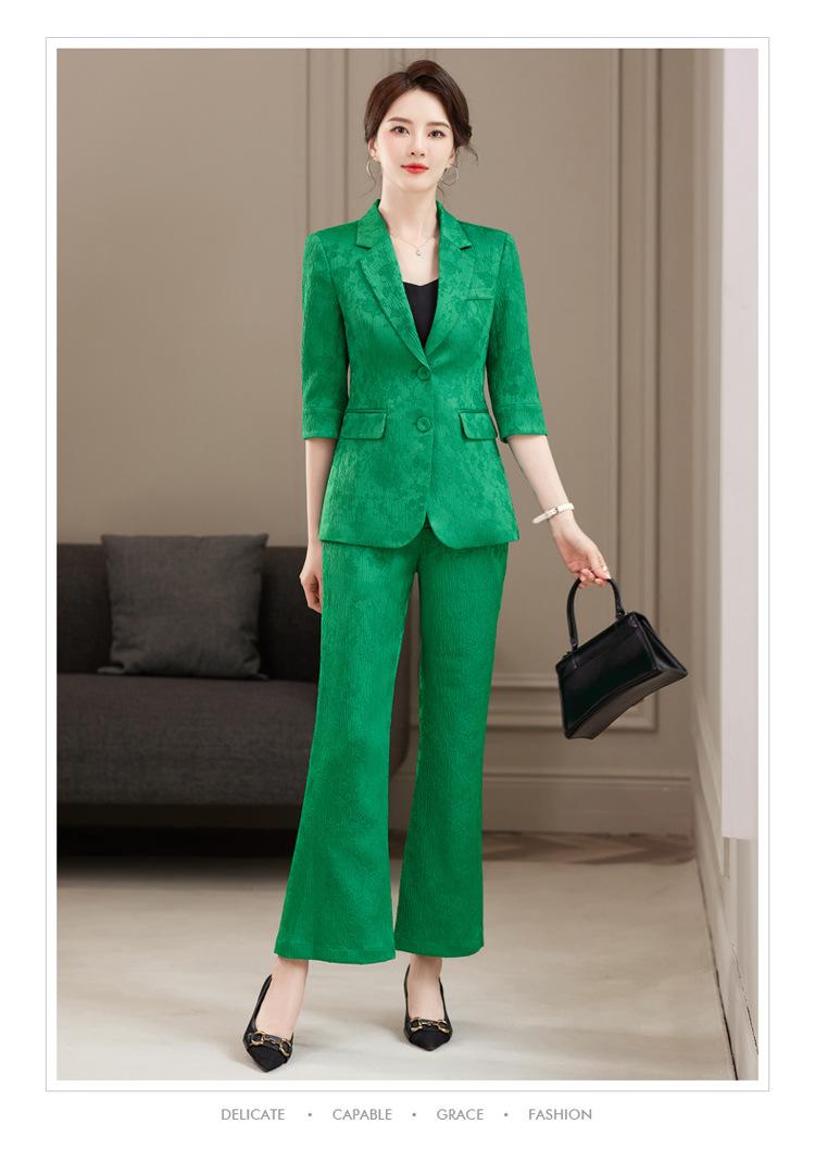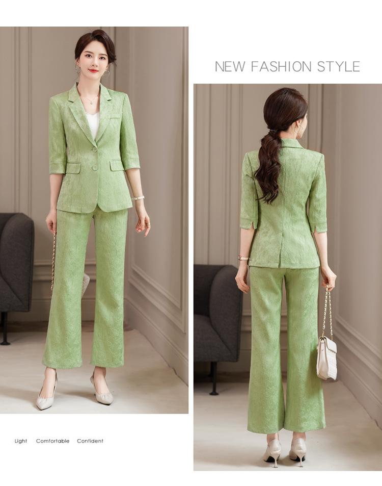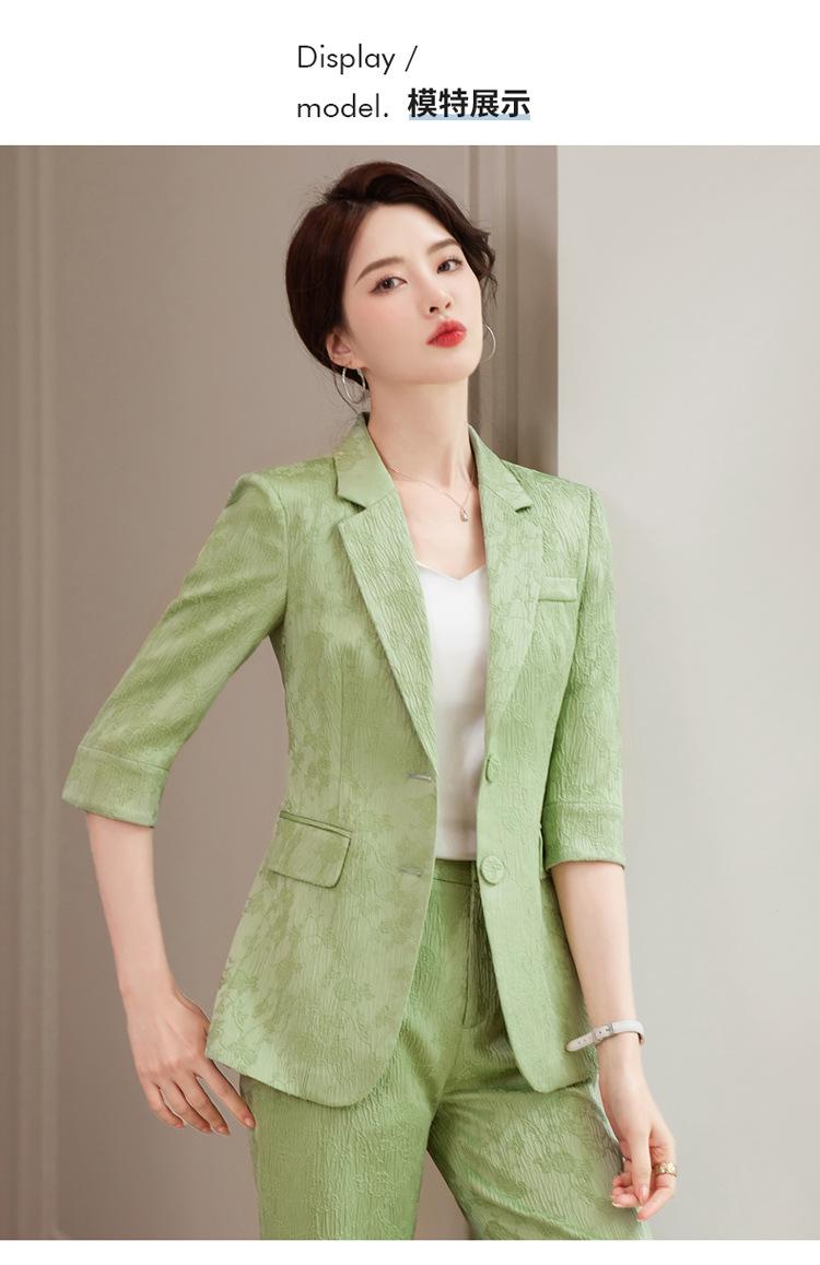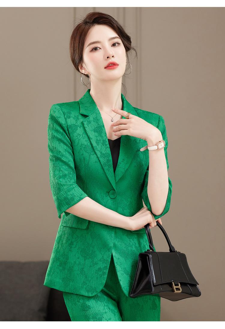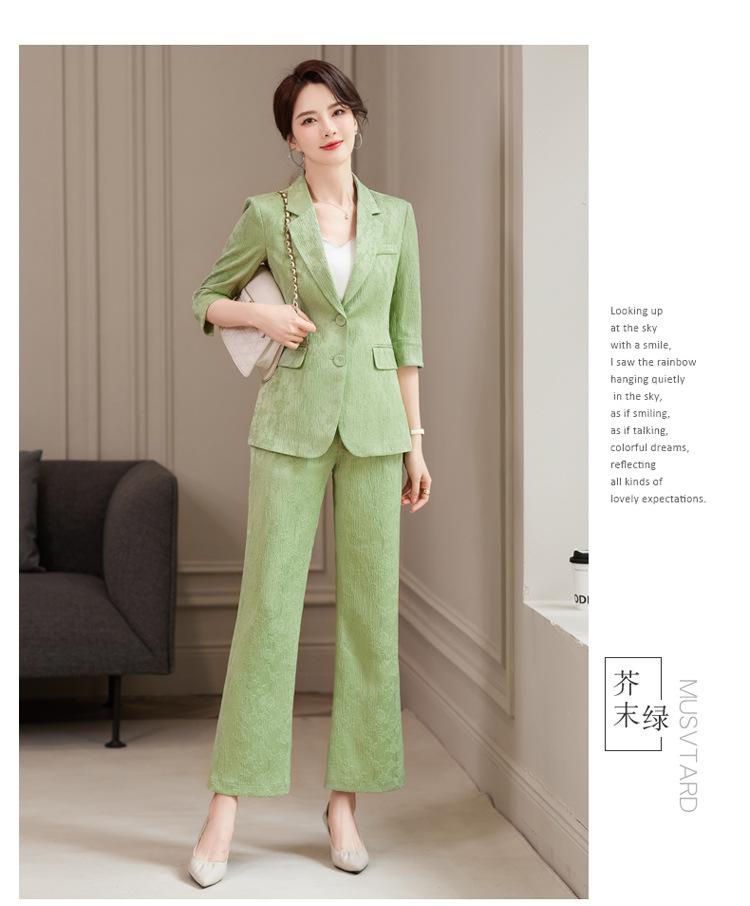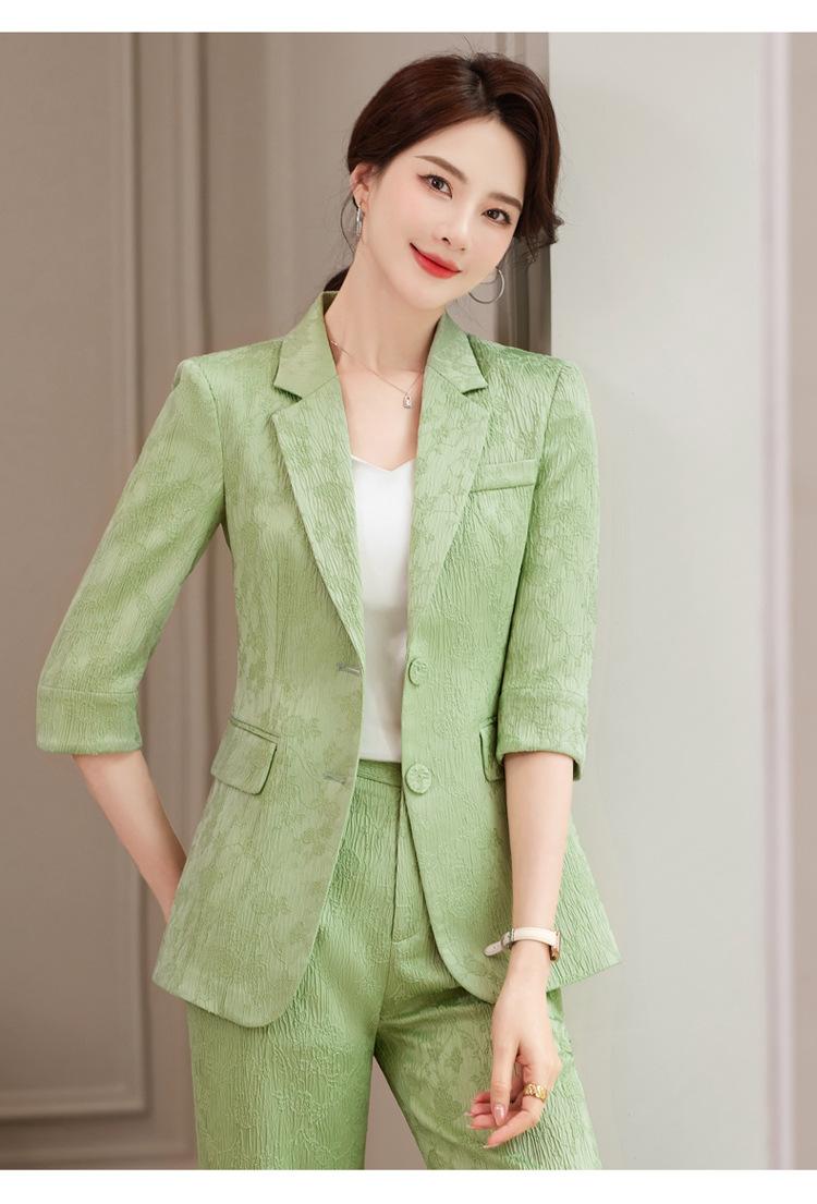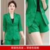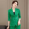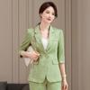 Traje de negocios verde de manga media para mujer, primavera y otoño 2023, elegante, ajustado, estampado, pequeño