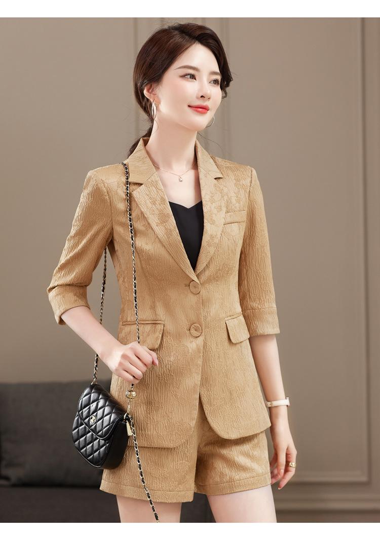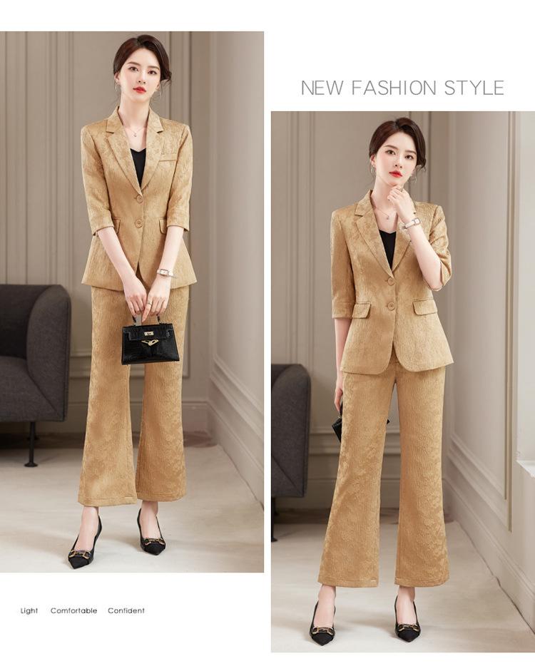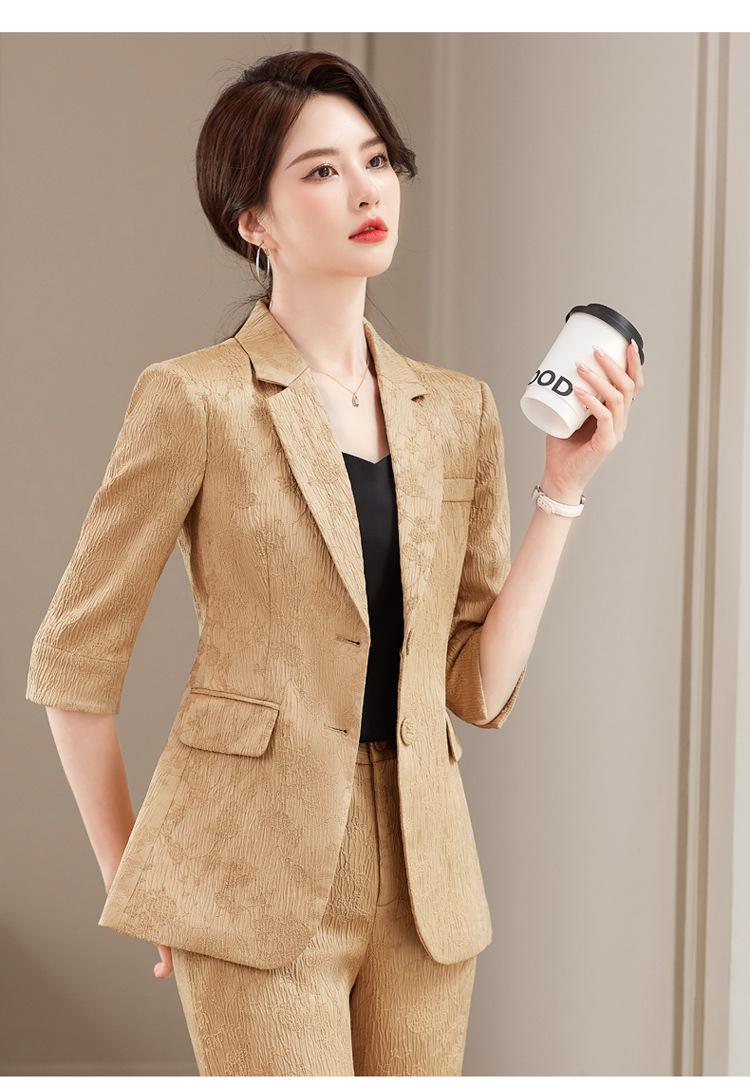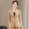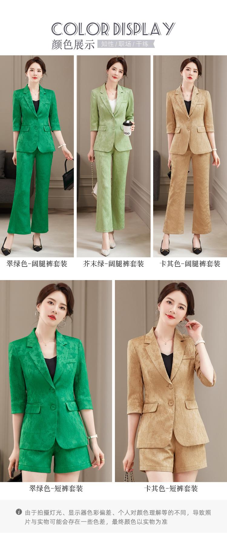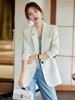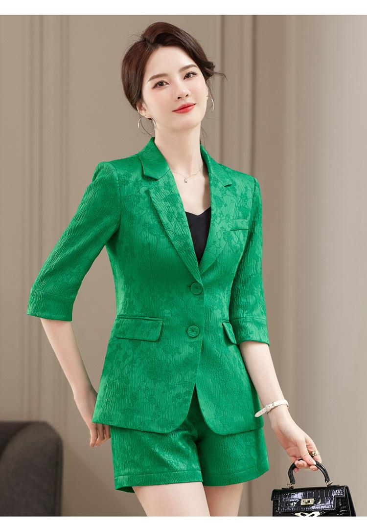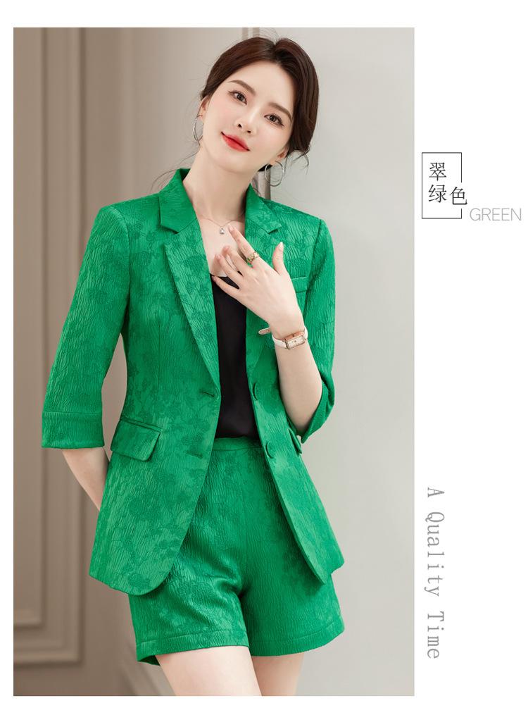 Traje de negocios verde de manga media para mujer, primavera y otoño 2023, elegante, ajustado, estampado, pequeño