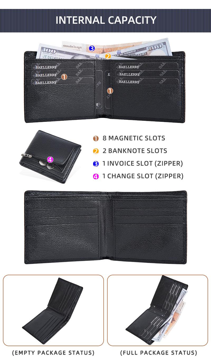 Cartera corta transfronteriza para hombre Baellerry, nueva cartera RFID de negocios con cremallera triple, monedero simple