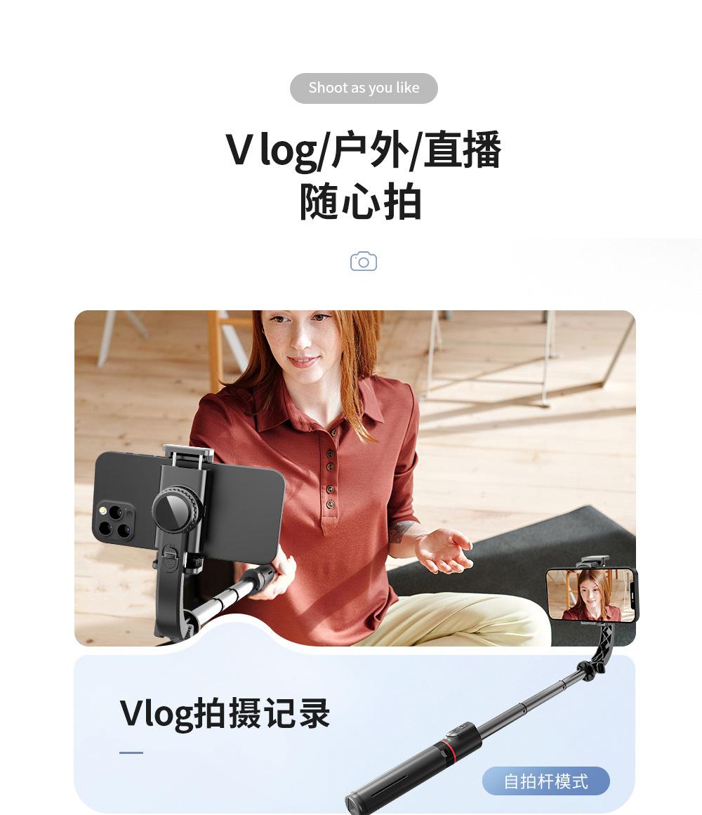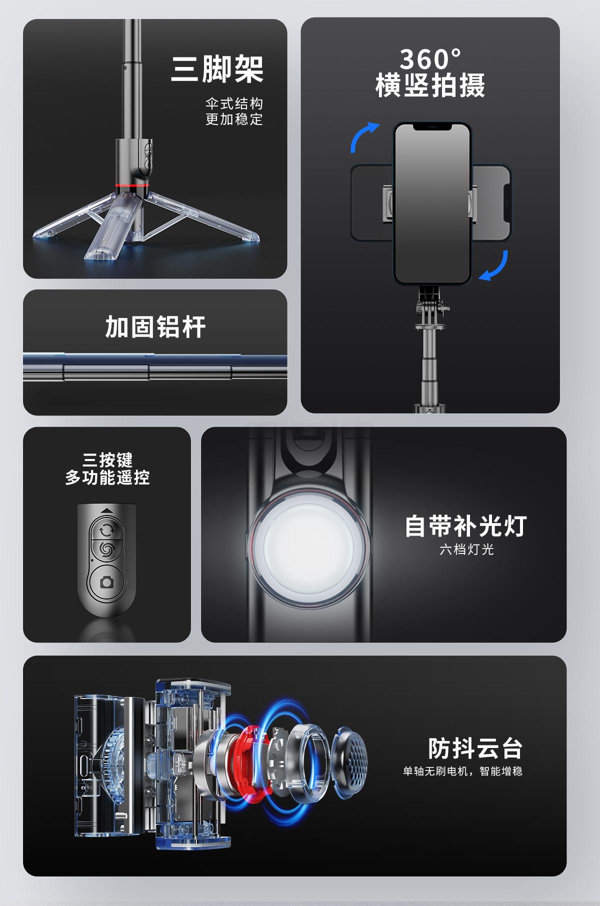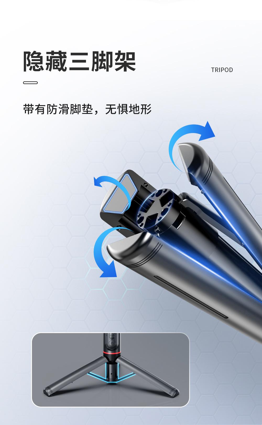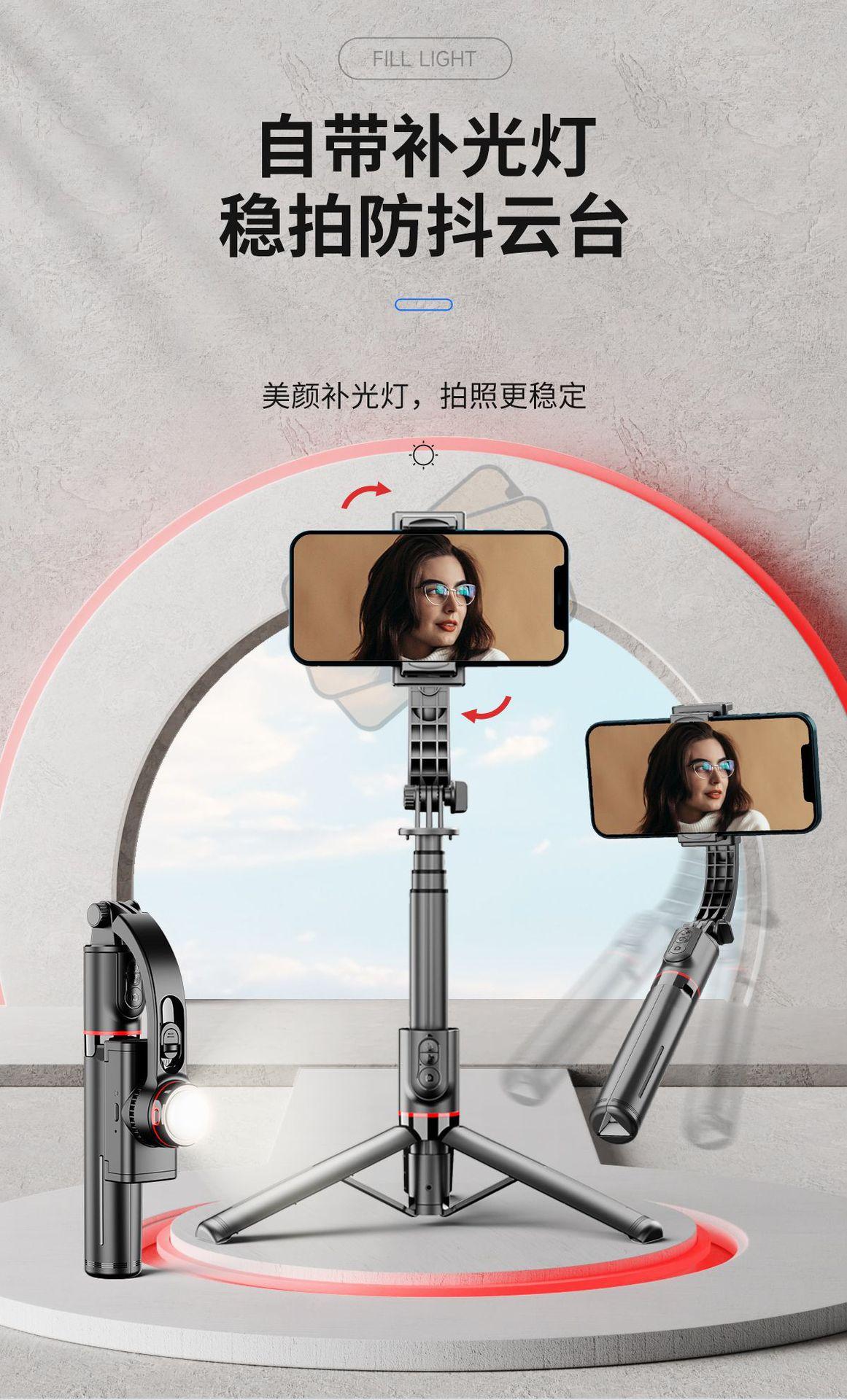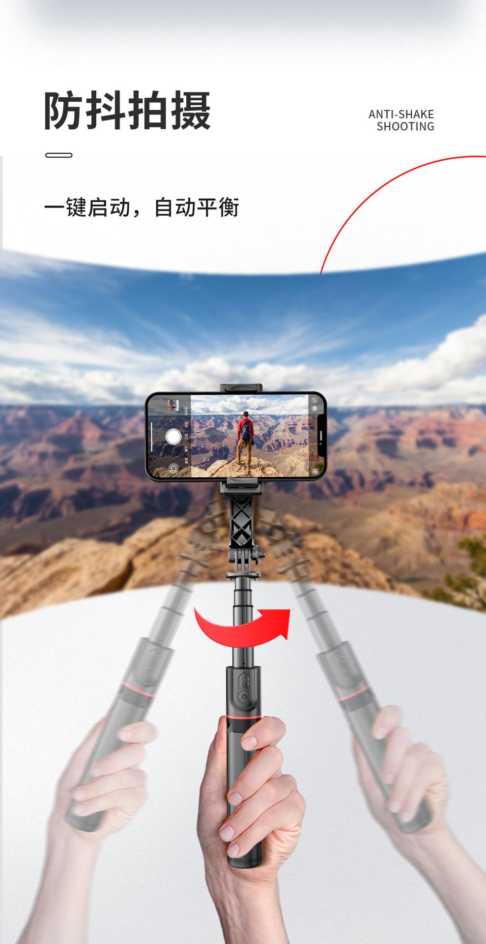 Tamaño del producto: 75 x 40 x 210 mm - 700 mm Tamaño del paquete: 56.5 x 92.5 x 227.5 mm Peso del equipo: Peso neto 240g Peso bruto 412g Dimensiones de la caja exterior: 495 x 305 x 300 mm Peso de la caja exterior: 13.8KG Cantidad por caja: 30 piezas Material:ABS+Aleación de Aluminio Batería para selfie: CR1632 Ángulo de rotación: 90 grados/vez (automático/manual) Tiempo de trabajo: aproximadamente 2 horas. Voltaje de trabajo: 3,7 V Corriente de trabajo: alrededor de 400mA (al ajustar el balance) Puerto de carga: Micro-USB