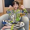 Pijamas de algodón para niños, novedad de 2024, de manga larga, estilo coreano, con dibujos de dinosaurios, cárdigan para niños medianos y grandes, ropa de casa con solapa para niños