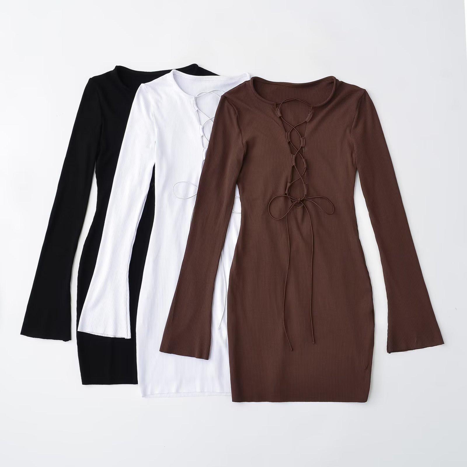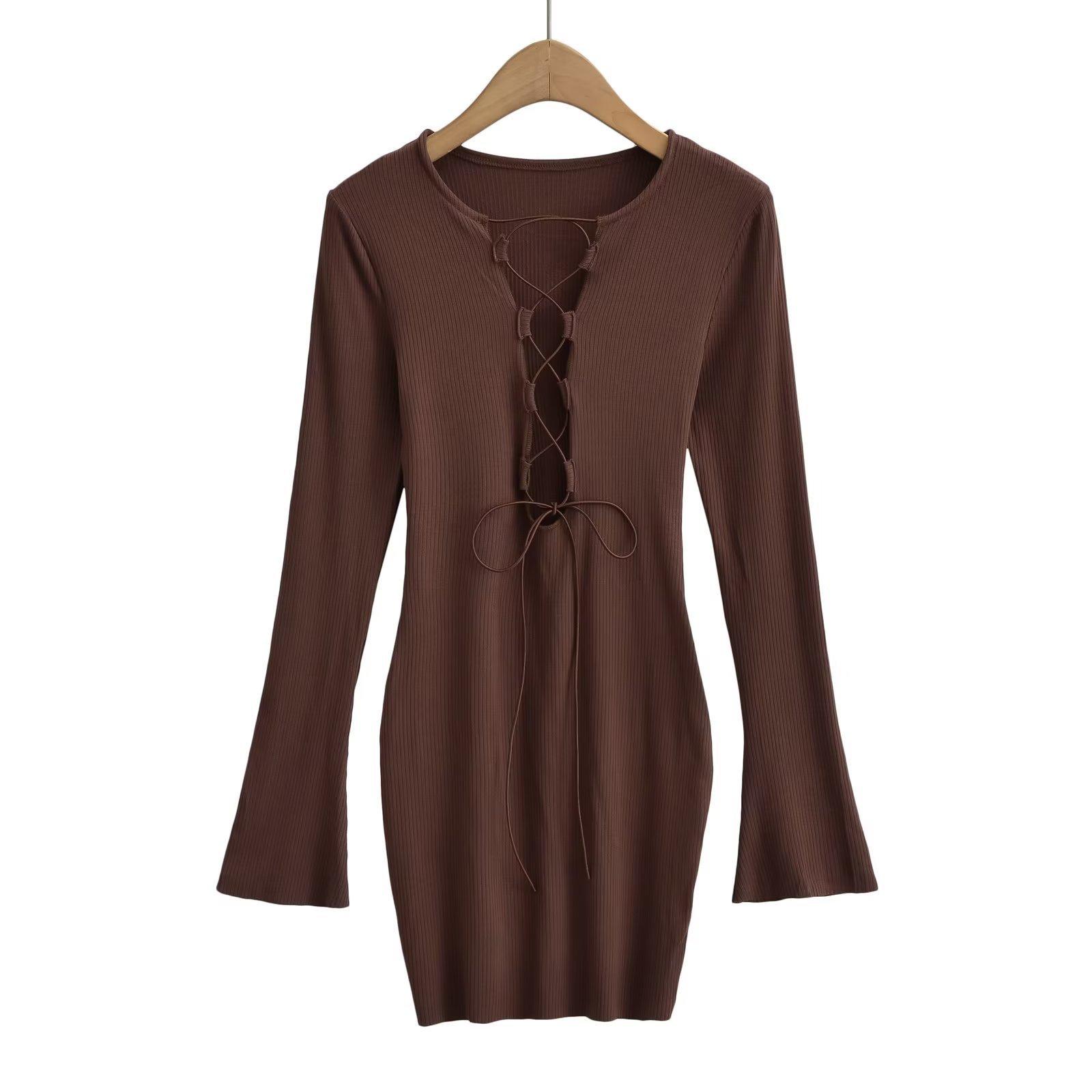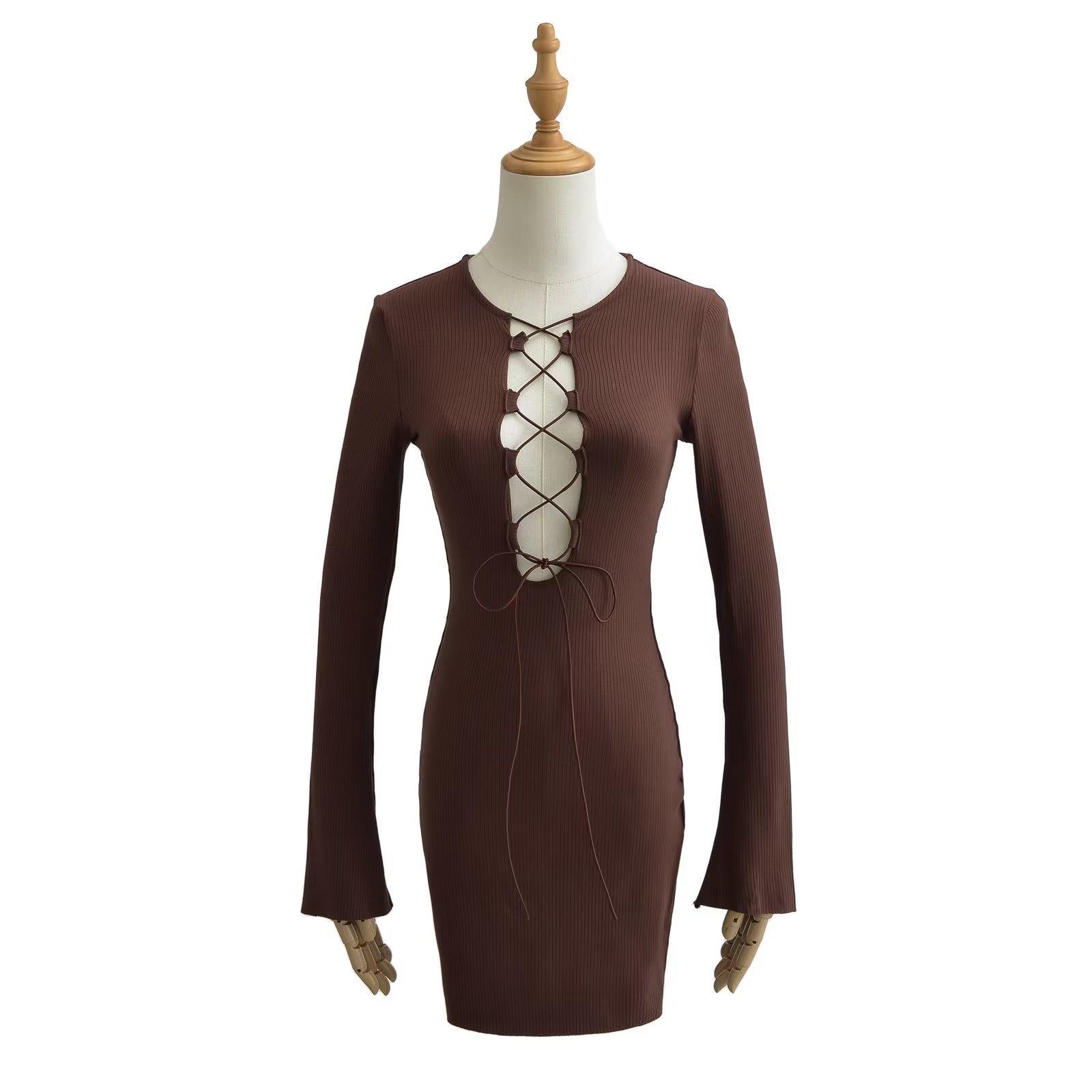 Falda de manga acampanada con tirantes huecos en el pecho para mujer europea y americana, otoño e invierno de 2023