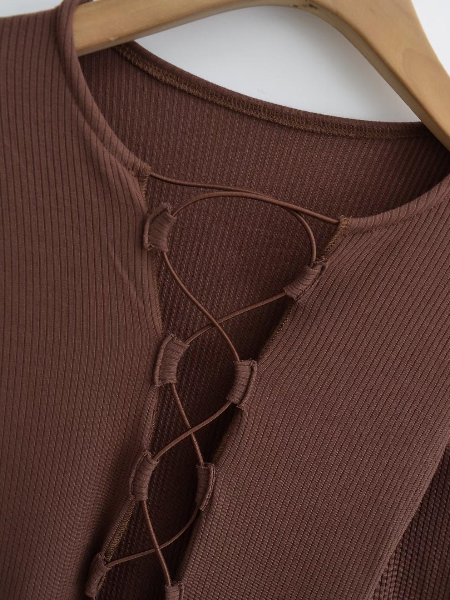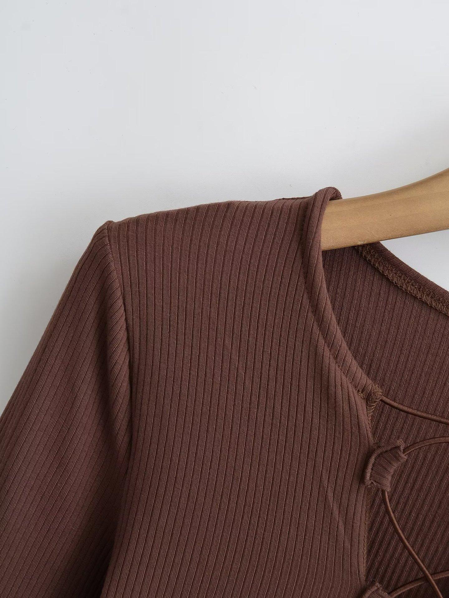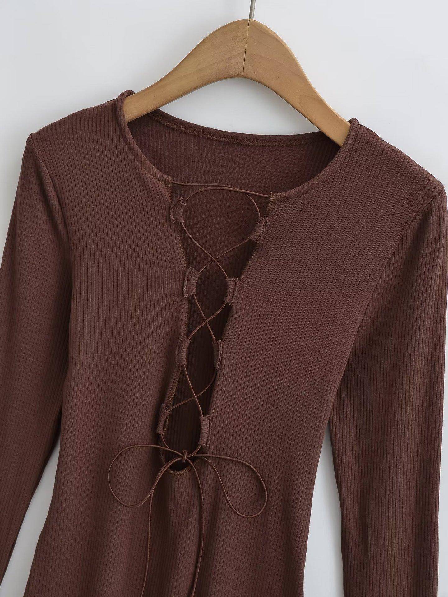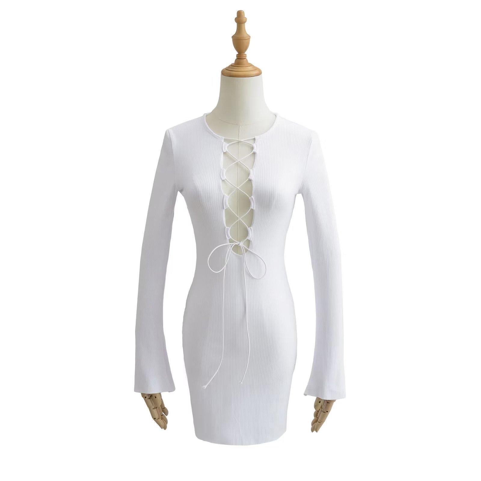 Falda de manga acampanada con tirantes huecos en el pecho para mujer europea y americana, otoño e invierno de 2023