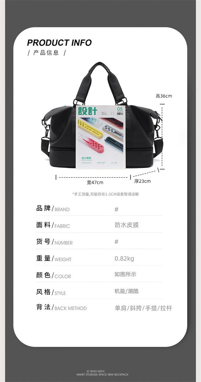 Bolsa de viaje para hombre, bolso de mano de gran capacidad, bolso de negocios de marca moderna, bolso de fitness, bolso de viaje ligero y versátil para estudiantes.
