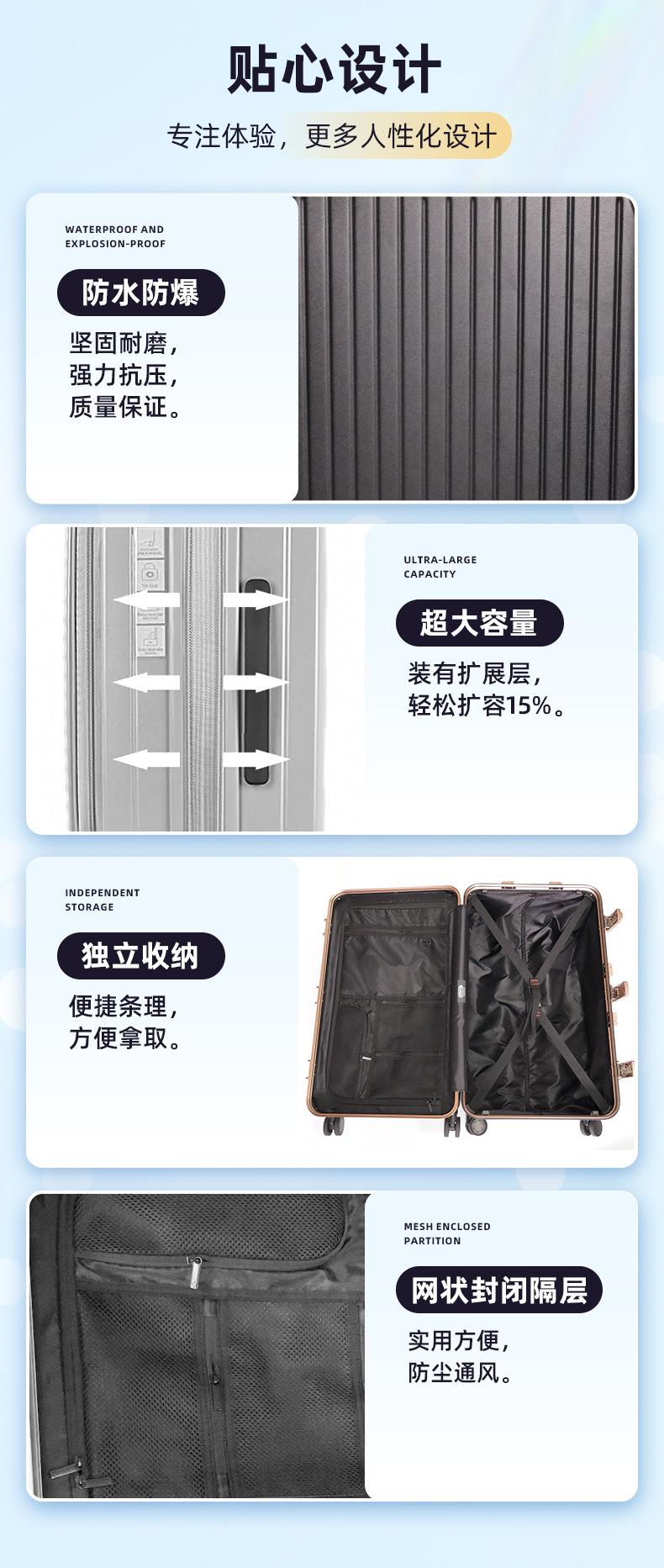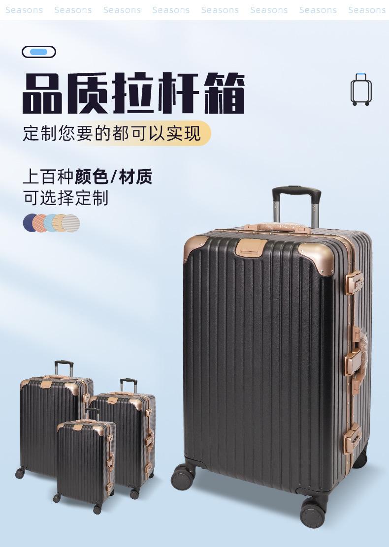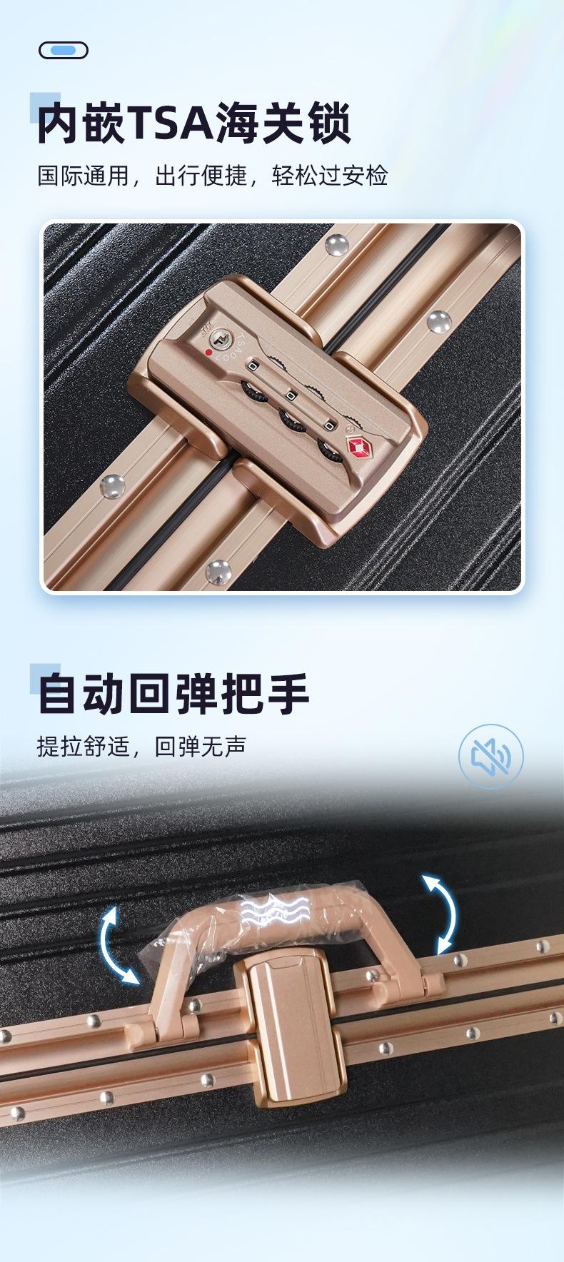 Maleta Trolley de Marco de Aluminio para PC Almacenamiento Fuerte Viaje de Larga Distancia Caja con Contraseña Ligera Casual Generosa Negro Dorado Equipaje