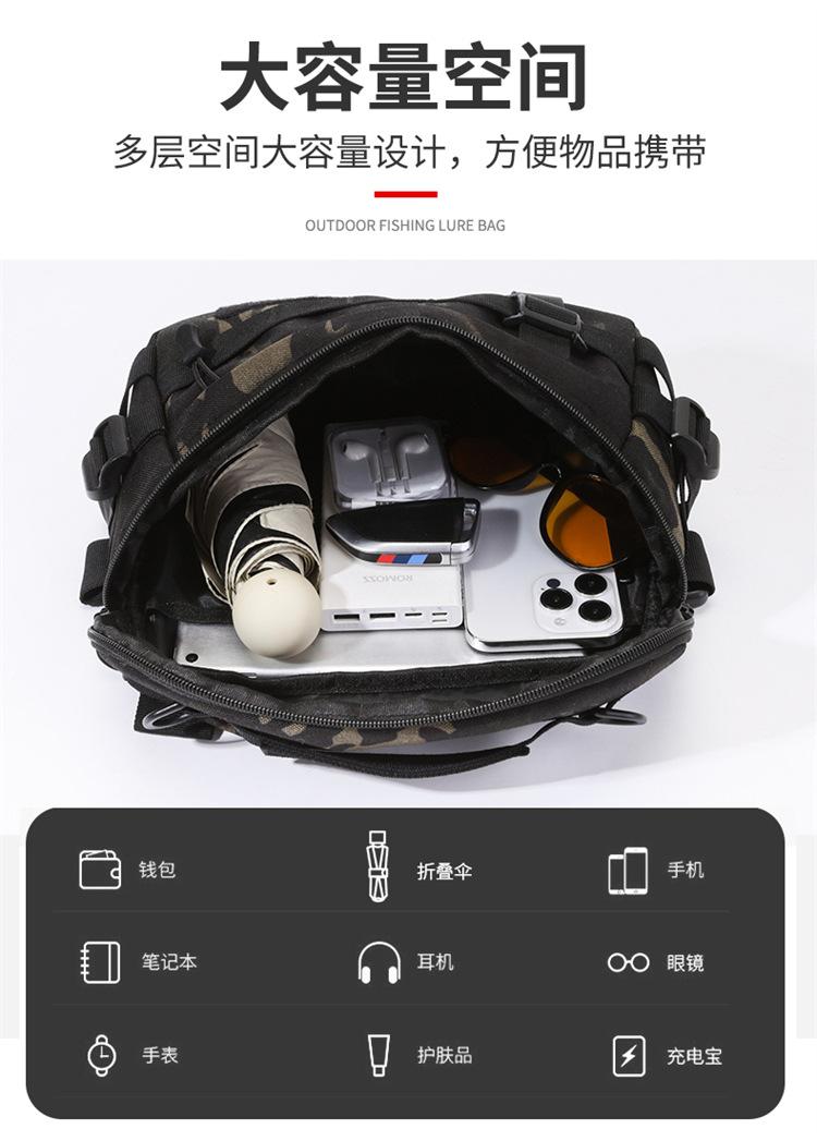 Nueva Bolsa Deportiva para Exteriores Multifuncional Táctica de Pecho Bandolera Gran Capacidad Bolsa de Pesca Bolso Cruzado para Hombre Venta al por Mayor