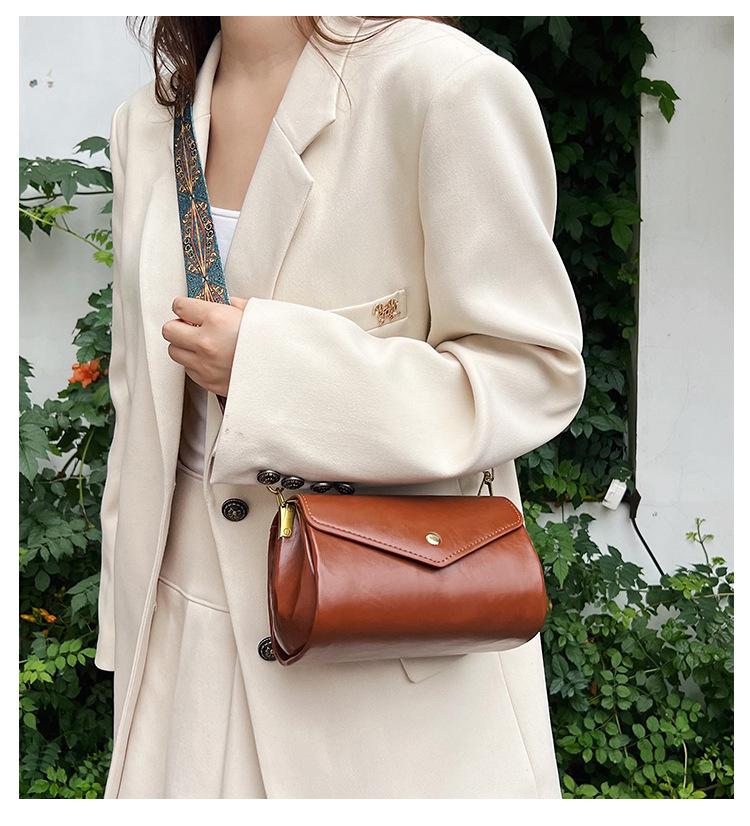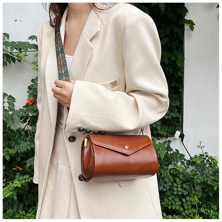 Bolso bandolera vintage para mujer, moderno, cilíndrico multicapa, de piel sintética suave, de gran capacidad, ligero y informal.