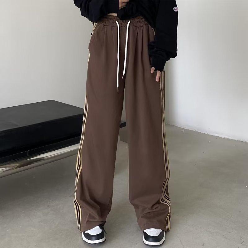 Pantalones nuevos de verano para mujer, sueltos, a rayas, de colores a juego, casuales, versátiles, rectos, de moda, pantalones deportivos para hombres y mujeres