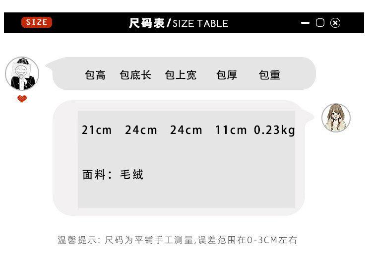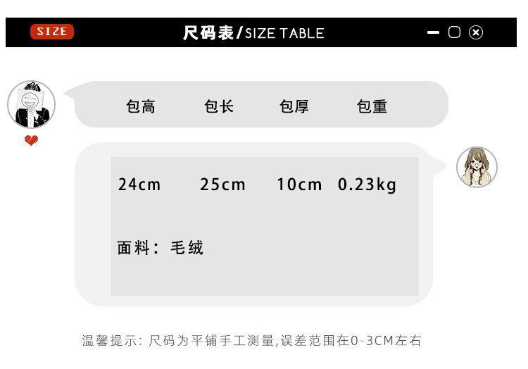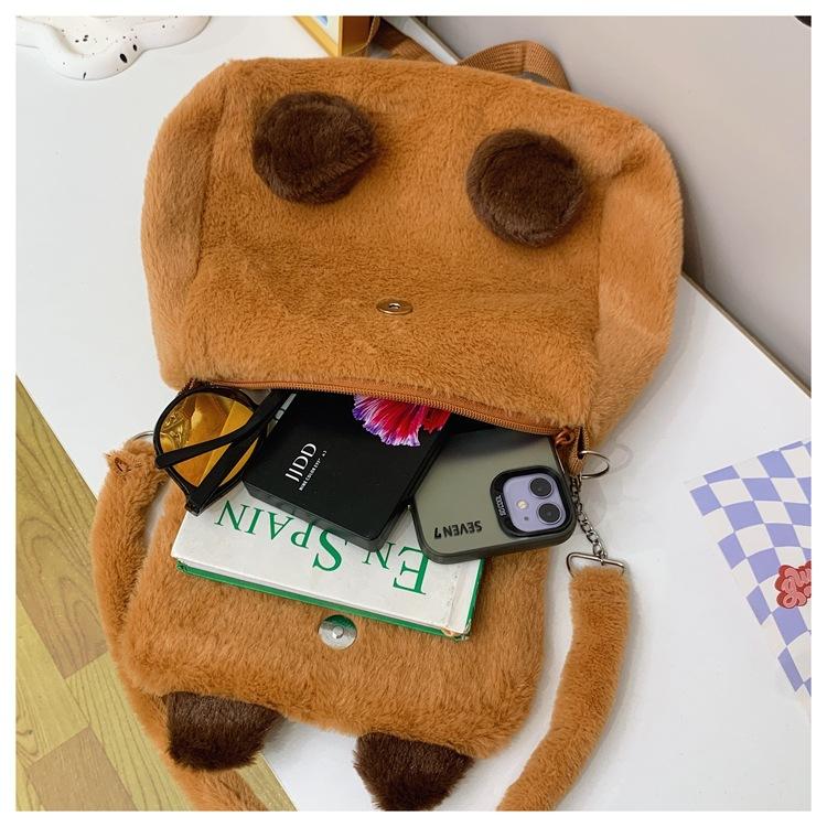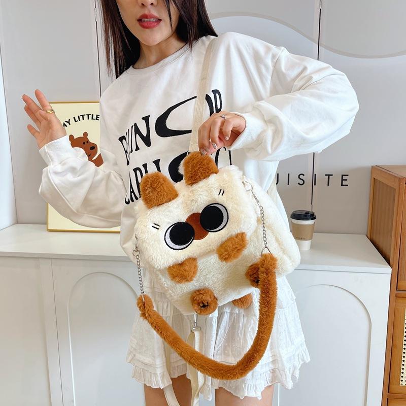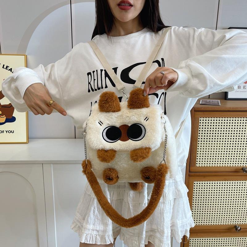 2025 Nuevo Bolso de Felpa de Alta Gama para Mujer Dibujo Animado Lindo Hombro Cruzado Mochila Pequeña Mochila de Viaje