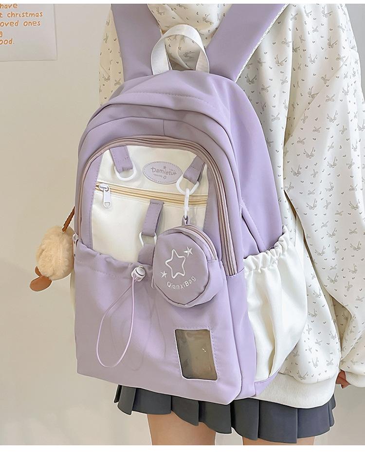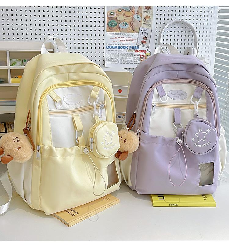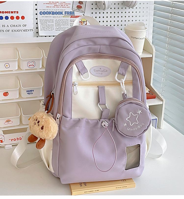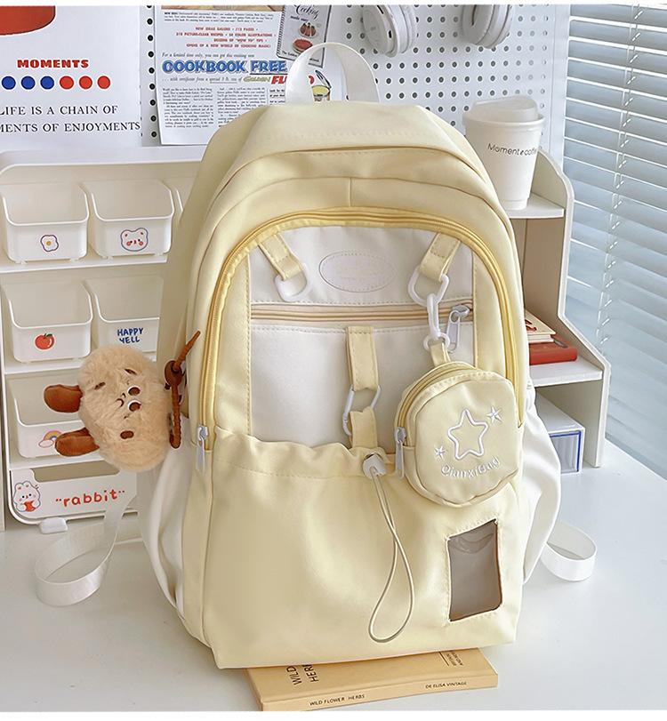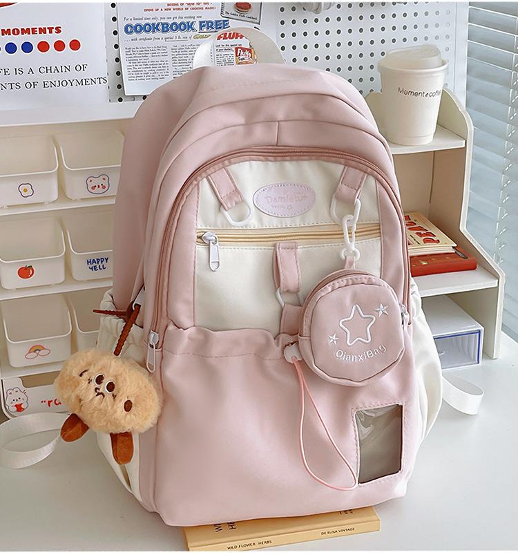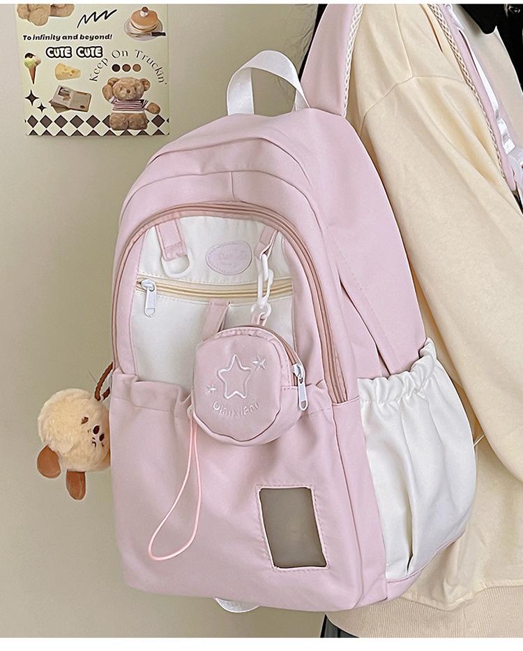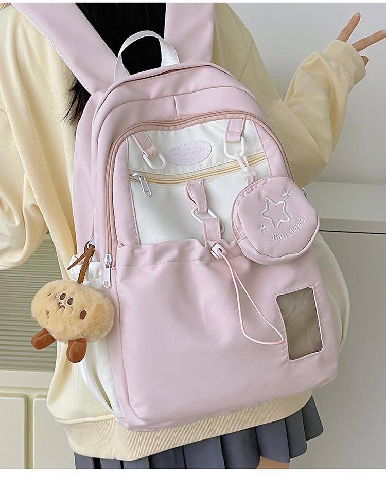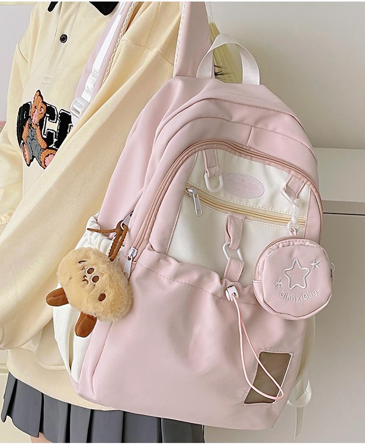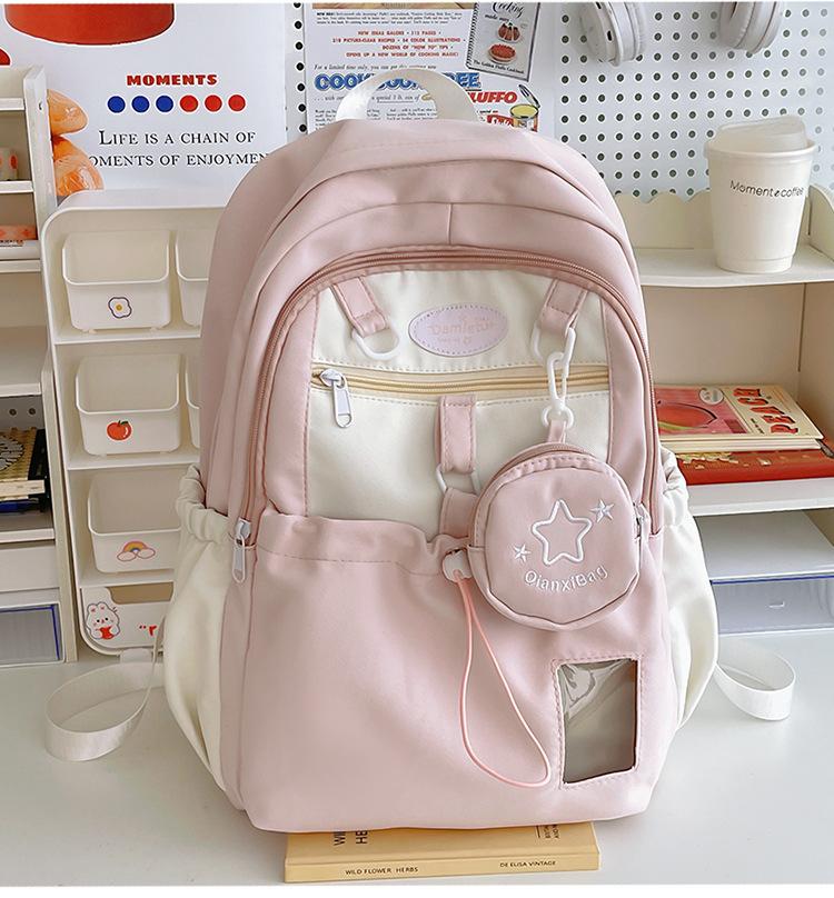Mochila escolar japonesa de estilo universitario con contraste de colores que combina con todo, bonita mochila de gran capacidad para mujer, mochila para estudiantes de secundaria y preparatoria.