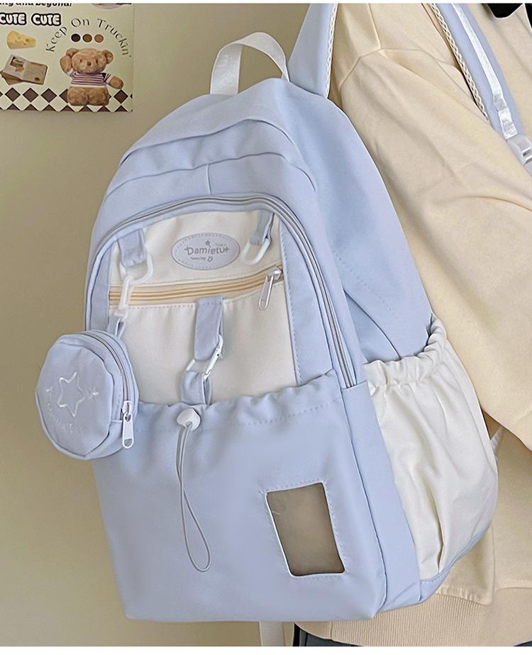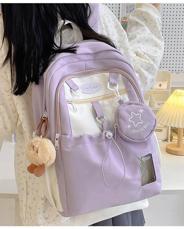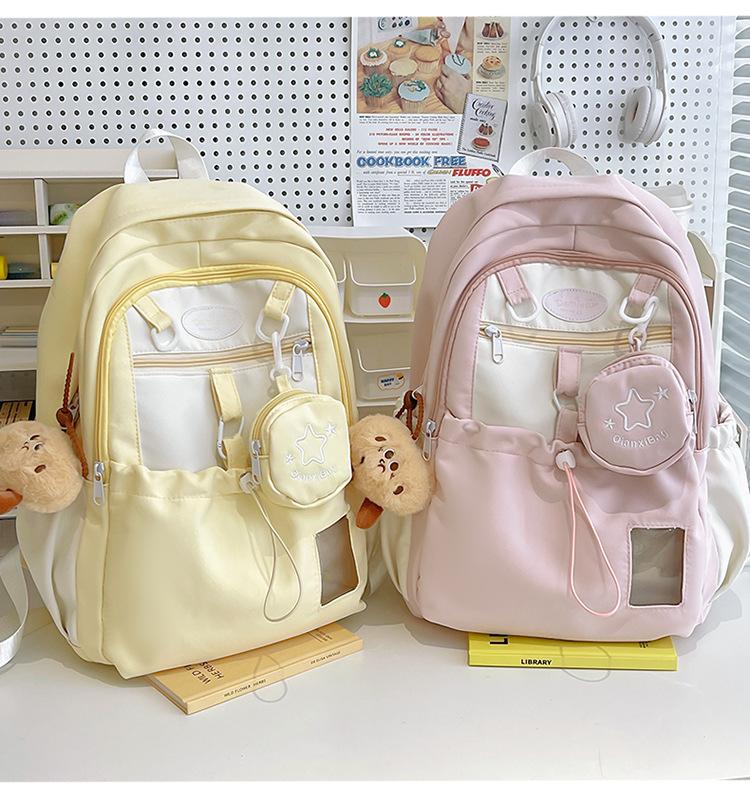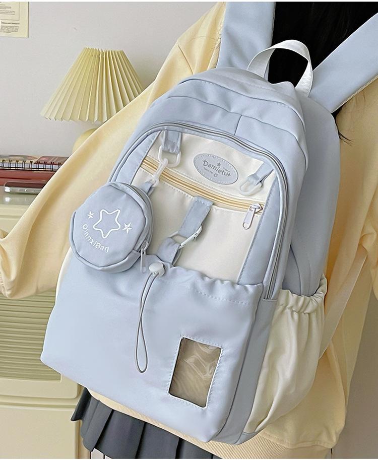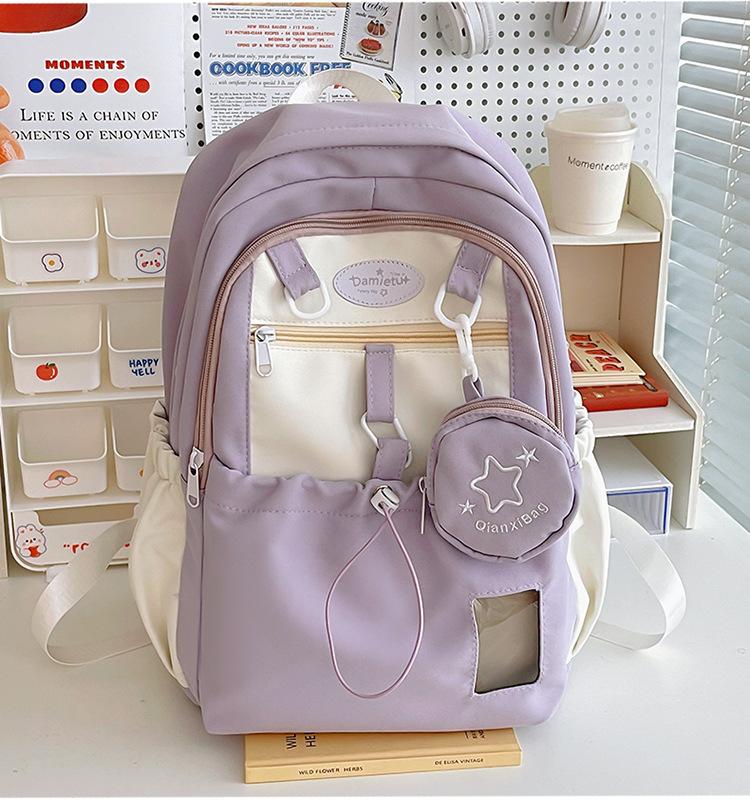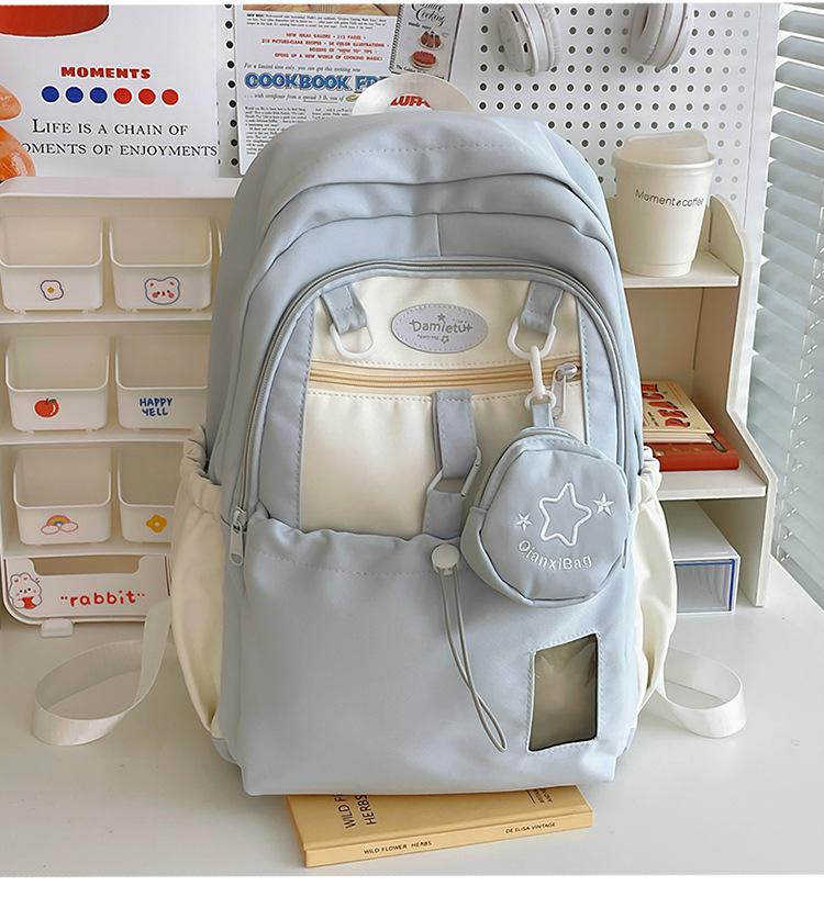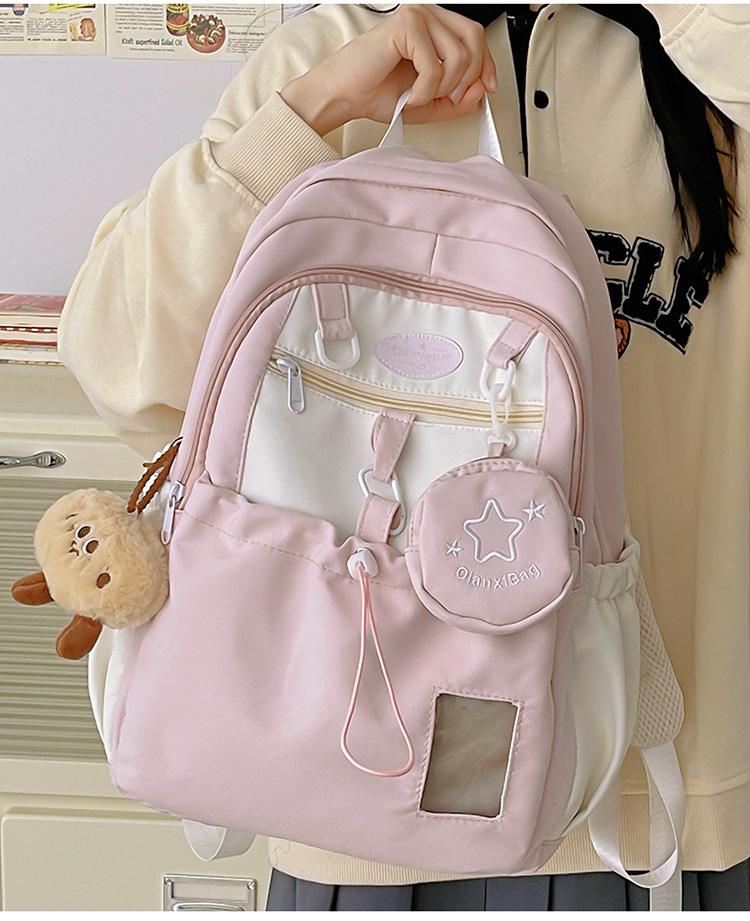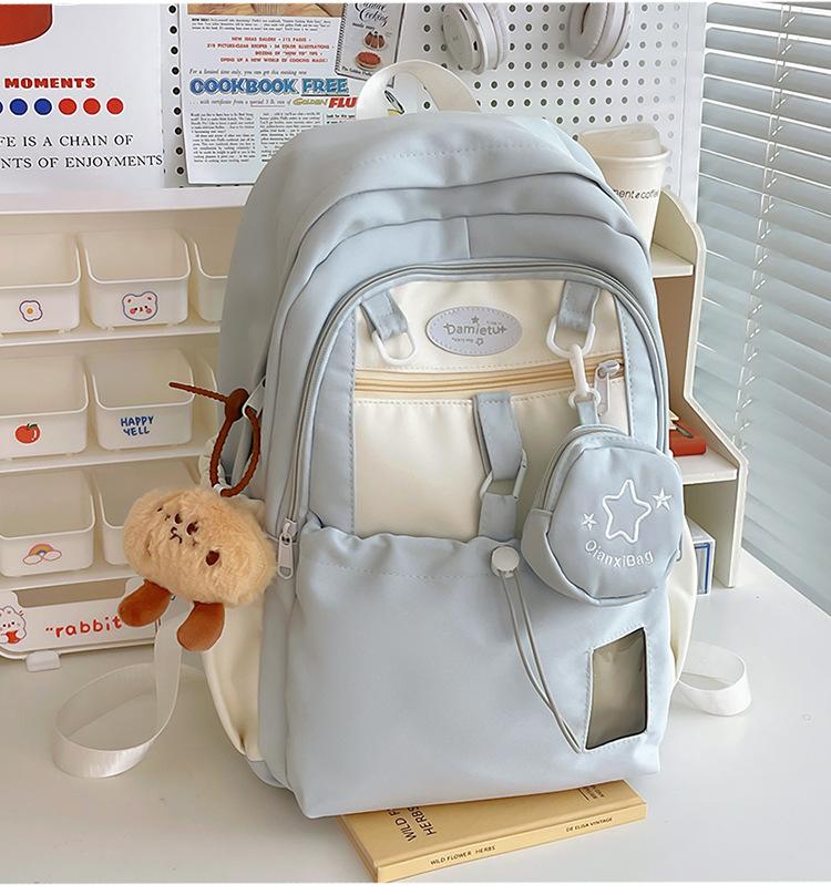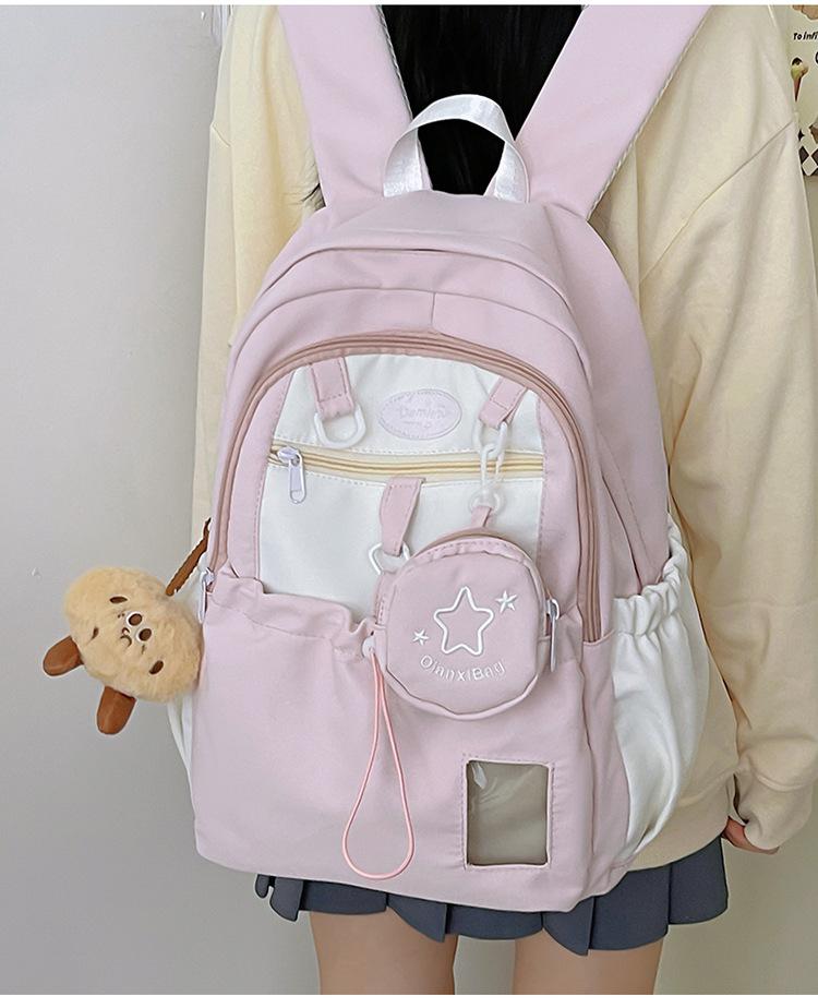 Mochila escolar japonesa de estilo universitario con contraste de colores que combina con todo, bonita mochila de gran capacidad para mujer, mochila para estudiantes de secundaria y preparatoria.
