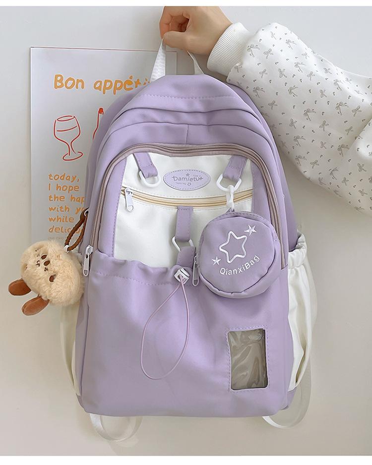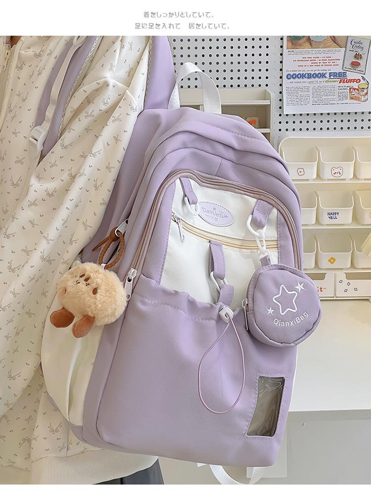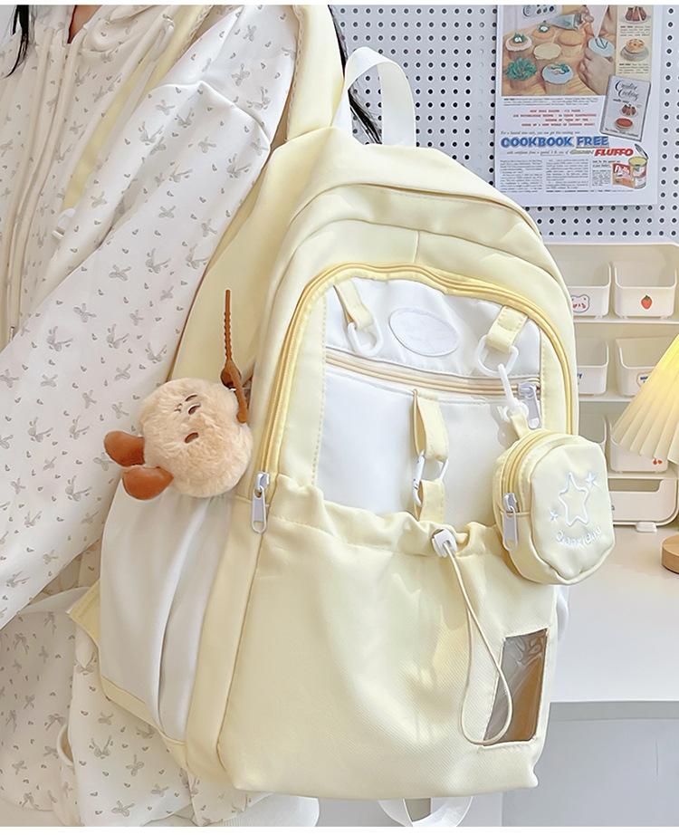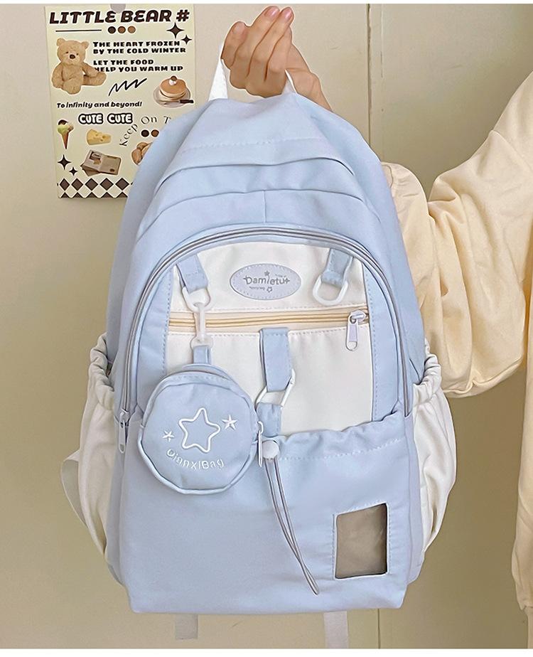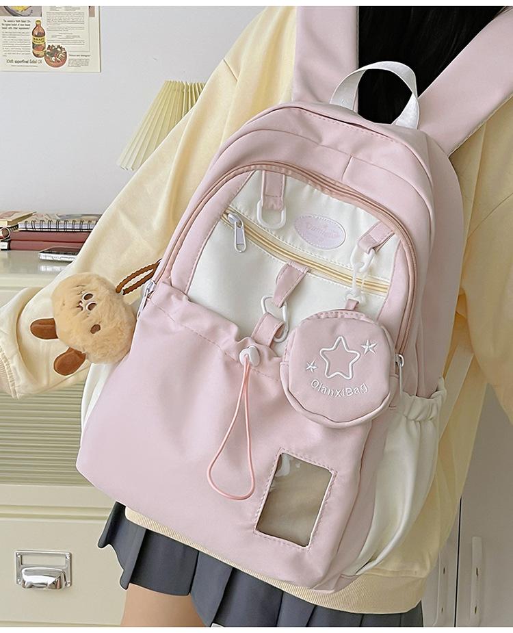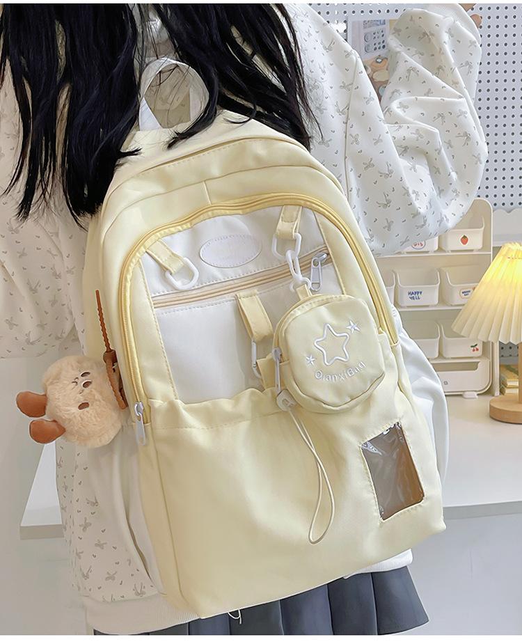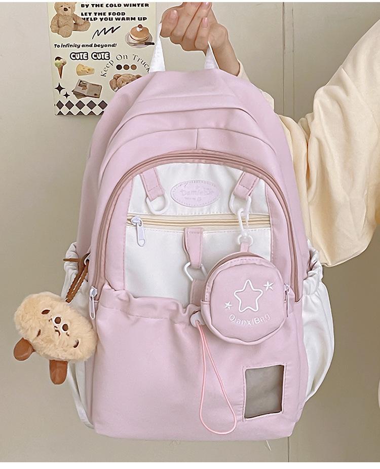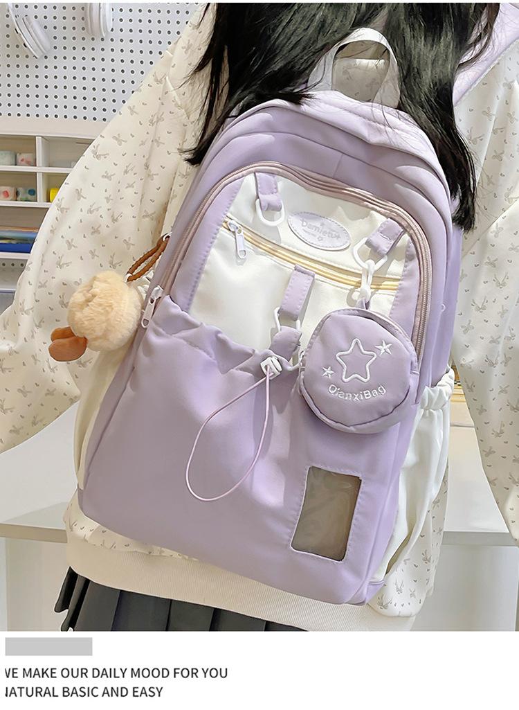 Mochila escolar japonesa de estilo universitario con contraste de colores que combina con todo, bonita mochila de gran capacidad para mujer, mochila para estudiantes de secundaria y preparatoria.